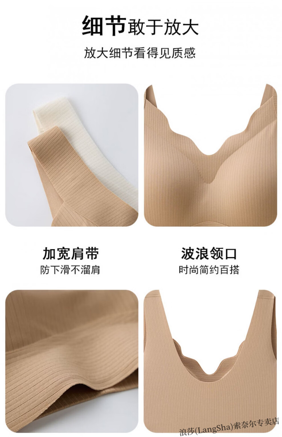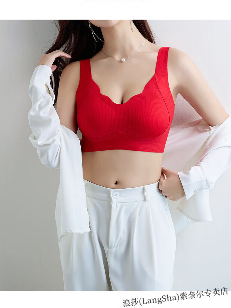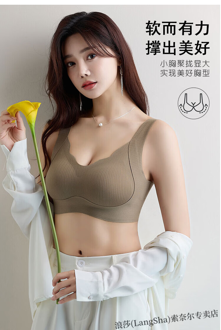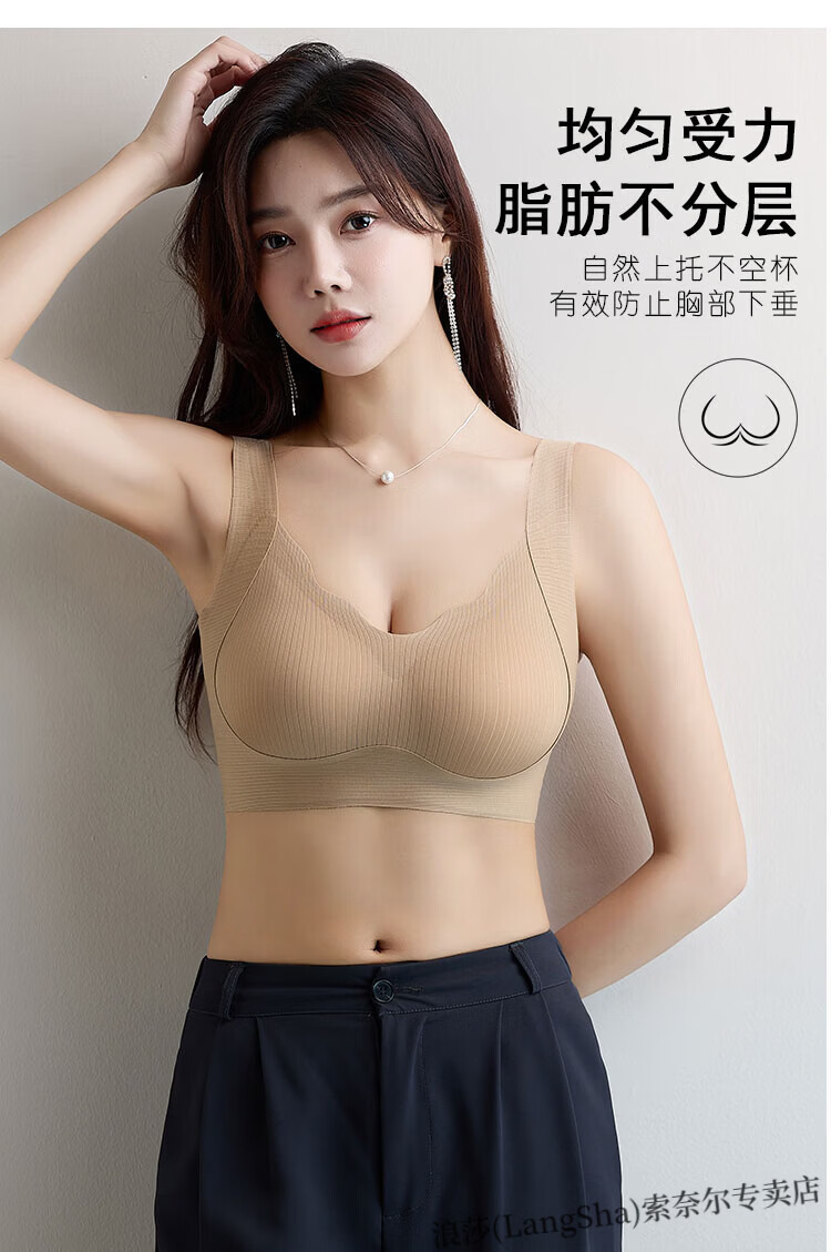 LangSha lift-up seamless soft support bra for women with small breasts push-up thin sports all-in-one beautiful back vest-style lift bra Khaki skin non-sensory lift-anti-sagging L Suitable to wear 105-120Jin Jin equals 0.5kg 36-80ABC