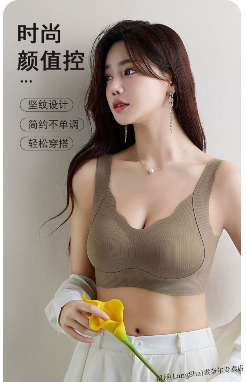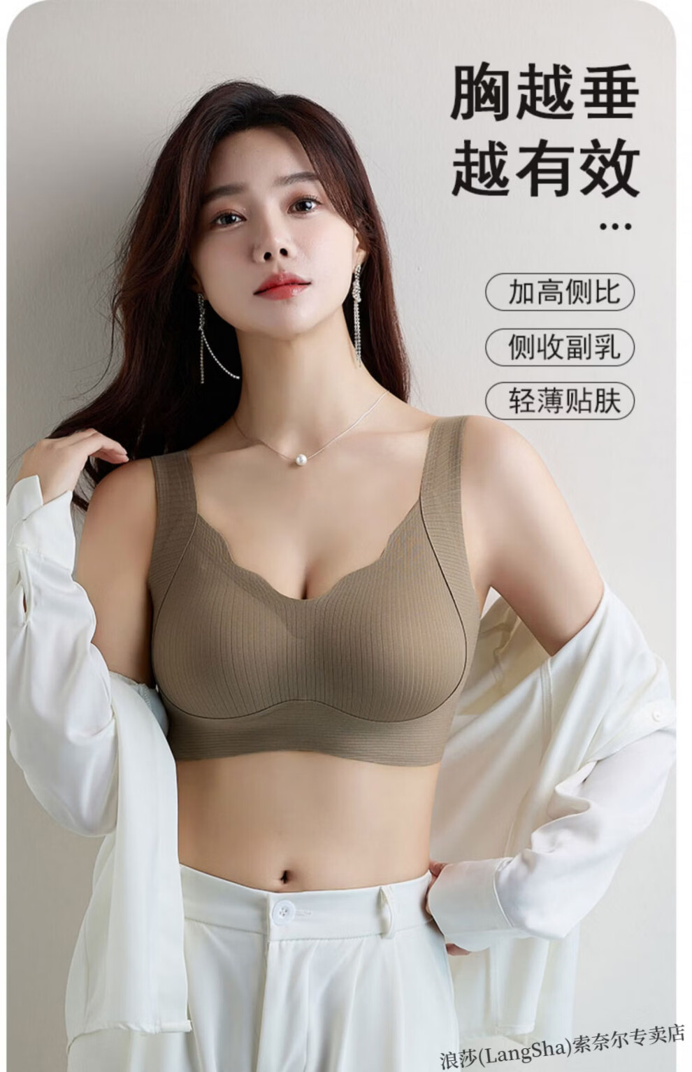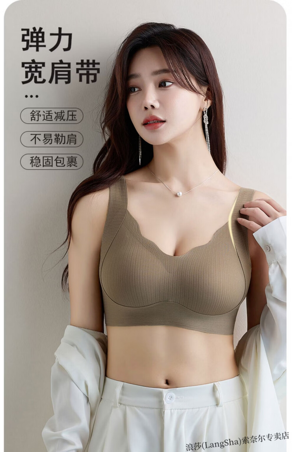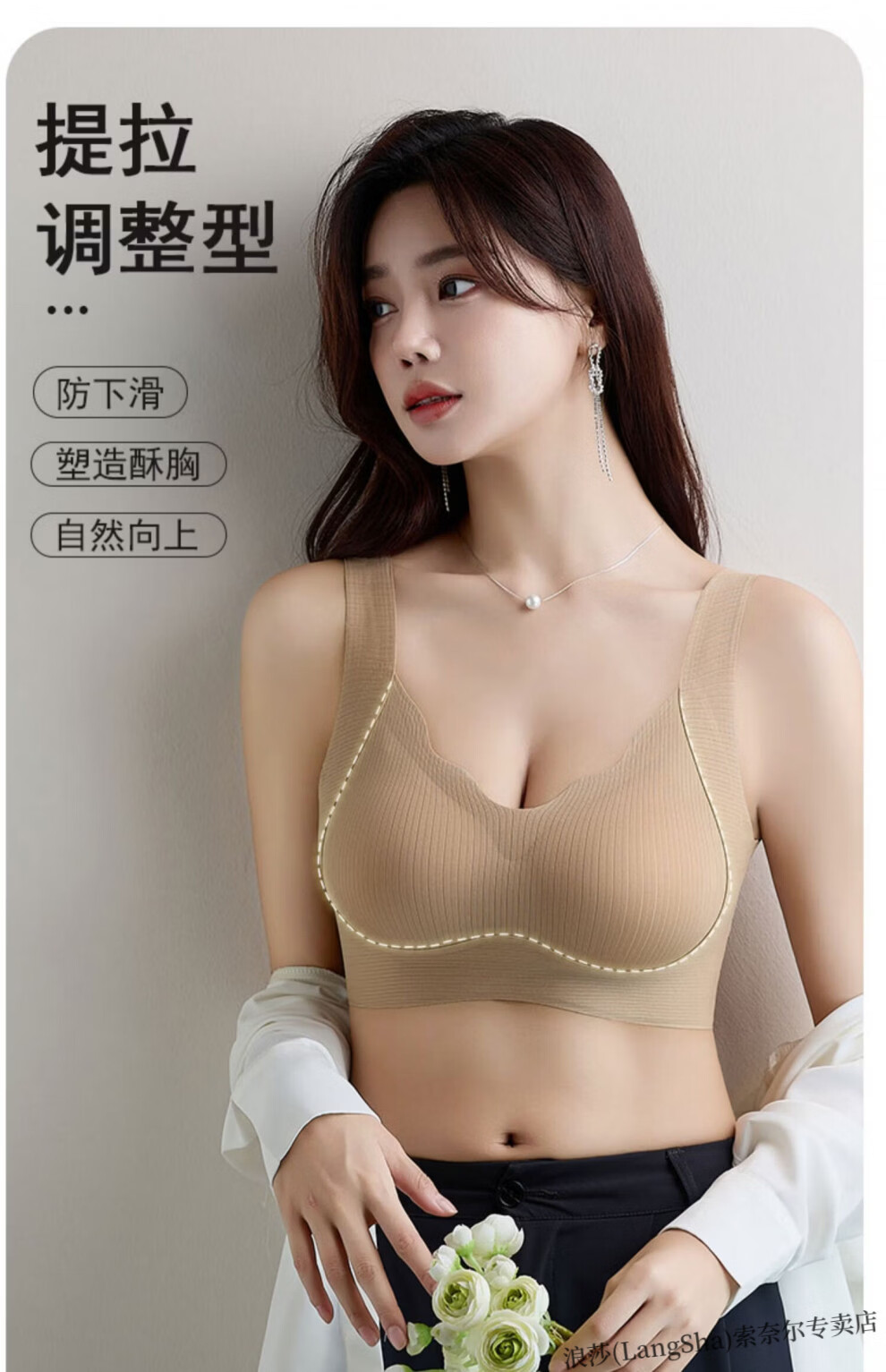 LangSha lift-up seamless soft support bra for women with small breasts push-up thin sports all-in-one beautiful back vest-style lift bra Khaki skin non-sensory lift-anti-sagging L Suitable to wear 105-120Jin Jin equals 0.5kg 36-80ABC