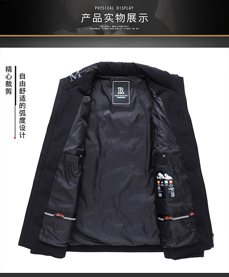 KBXNG Jinba 2025 white duck down jacket men's jacket middle-aged and elderly warm winter thickened casual stand-up collar short down 315 black M 170