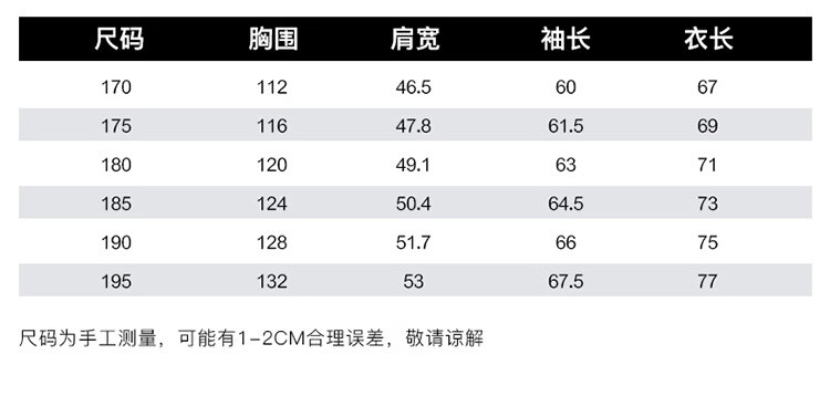 China (cm) 165 / 88-90 170 / 96-98 175 / 108-110 180 / 118-122 185 / 126-130