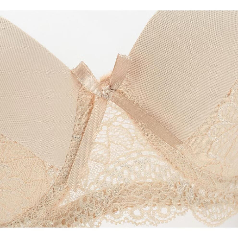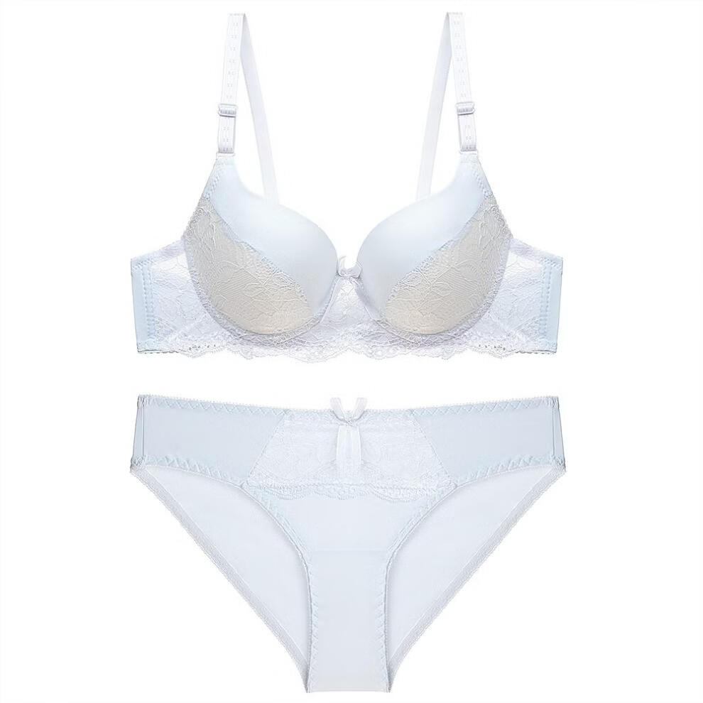 Triumph European and American brand sexy lace bra set push-up women's underwear, breast-retracting adjustment type push-up shaping bra, white 80C
