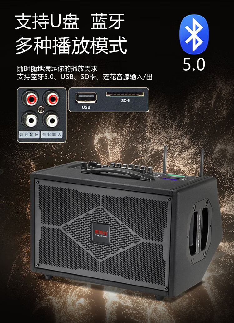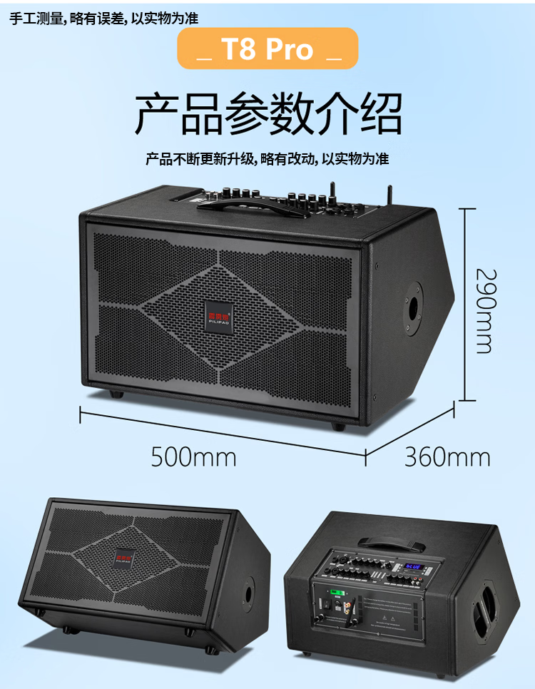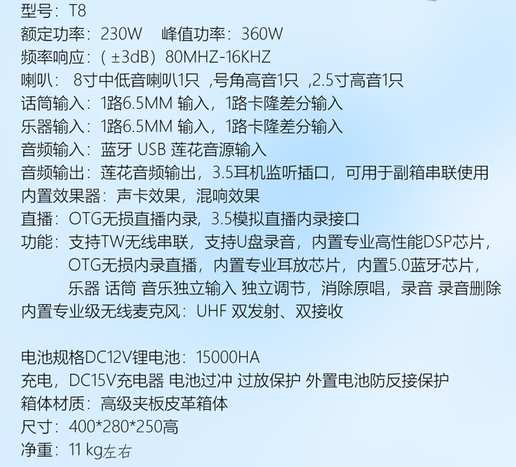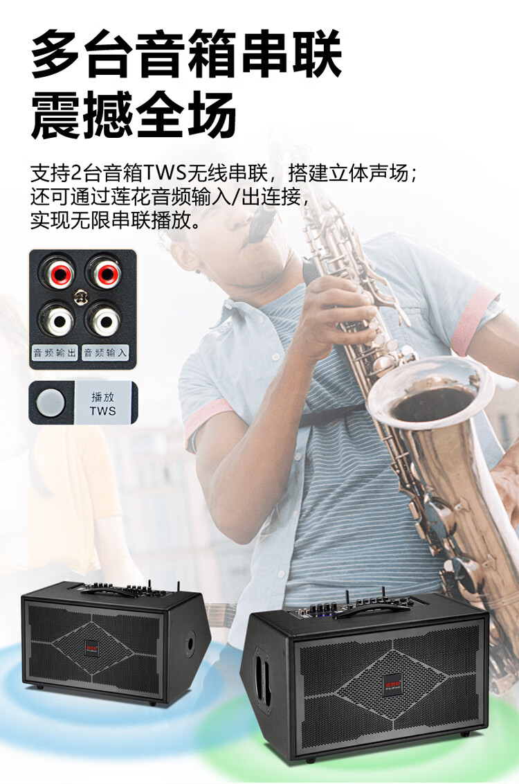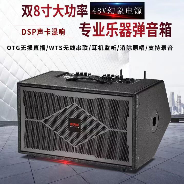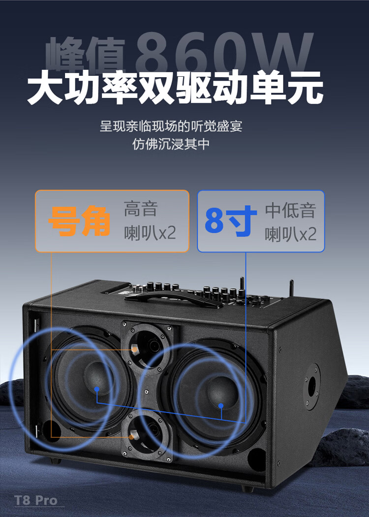 Thunderbolt's new dual T8-inch professional sound card audio roadshow high-power mobile outdoor karaoke electric blowpipe saxophone acoustic guitar playing and singing live audio dual 8-inch playing and singing box + rechargeable wireless microphone + pulley bag + stand