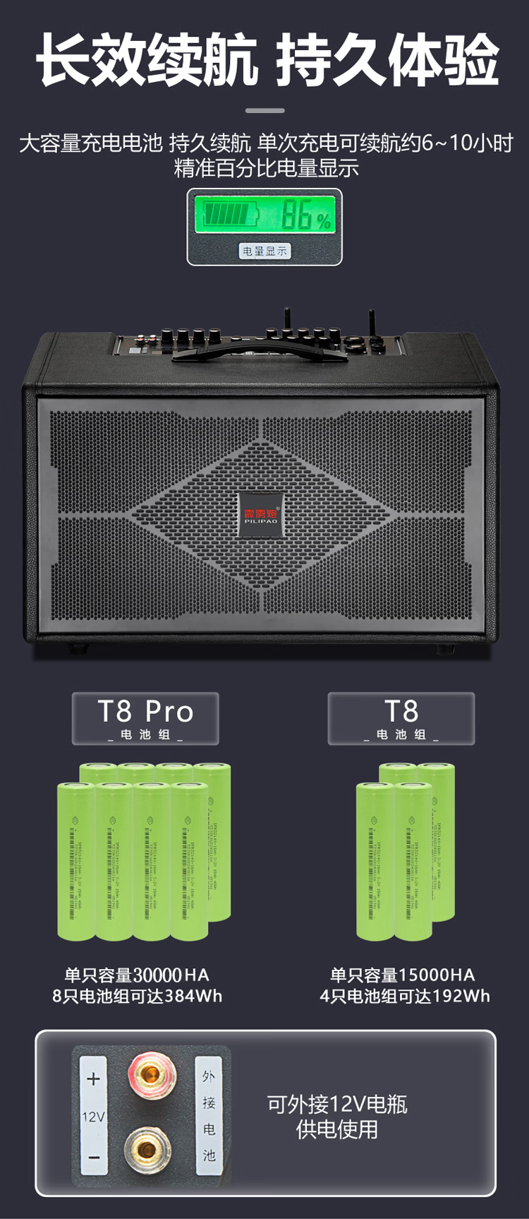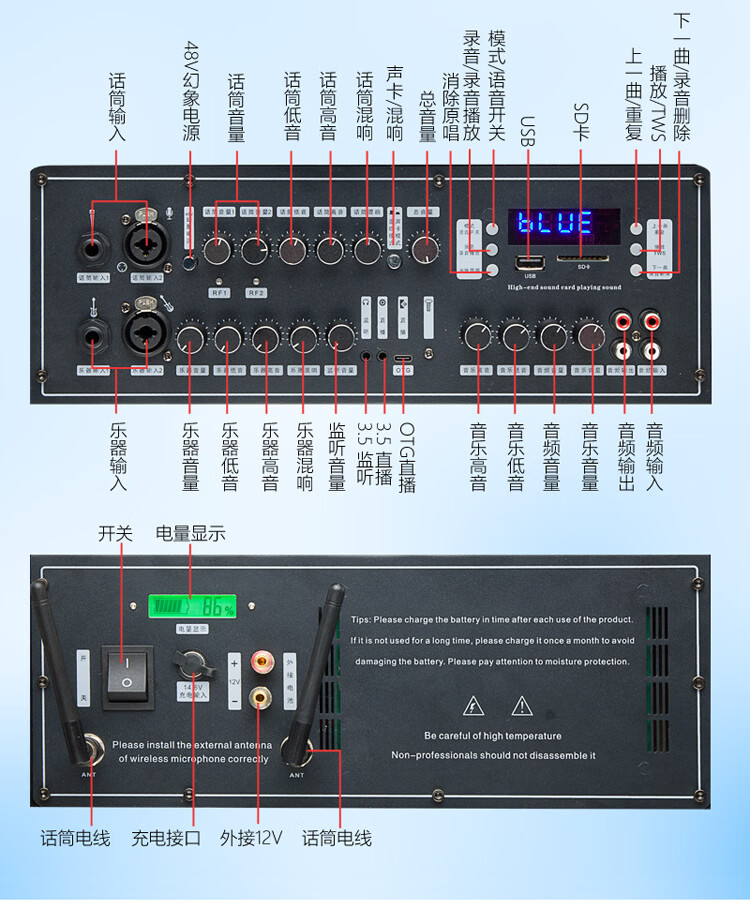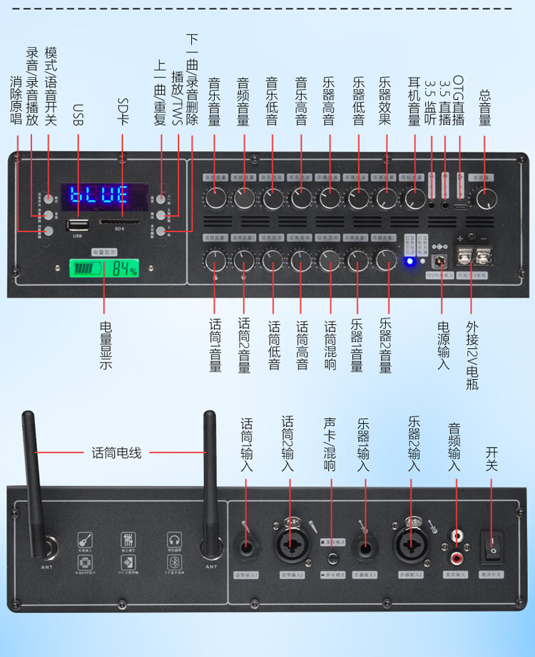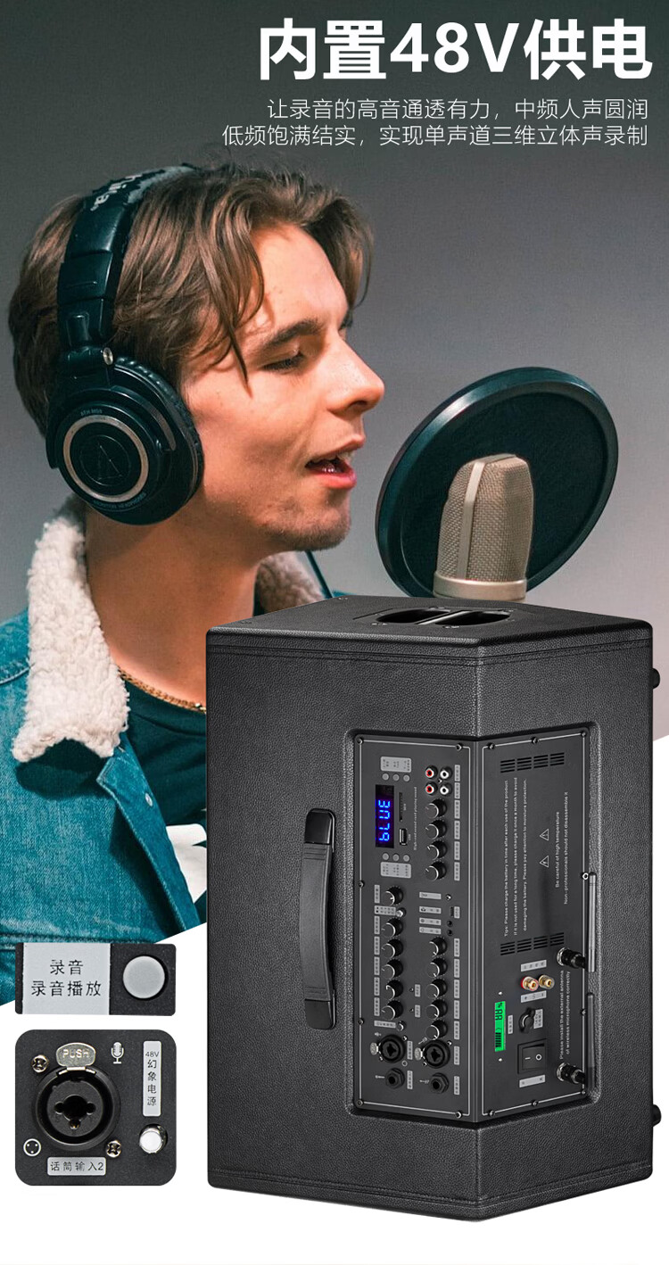 Thunderbolt's new dual T8-inch professional sound card audio roadshow high-power mobile outdoor karaoke electric blowpipe saxophone acoustic guitar playing and singing live audio dual 8-inch playing and singing box + rechargeable wireless microphone + pulley bag + stand