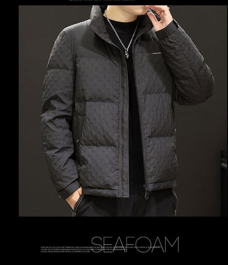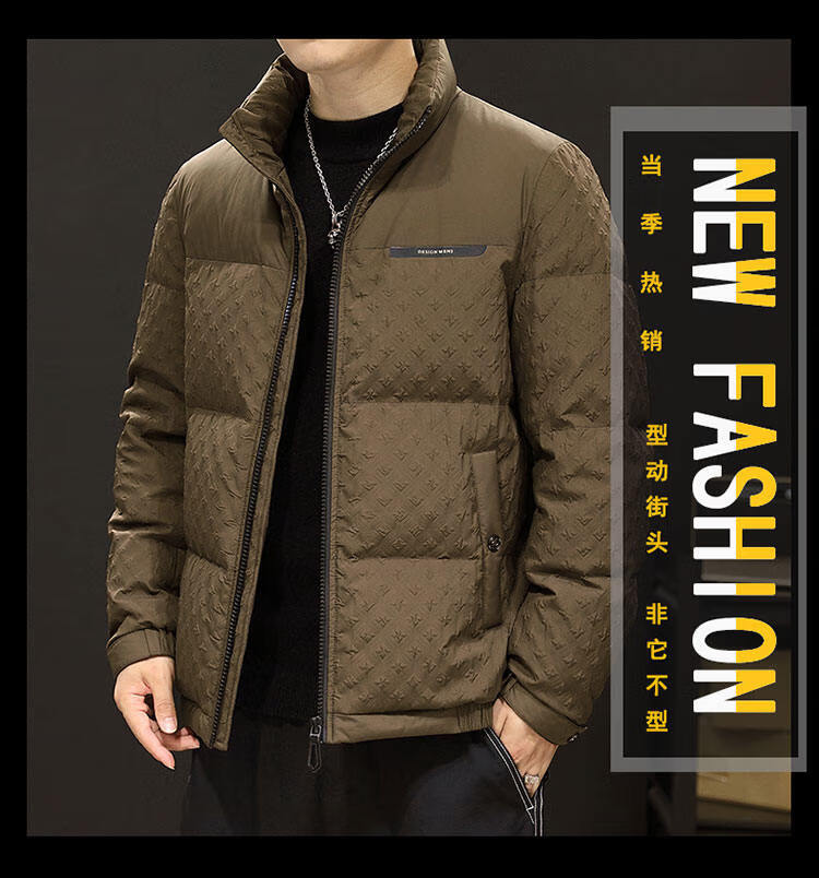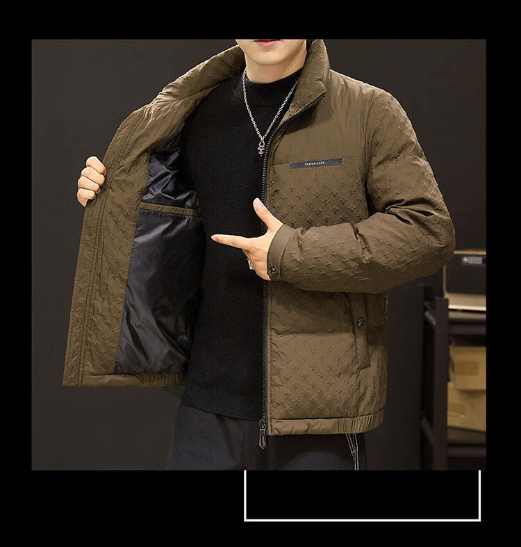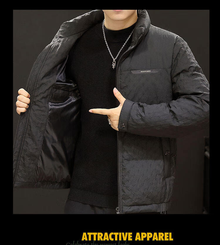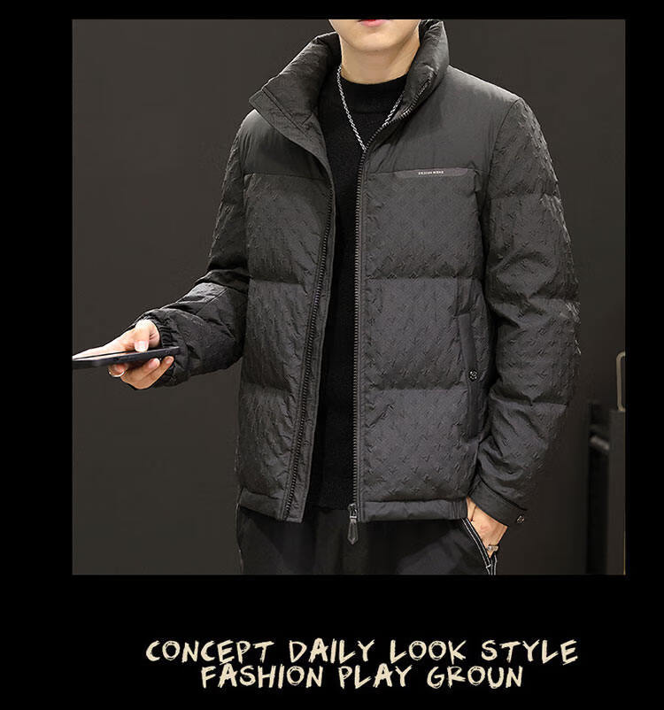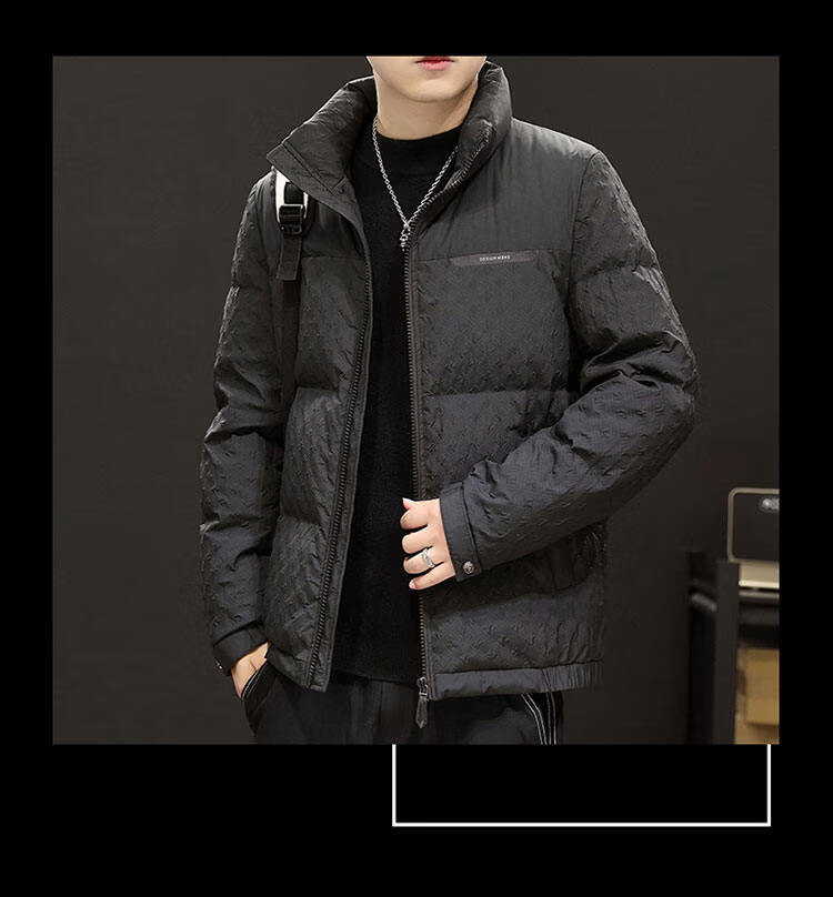 Новый зимний мужской пуховик ROMON 90 с белым утиным пухом высокого класса с воротником-стойкой, повседневная утолщенная теплая куртка для молодежи и среднего возраста, тренд черного цвета, высококачественный 90 утиный пух XL 180, подходит для веса 140-160 Джин Джин равен 0,5 кг