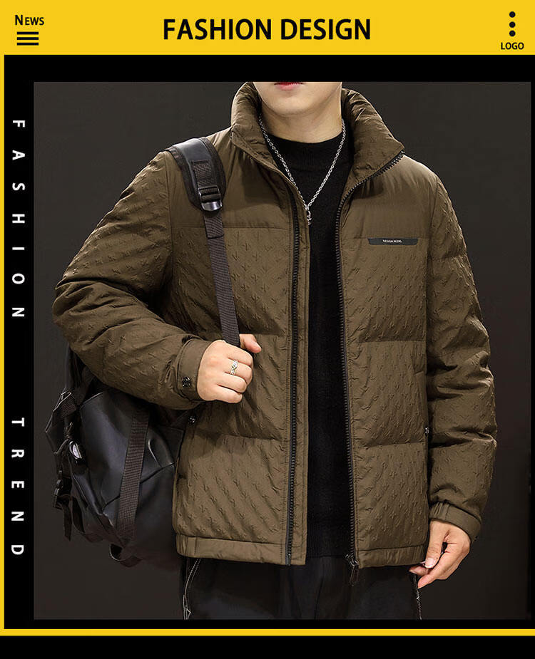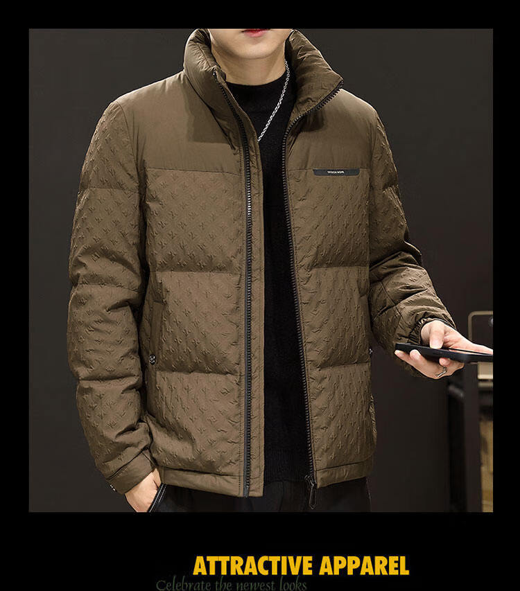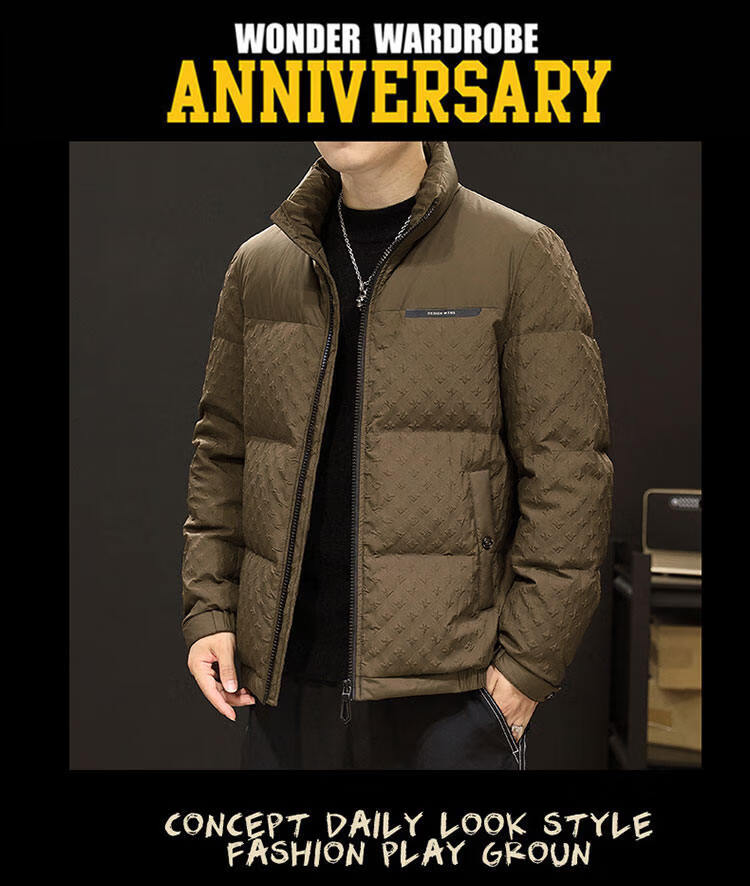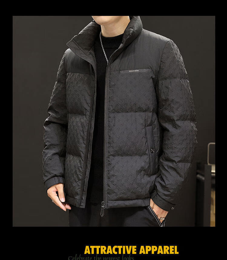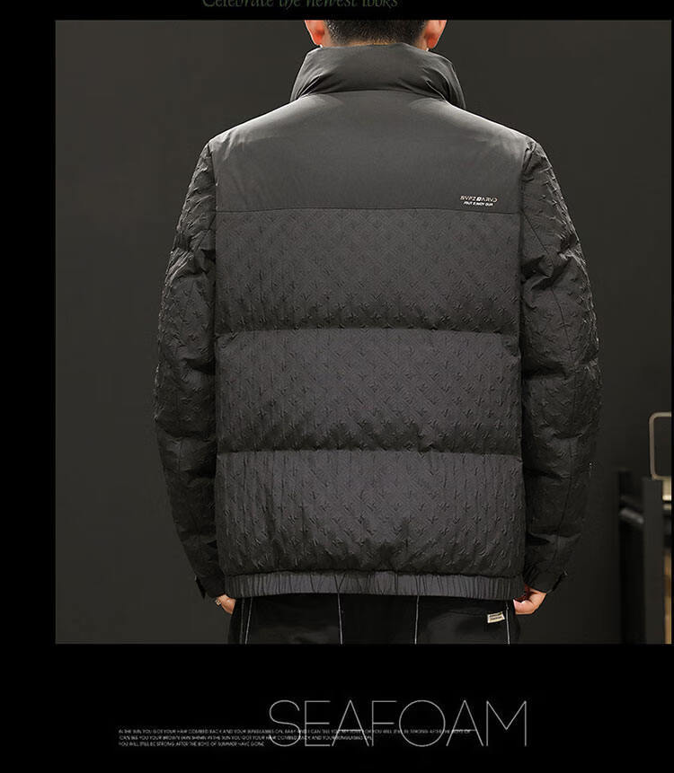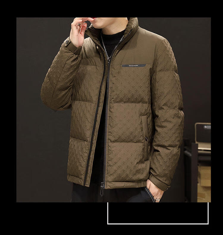 Новый зимний мужской пуховик ROMON 90 с белым утиным пухом высокого класса с воротником-стойкой, повседневная утолщенная теплая куртка для молодежи и среднего возраста, тренд черного цвета, высококачественный 90 утиный пух XL 180, подходит для веса 140-160 Джин Джин равен 0,5 кг