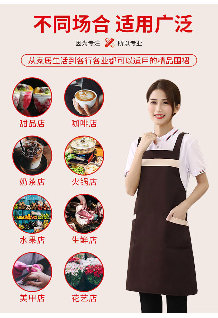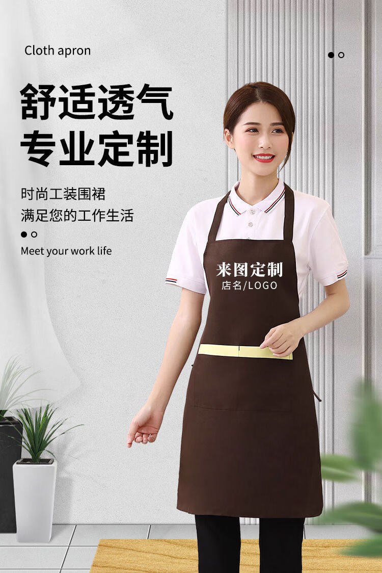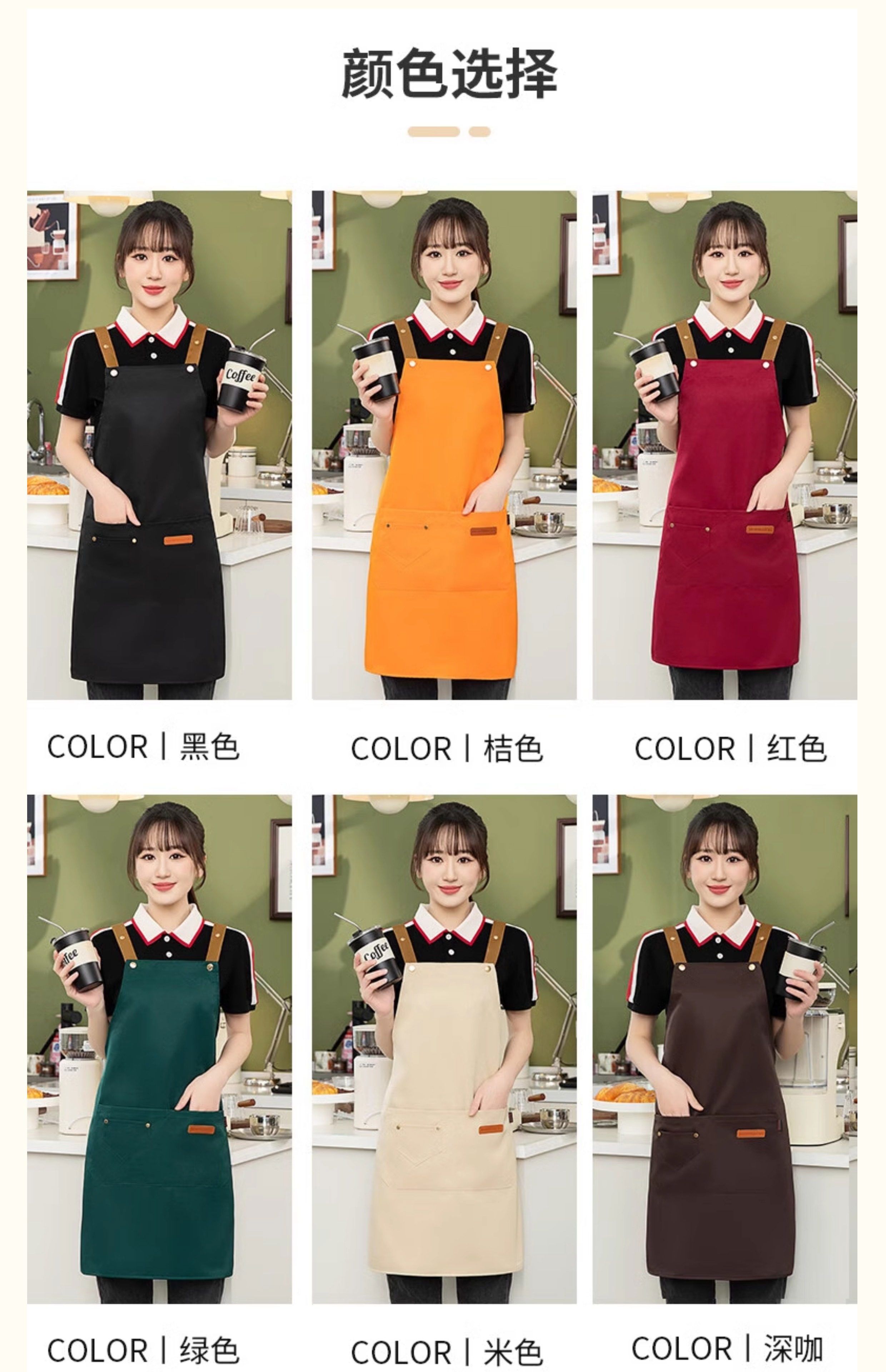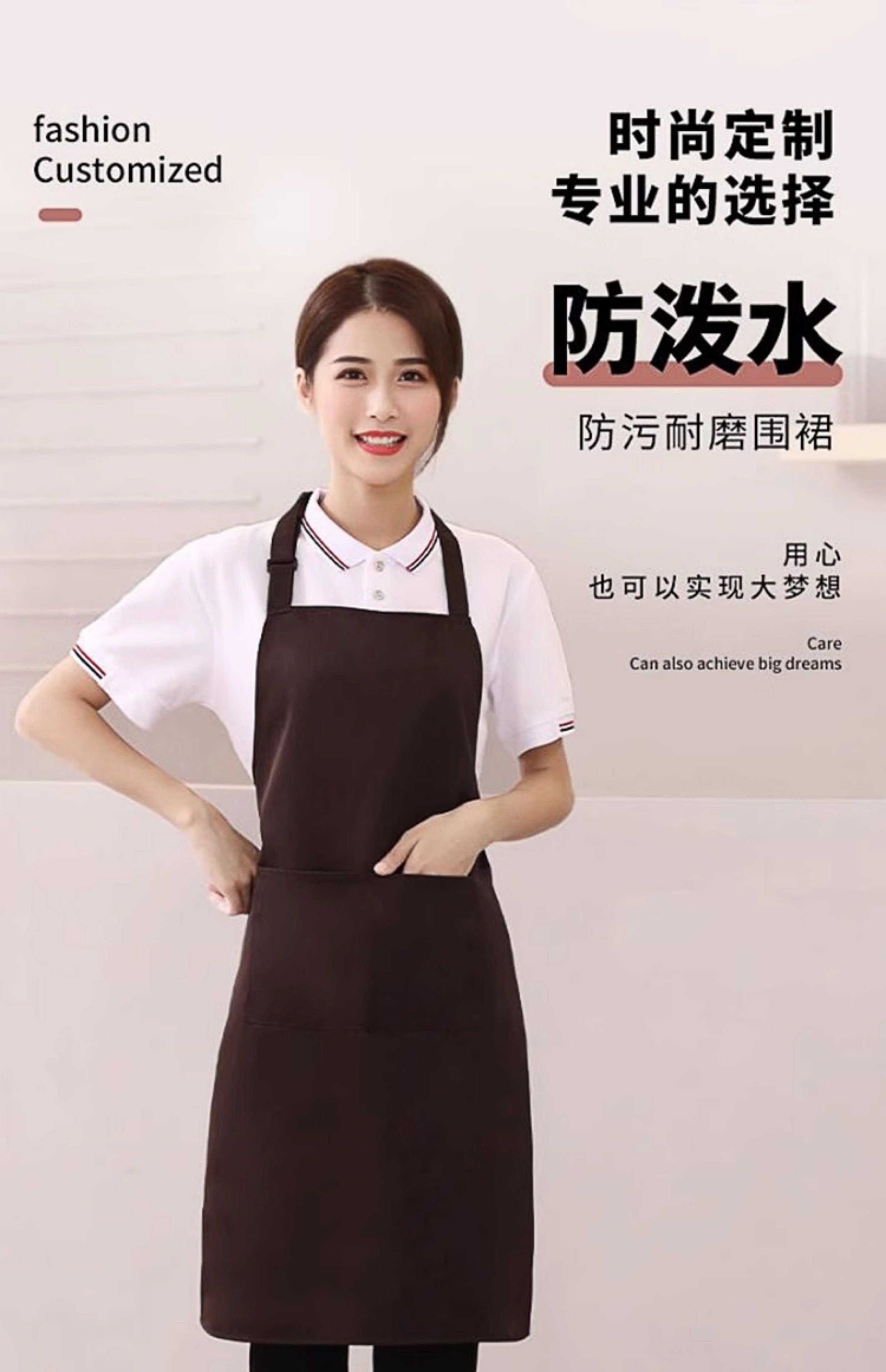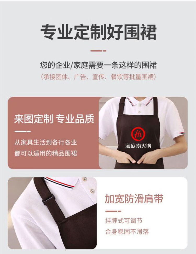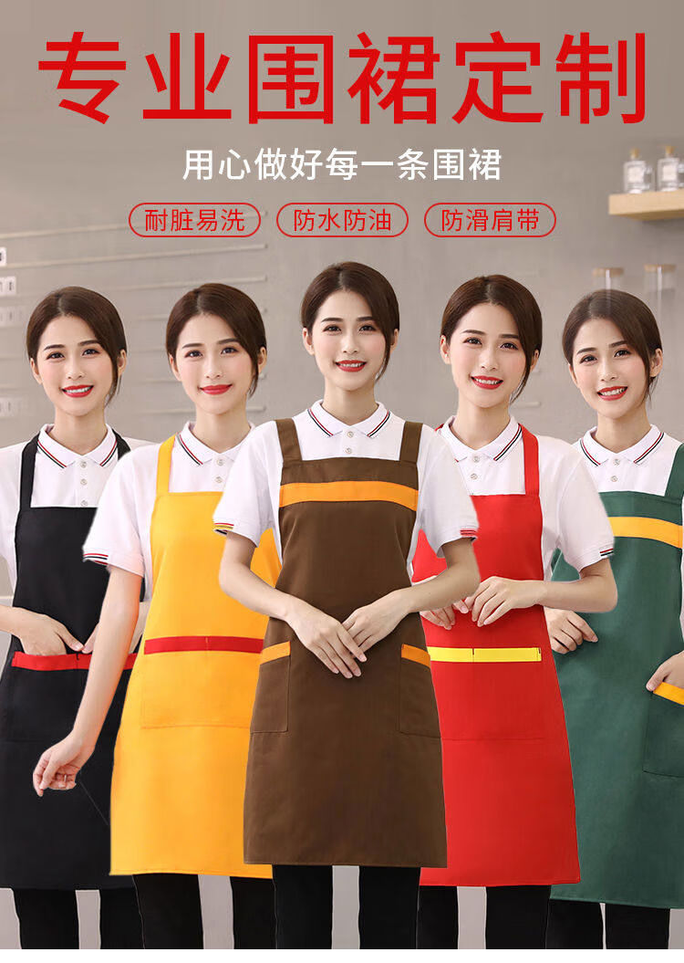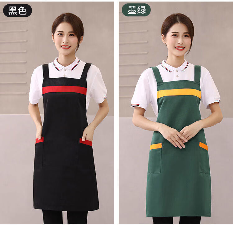 Shantou Lincun apron customized logo printing supermarket kitchen home restaurant catering women's new work clothes waterproof and oil-proof 9 black thickened water-repellent shoulder style 5 pack