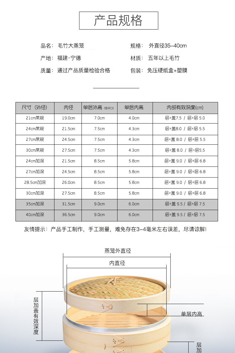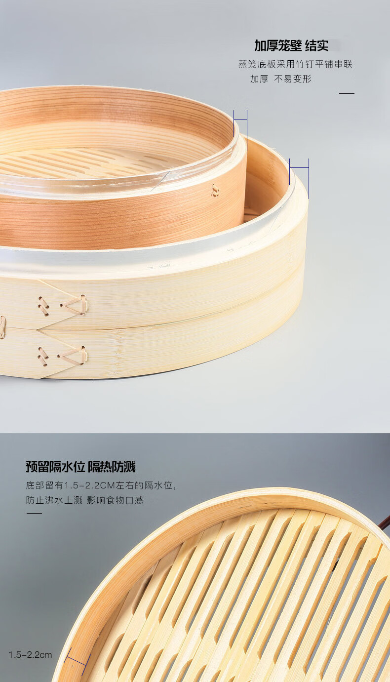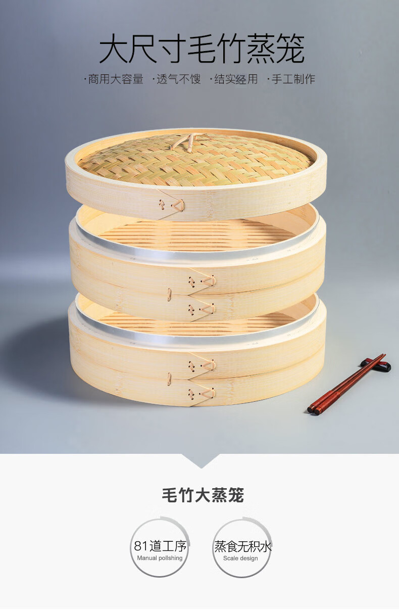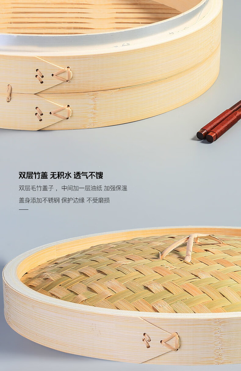 Steaming Shangmei Commercial 5260cm Moso Bamboo Large Steamer Bamboo Thickened Steamer Steamer Steamed Buns Steamed Buns Handmade Steamer 35cm 3 layers 1 cover