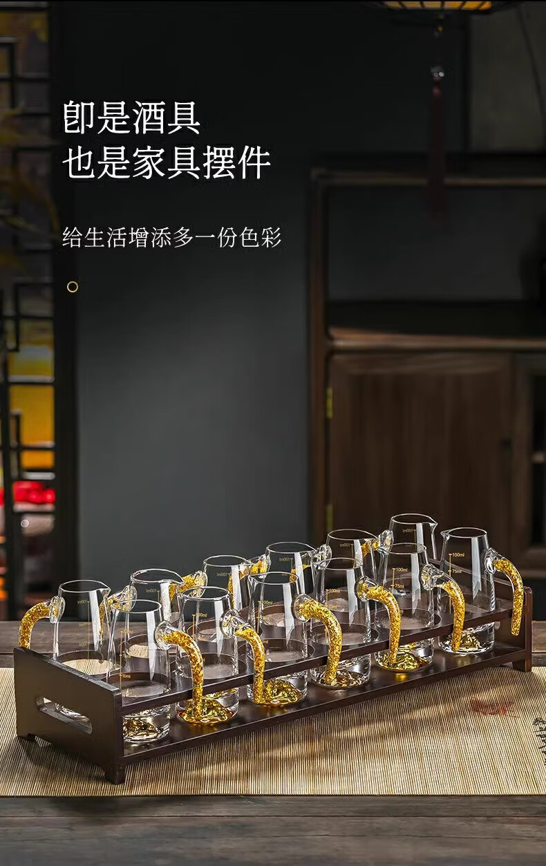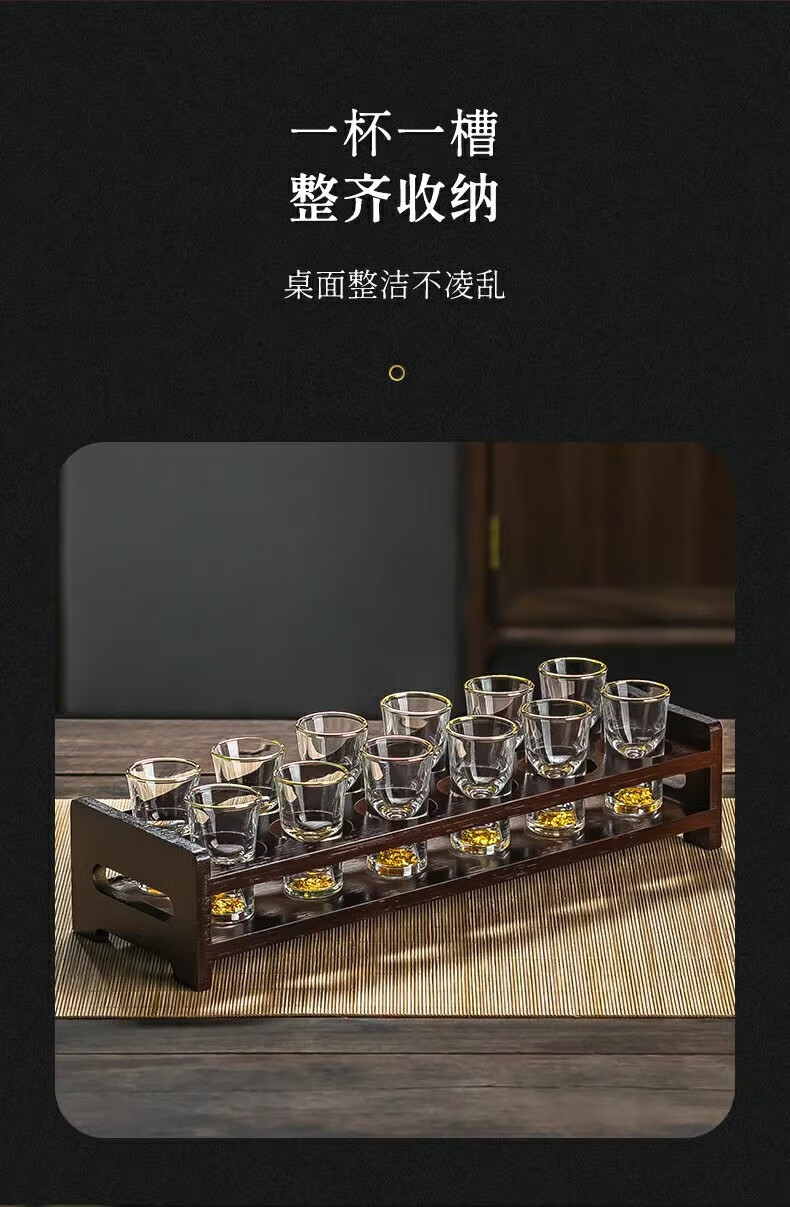 Genasi light luxury gold foil crystal glass white cup divider set household small cup holder 15ml 12 cups + 12 hole white cup holder