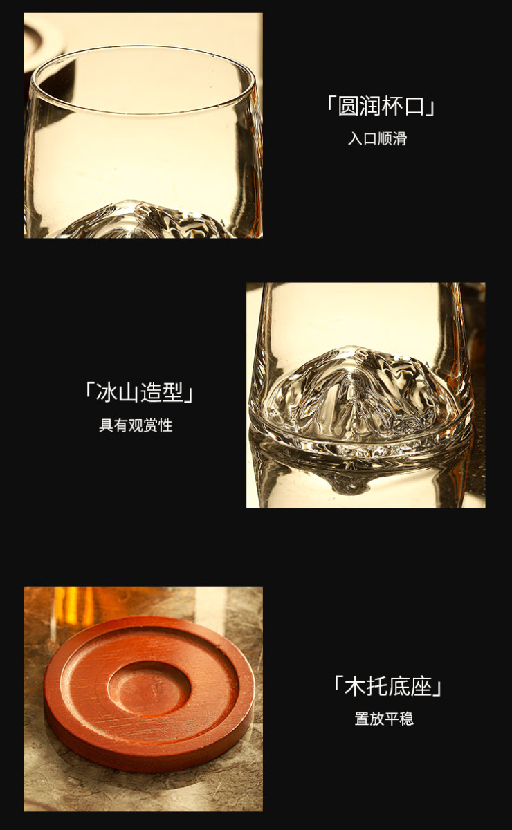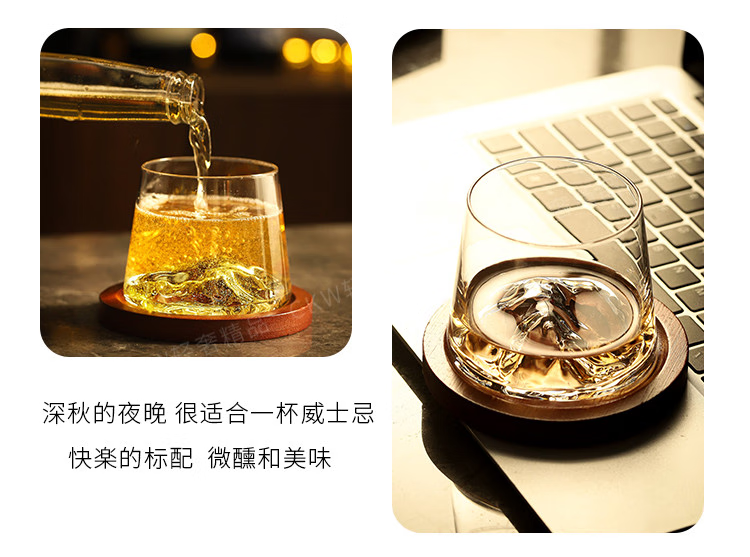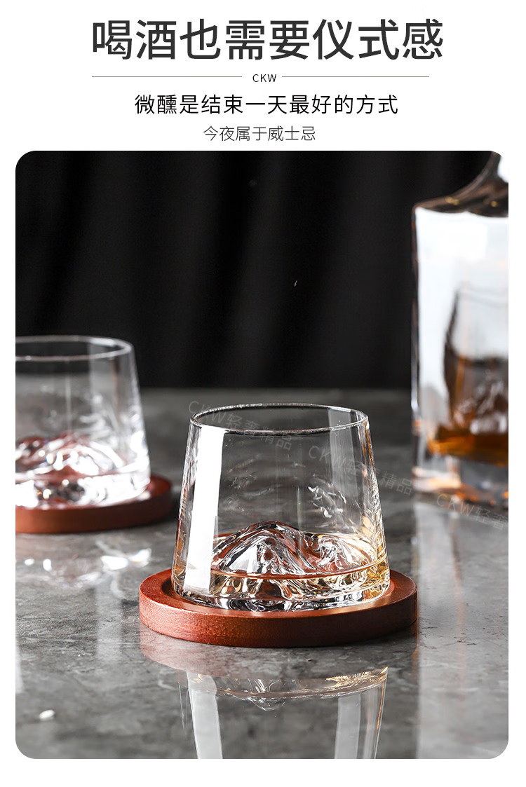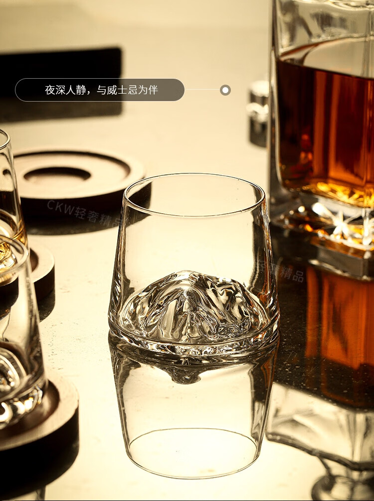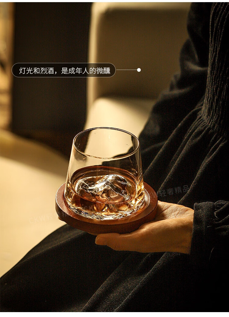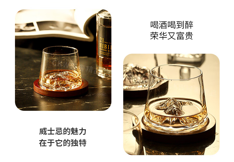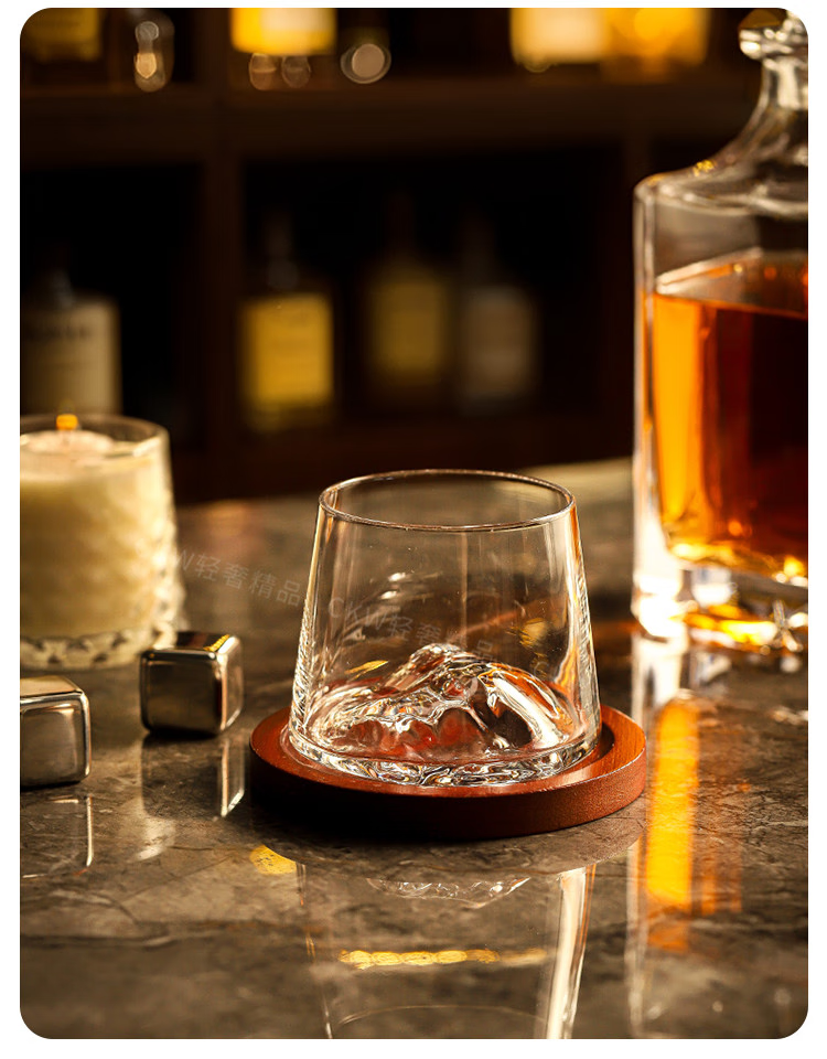 Sailoto Light Luxury Whiskey Cup Viewing Mountain Glass High-Value Gift Box Set for Home Use Snow Mountain Cup 2 Sets of Wooden Trays