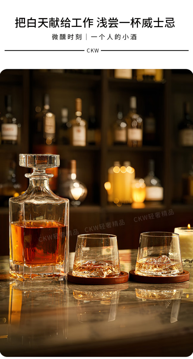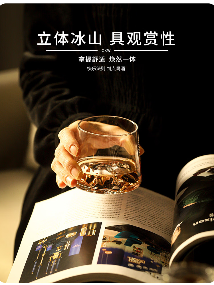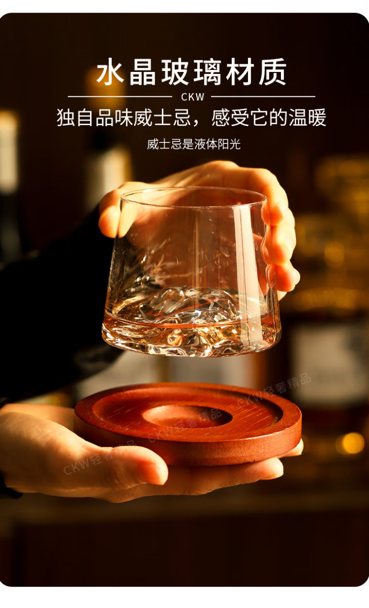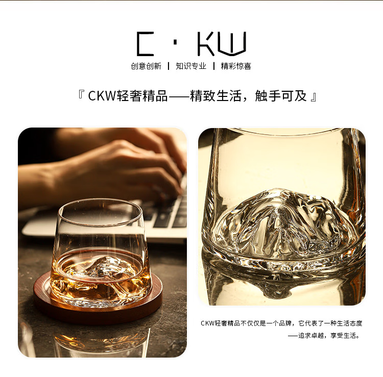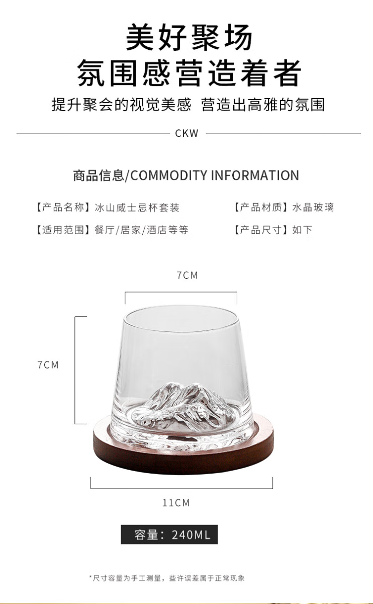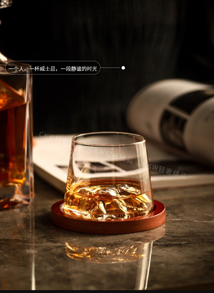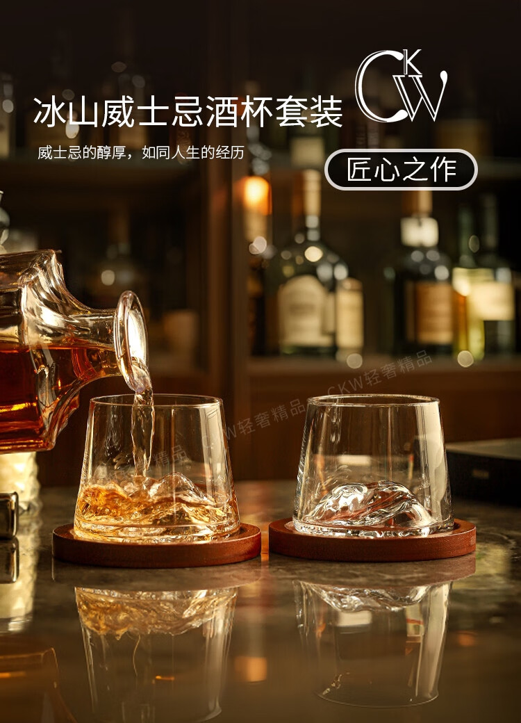 Sailoto Light Luxury Whiskey Cup Viewing Mountain Glass High-Value Gift Box Set for Home Use Snow Mountain Cup 2 Sets of Wooden Trays