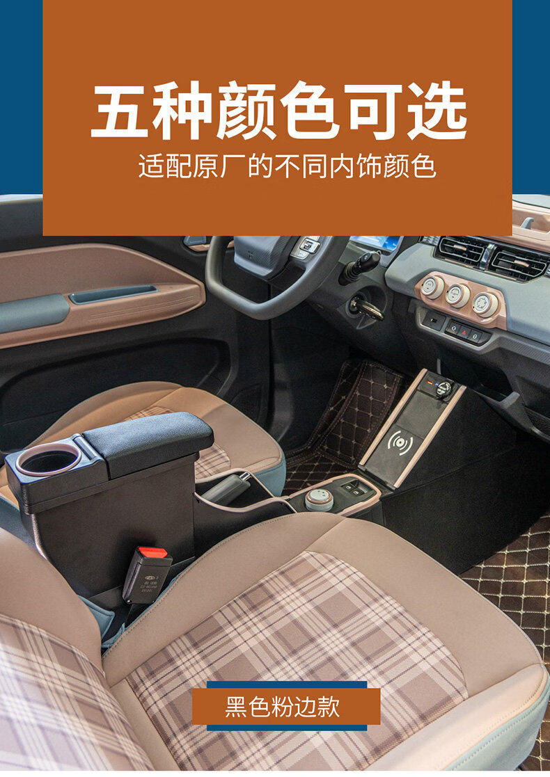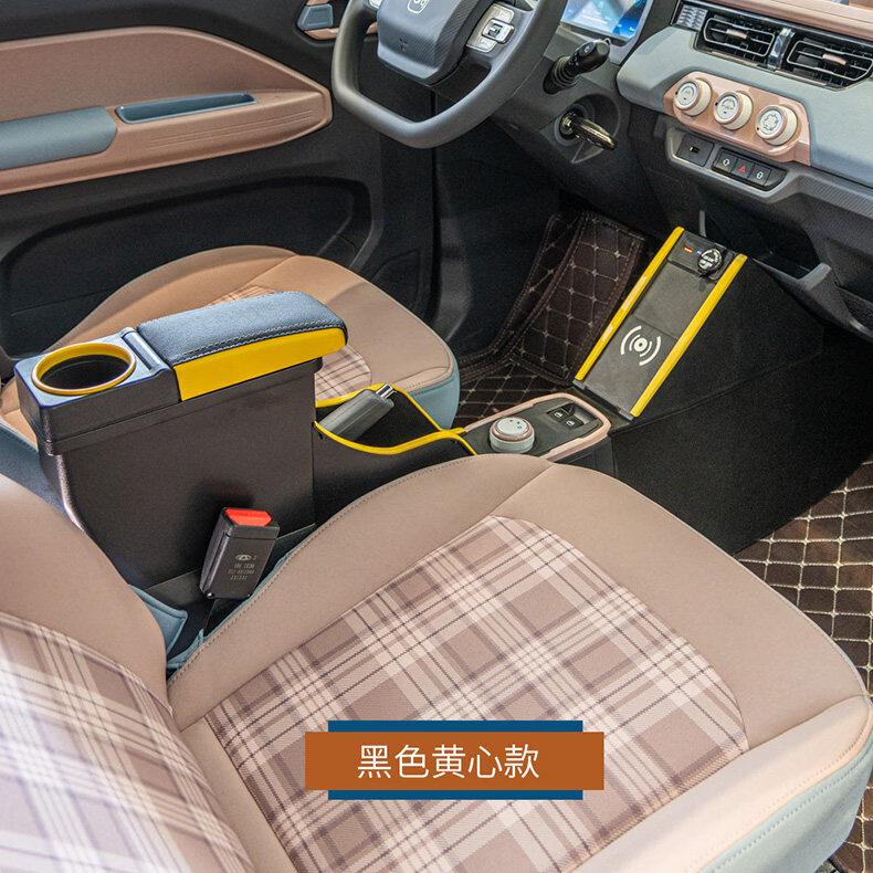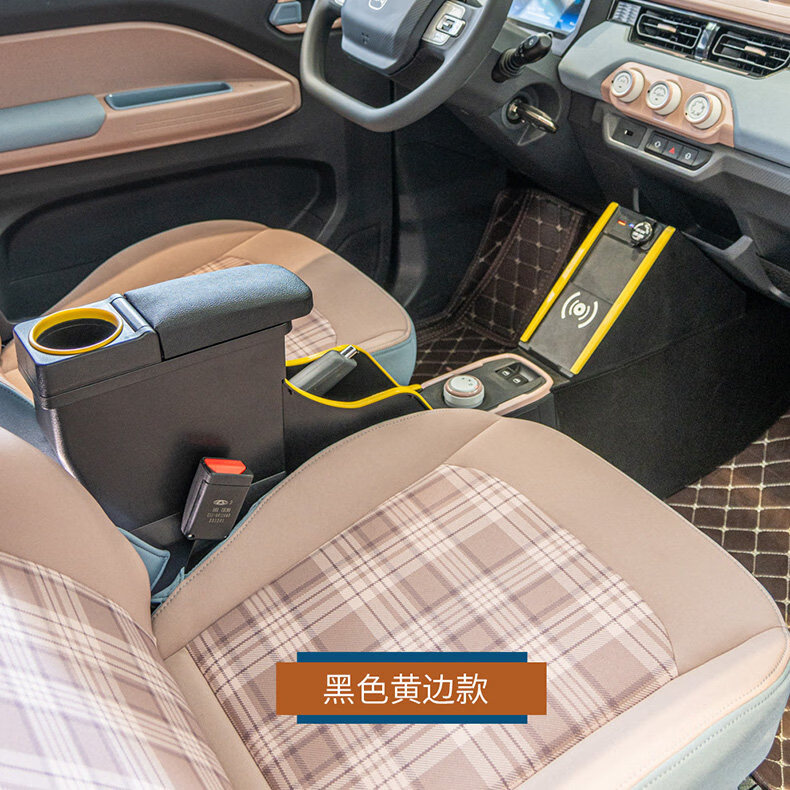 Gongma Chery QQ Ice Cream Armrest Box Electric Vehicle Modified Decorative Accessories Interior QQ Ice Cream Center Armrest Box Economic Model - (Single Armrest Box - Without Charging) Lemon Yellow Black Cover Chery QQ Ice Cream/2022-2024