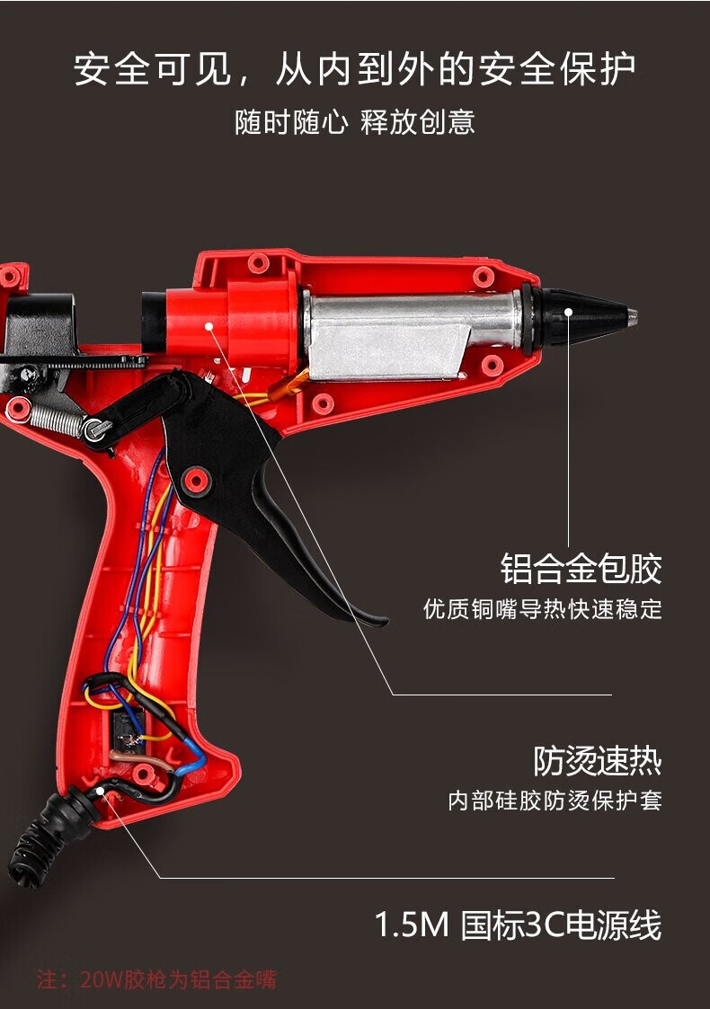 Sailotou customized hot melt glue gun home handmade glass electric glue gun 711 glue stick glue strip children's model 20W + 10 glue sticks