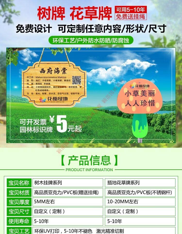 Huacao brand galvanized sheet hanging tree sign custom plant introduction ground outdoor sign adoption advertising tree introduction personalized customization contact customer service deposit