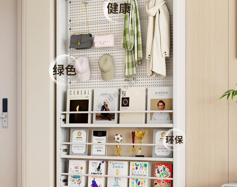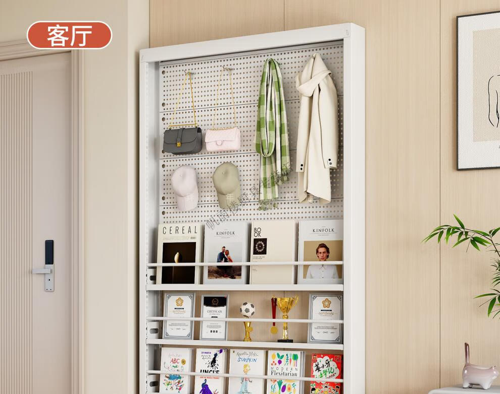 Customized gaming room floor-to-ceiling hole-board storage rack with steel hole-board storage rack and bookshelf behind the door. Hole-board style thickness 8CM, height 1.8 meters, width 0.6