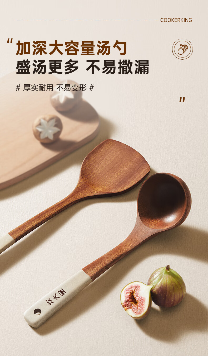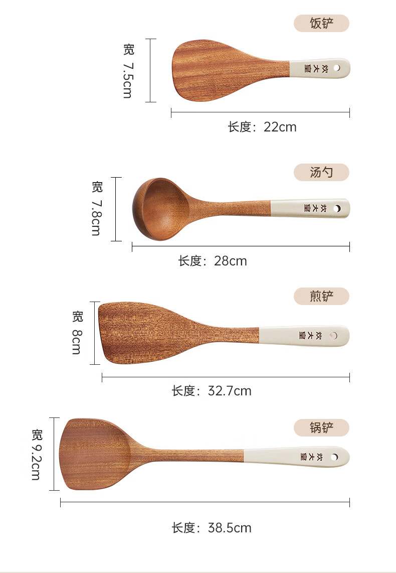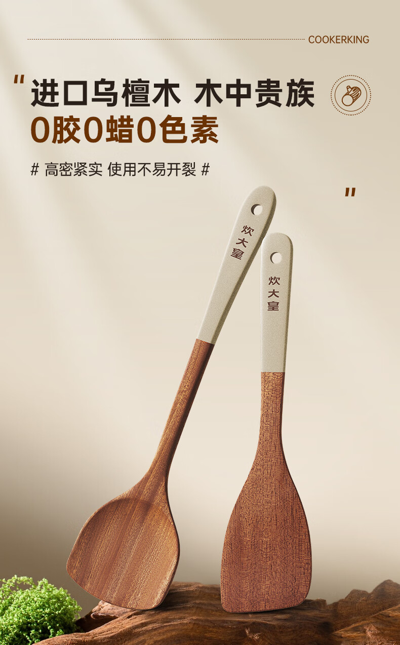 Spatula ebony spatula non-stick cooking spatula high temperature resistant frying spoon wooden spoon rice spoon two-piece set spatula + soup spoon