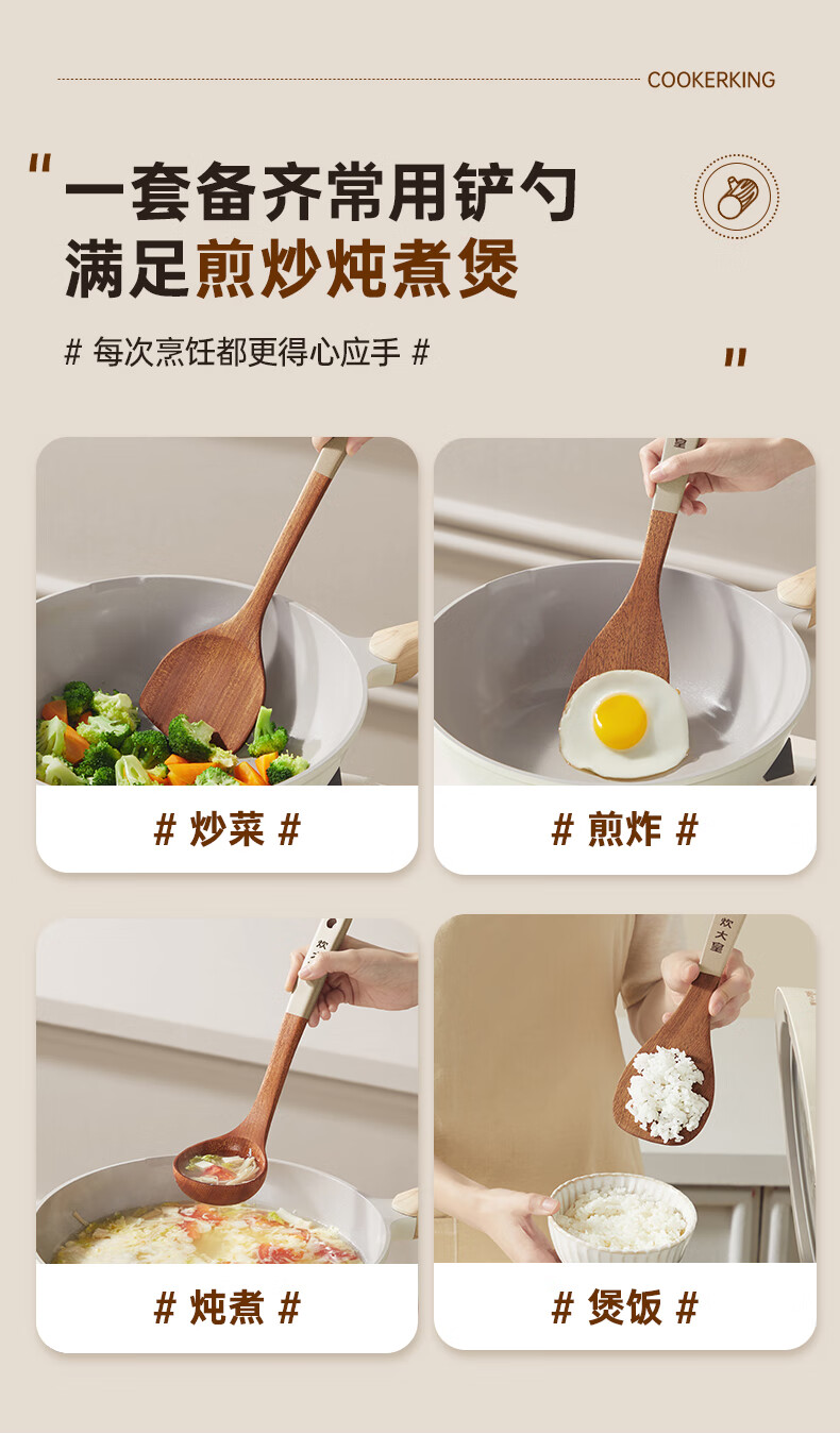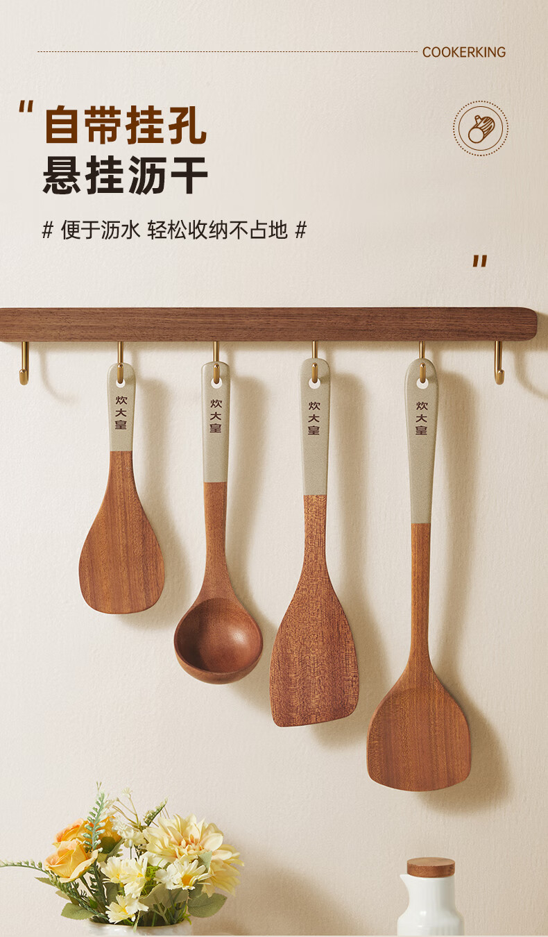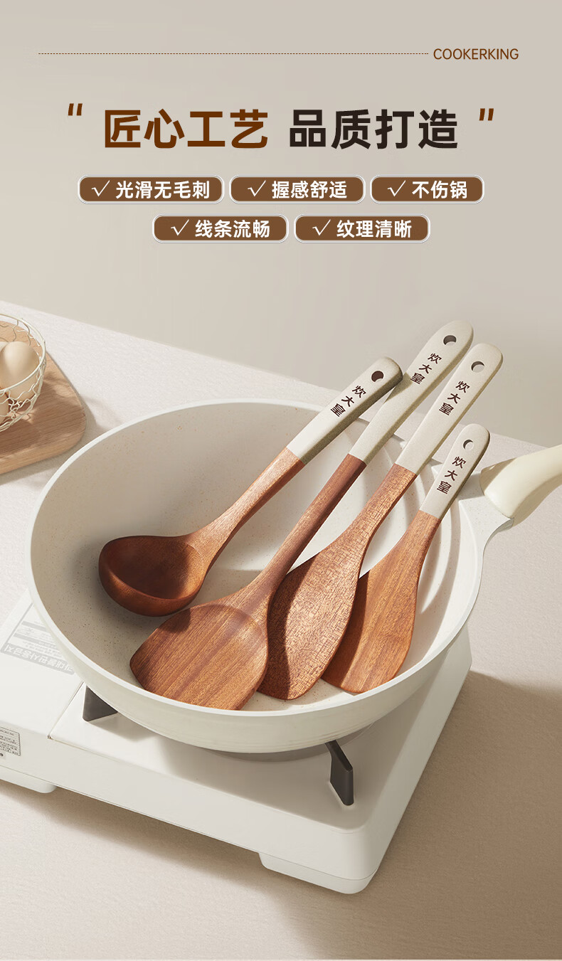 Spatula ebony spatula non-stick cooking spatula high temperature resistant frying spoon wooden spoon rice spoon two-piece set spatula + soup spoon