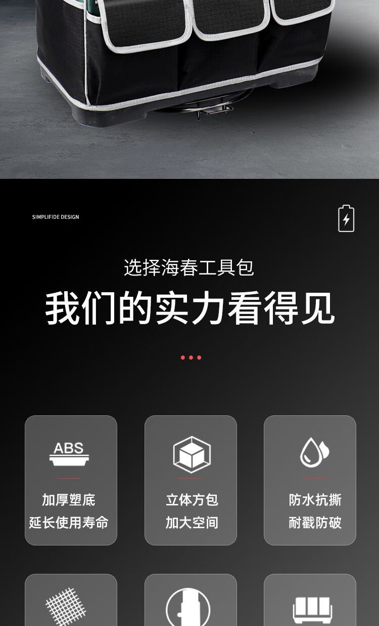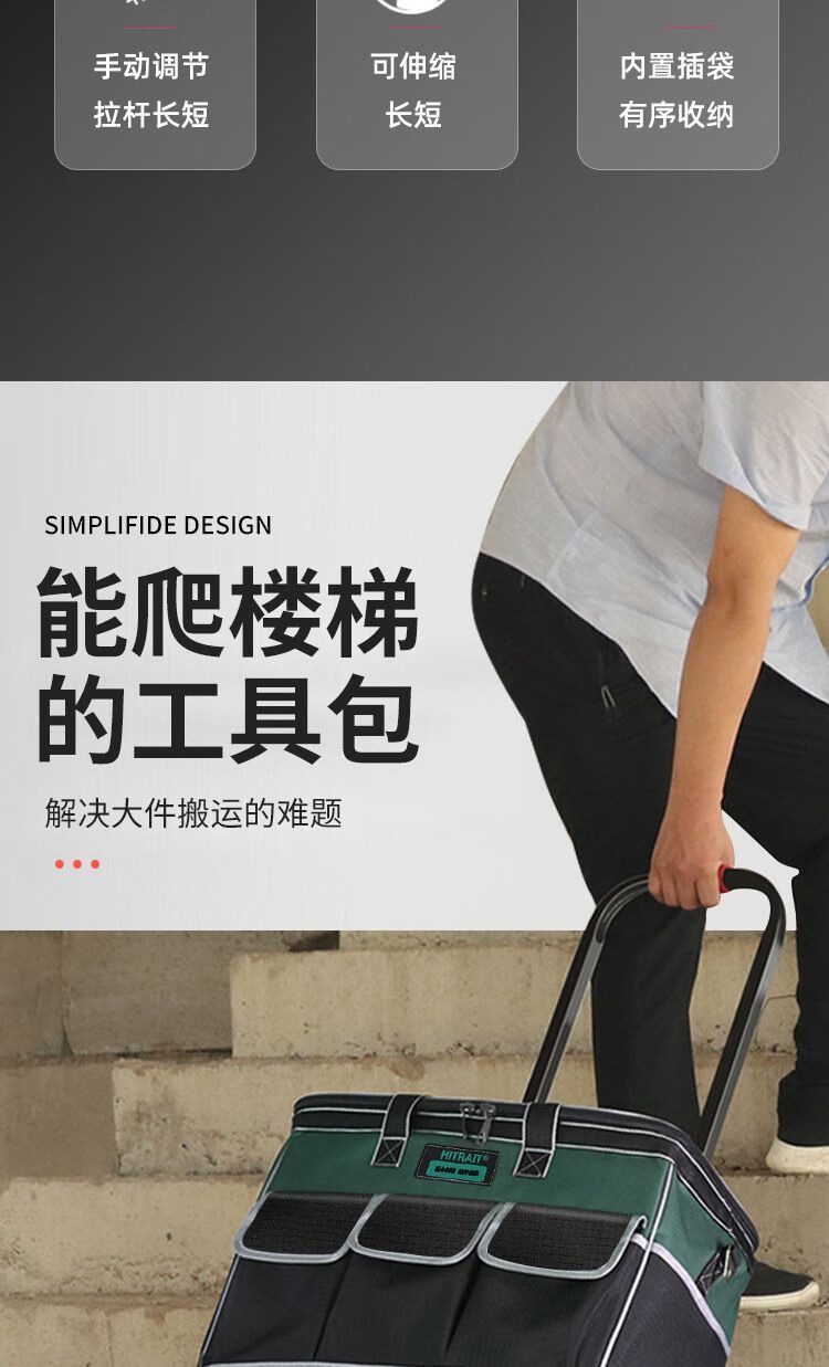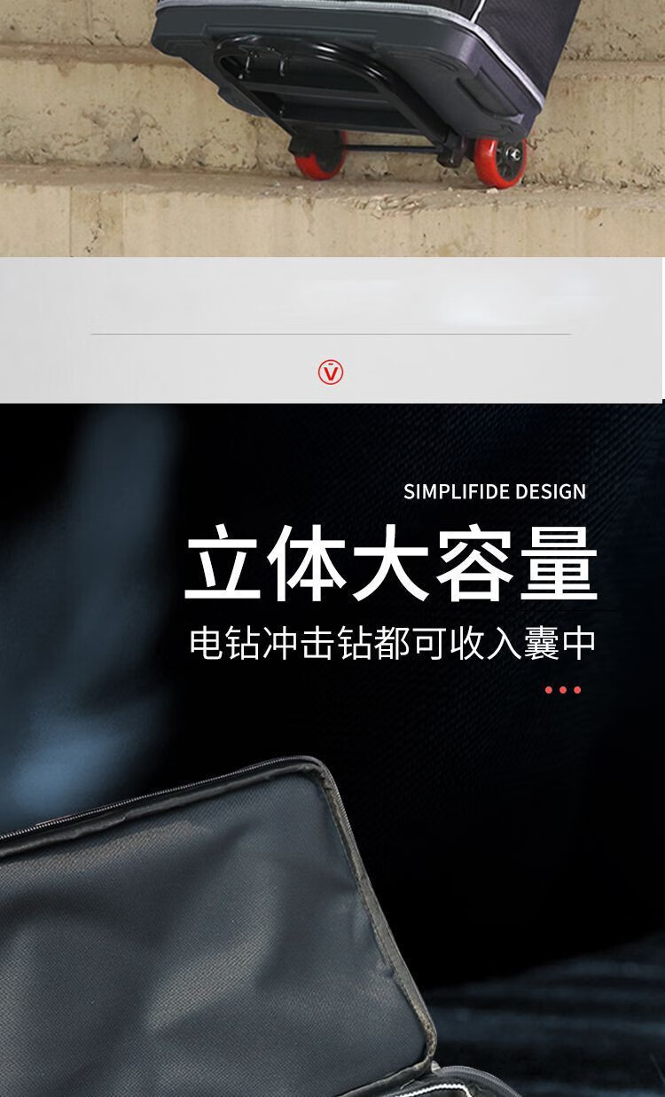 Sailoto Trolley Tool Box Tool Bag Canvas Wear-Resistant Extra Thick Durable Wheeled Storage Bag Large Capacity Repair Electrician H20 Inch Plastic Bottom Triangular Bag Without Trolley