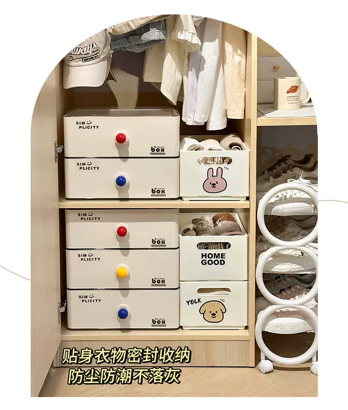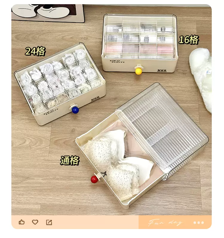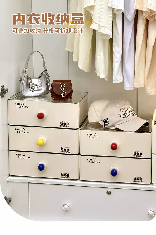 Yusenyi dormitory drawer-type underwear and socks storage box for students' underwear and underwear with compartments. Beige underwear storage box without compartments-Red Ball. Beige underwear storage box without compartments-Red Ball.