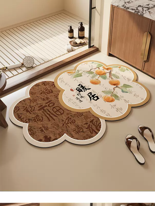 Yusenyi Bathroom New Mat Water Floor Bathroom Door Non-Slip Foot Mat Mud Special-shaped Bathroom Carpet Chinese Diatom Diatom Mud Persimmon 80x120cm (antibacterial and anti-mold)
