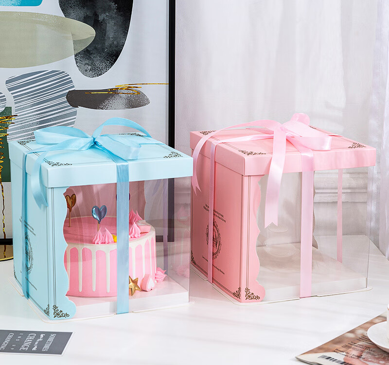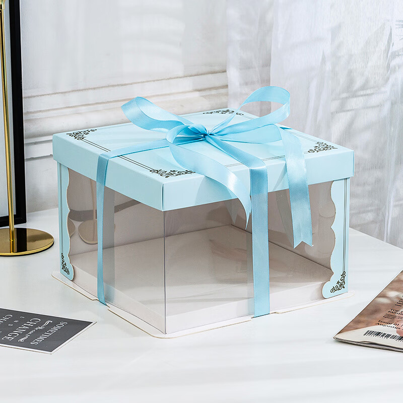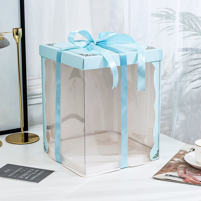 Meikejie translucent box 6 inches 8 inches 12 inches packaging birthday box square heightening gift box translucent blue 50 sets eight inches heightening 26-26-31