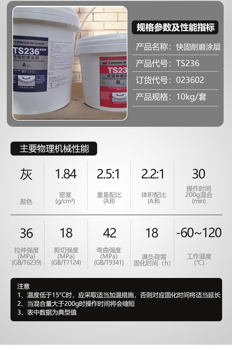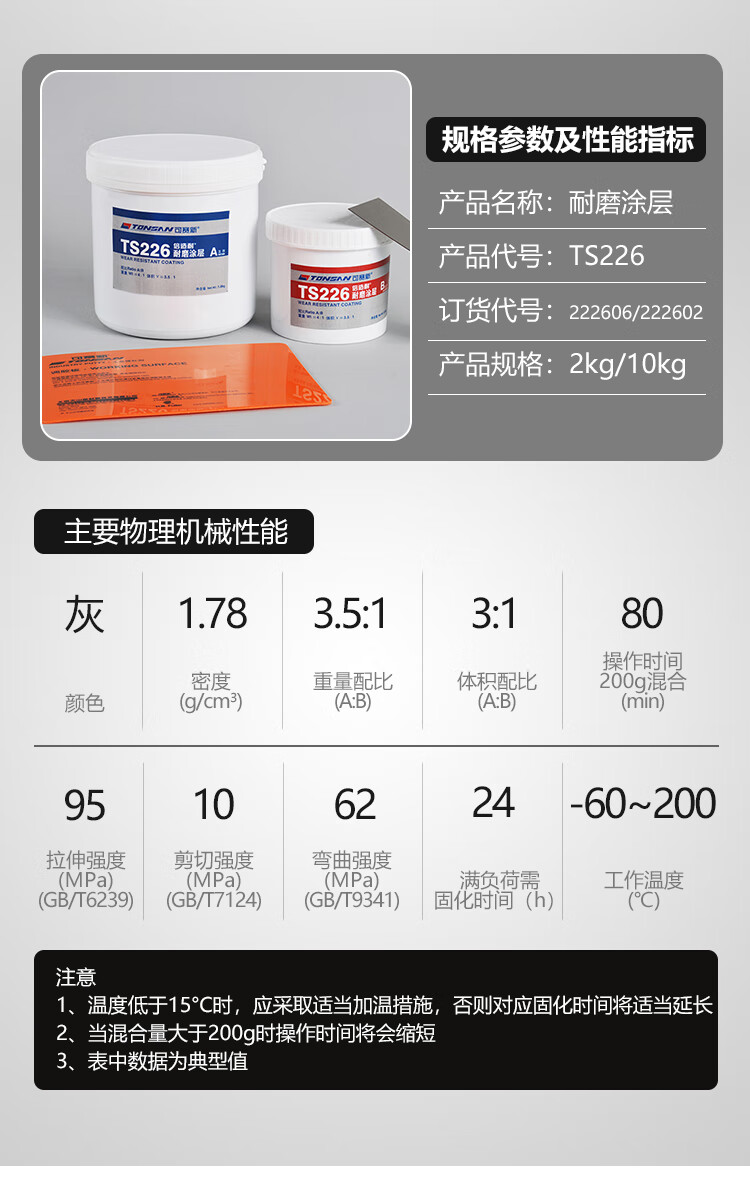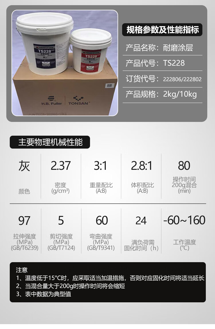 Ts226228 wear-resistant coating silicon carbide industrial metal anti-rust coating wear-resistant ceramic particle glue ts23810kg package