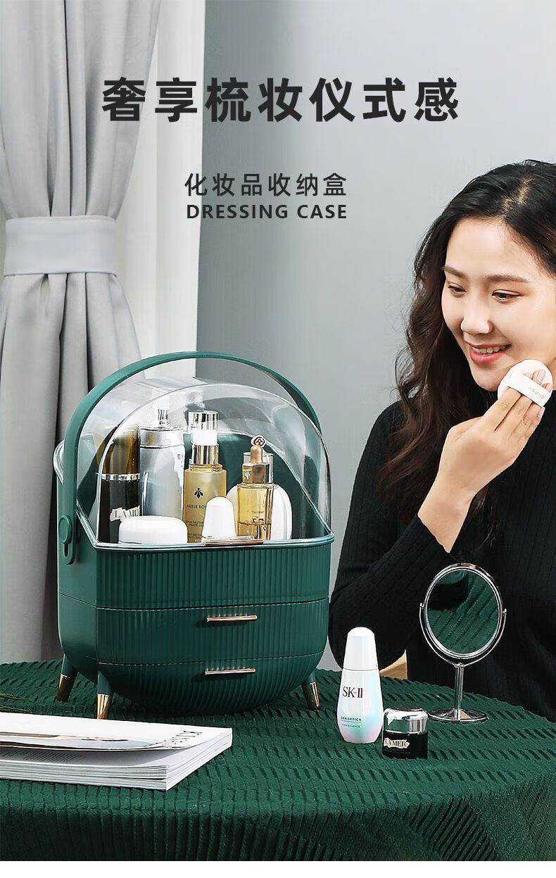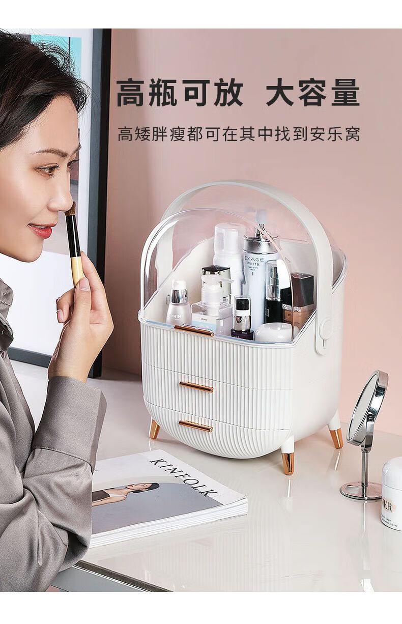 Light luxury desktop cosmetics storage box, skin care products, gouache storage box, large capacity storage cabinet, portable, dustproof, light luxury i style white + pen holder set