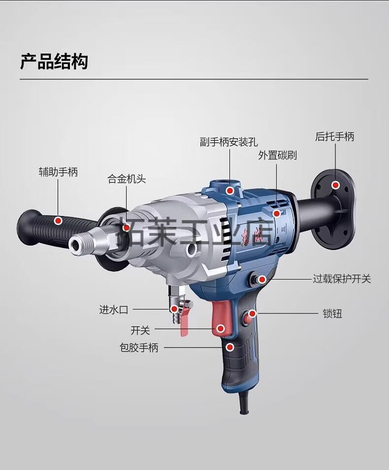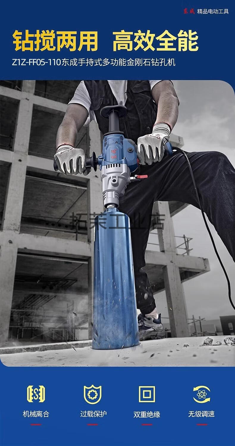 Dongcheng water drill machine hand-held drilling machine dual-purpose high-power engineering drill drilling tool with bracket FF05-110 air conditioning package 63 water drill bit dry