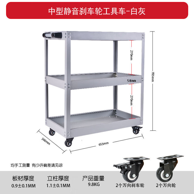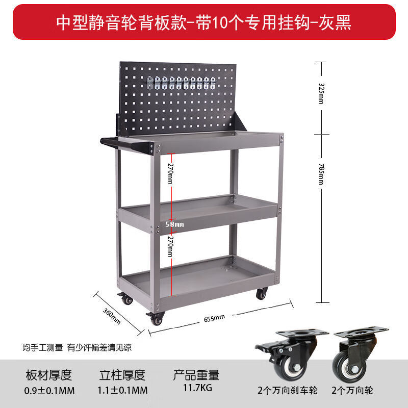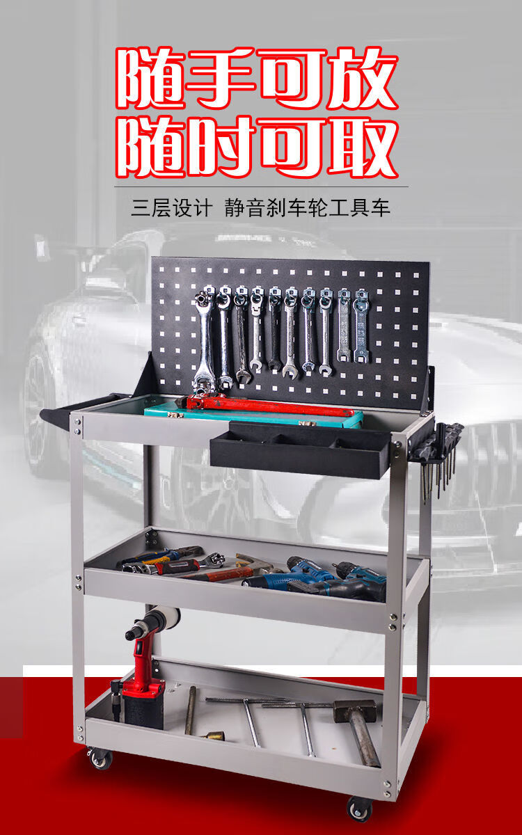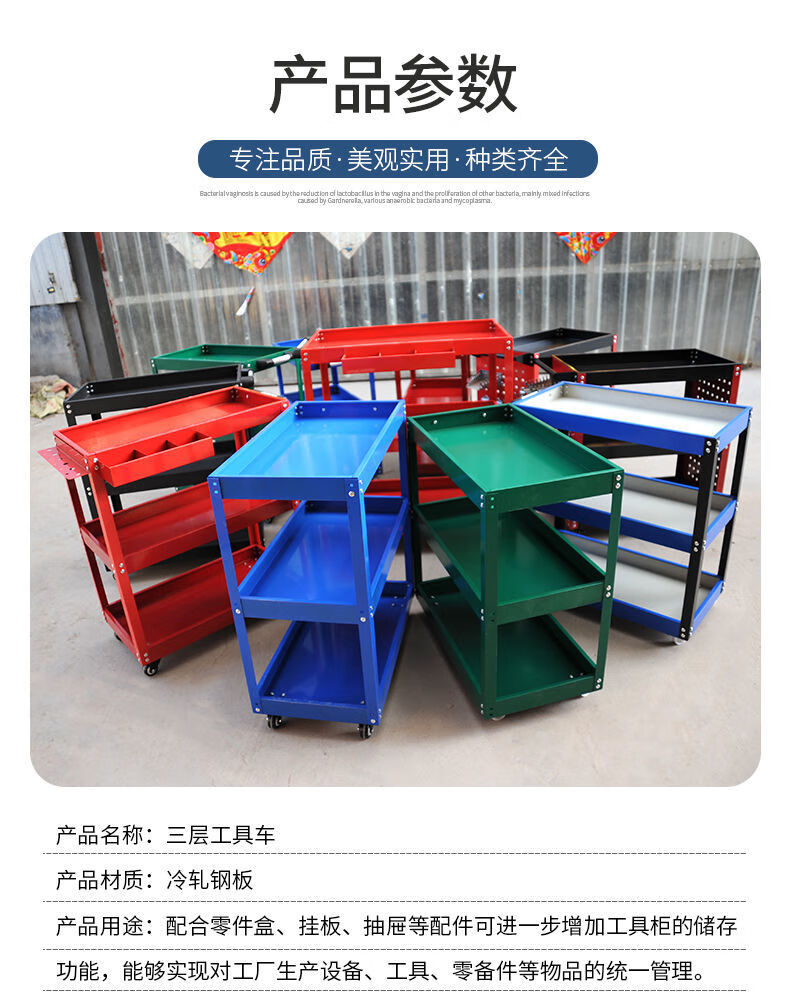 RSRDDYXJ Tool Cart Trolley Toolbox Multifunctional Workshop Multi-layer Storage Shelf Three-Layer Thickened Tool Trolley Internet Celebrity Model Red and Blue + Backplate Model