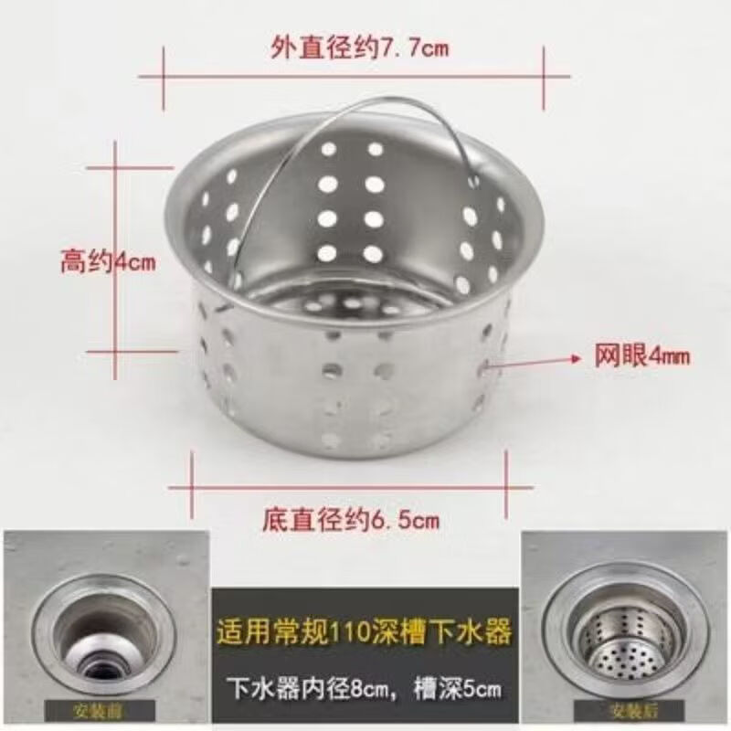 Fantasy Kitchen Sink Filter Drainer Basket Washing Basin Washing Sink Drainage Water Blocking Cover 304 Cover (Tightly Fitted and No Water Leaking) 1 Pack