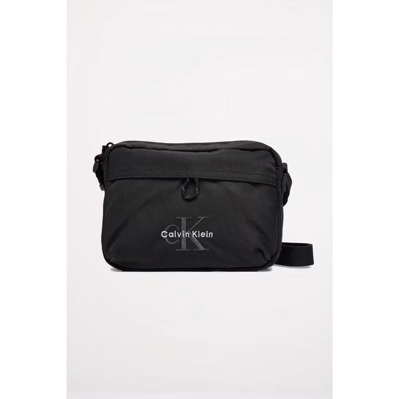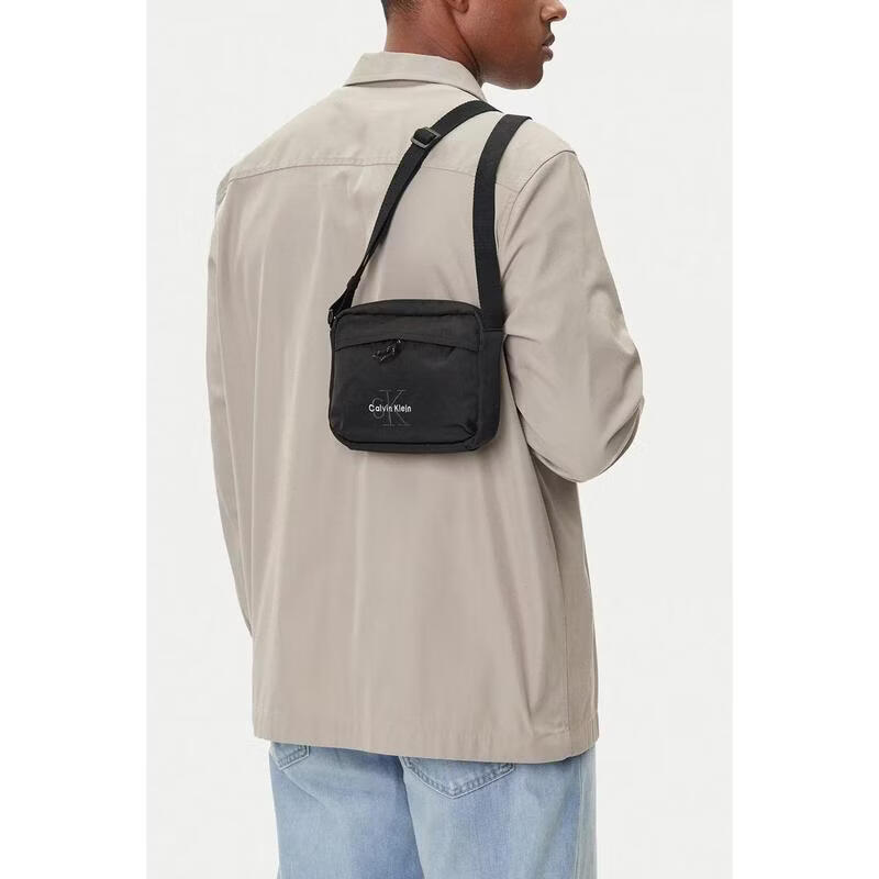 Calvin Klein Jeans men's shoulder bag, lightweight carry, multi-pocket storage, daily commuting, water-repellent surface, black fabric material, Black ONE SIZE
