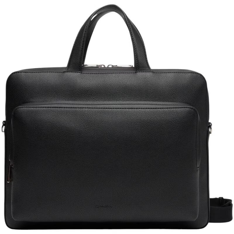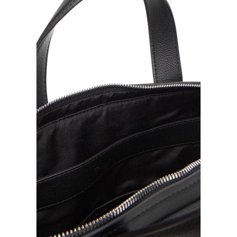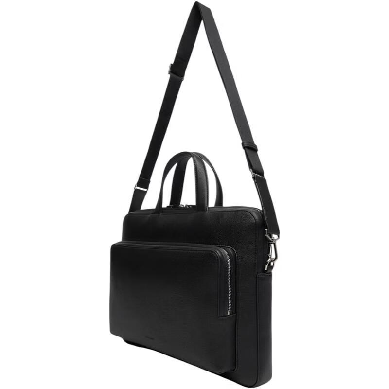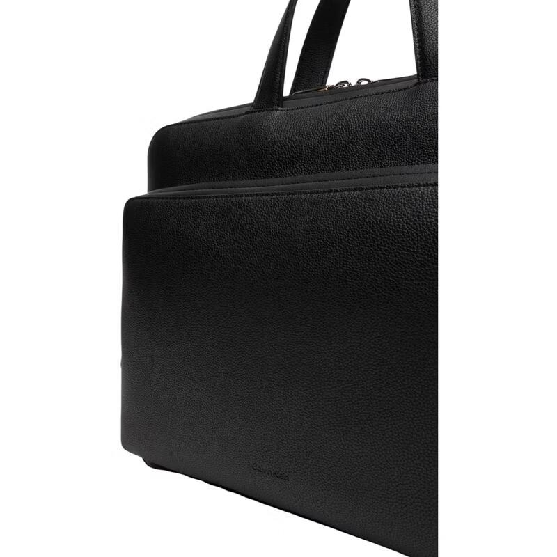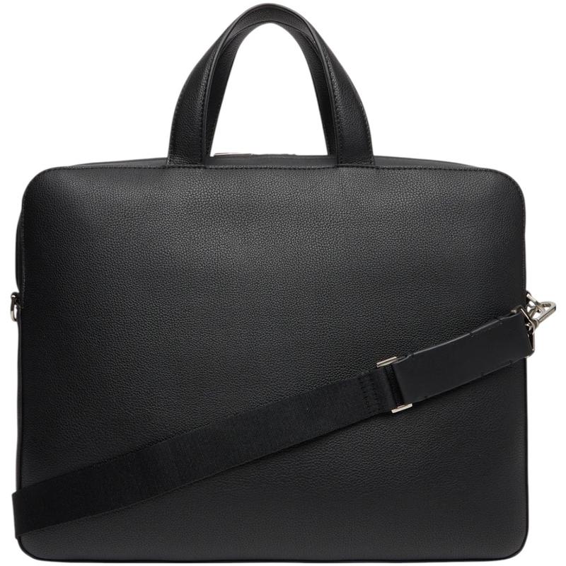 Calvin Klein Jeans men's briefcase large capacity multi-compartment removable shoulder strap front zipper bag black micrograin PU material Black SIZE 1