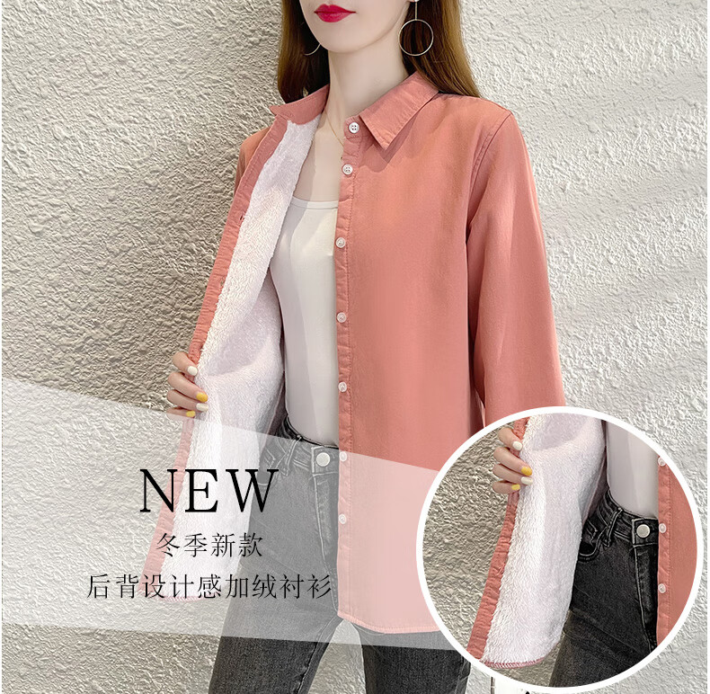 Woodpecker velvet shirt for women 2026 autumn and winter new casual fashion thickened warm and cotton inner with integrated velvet bottoming top blue M