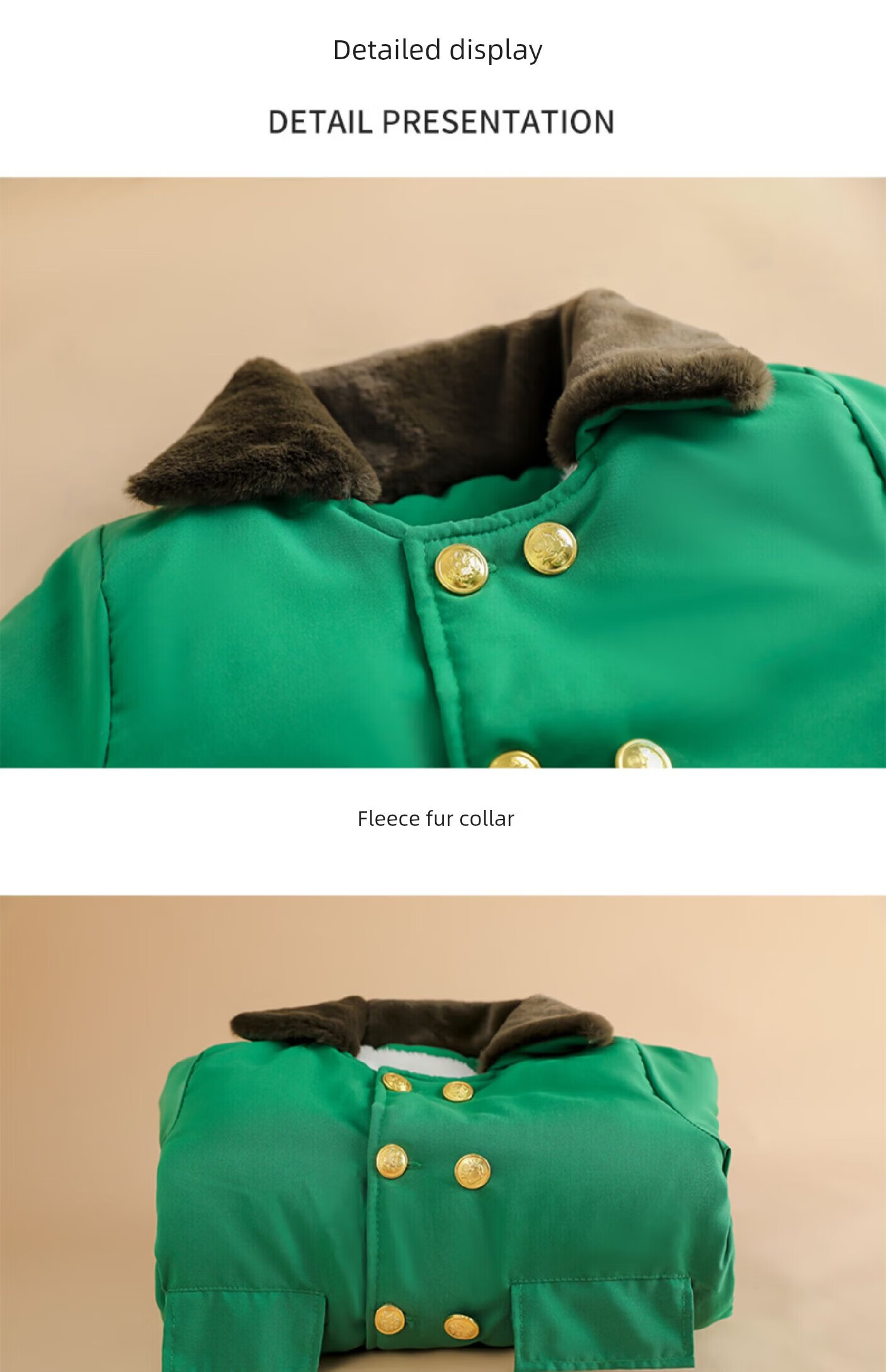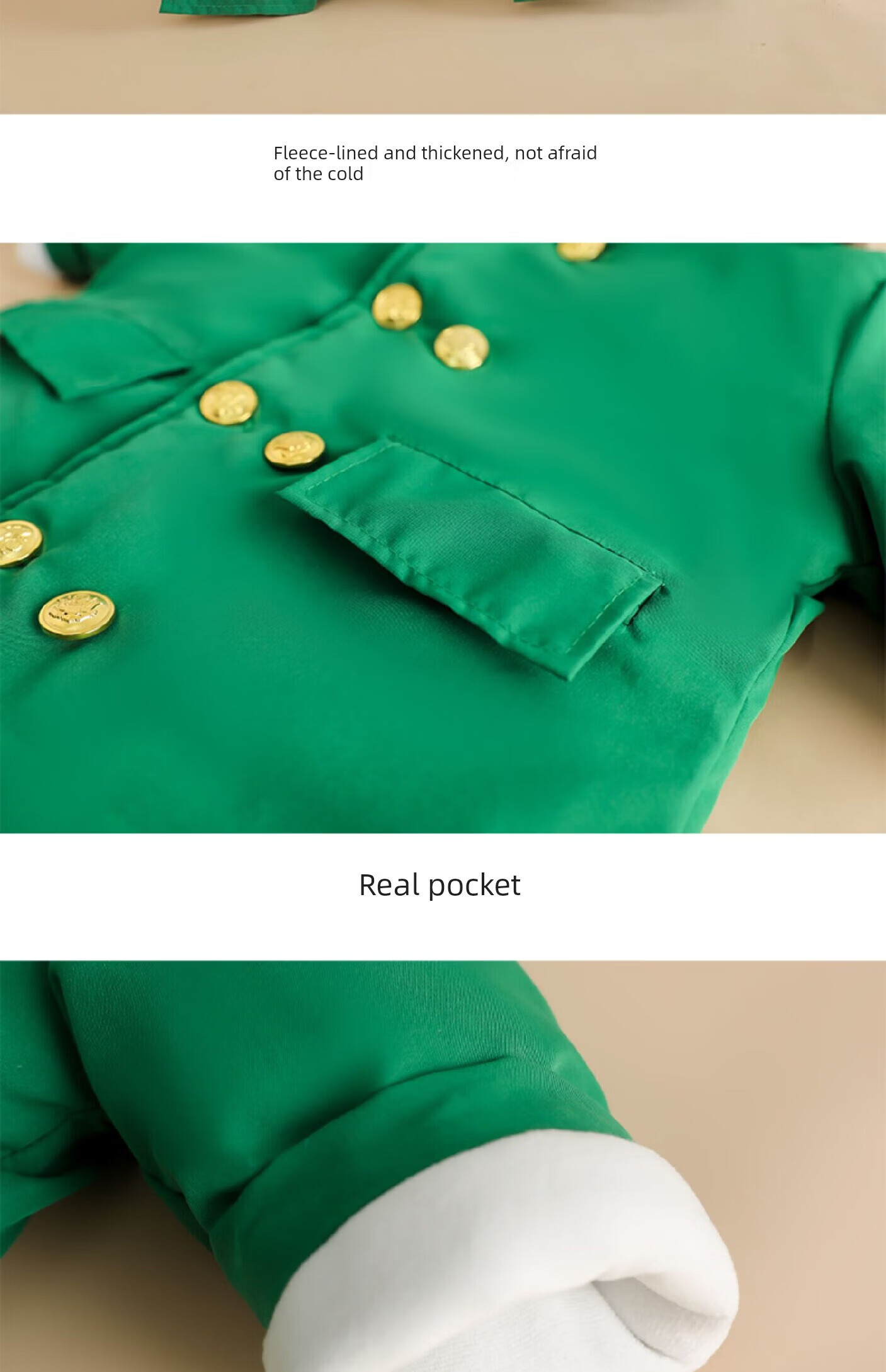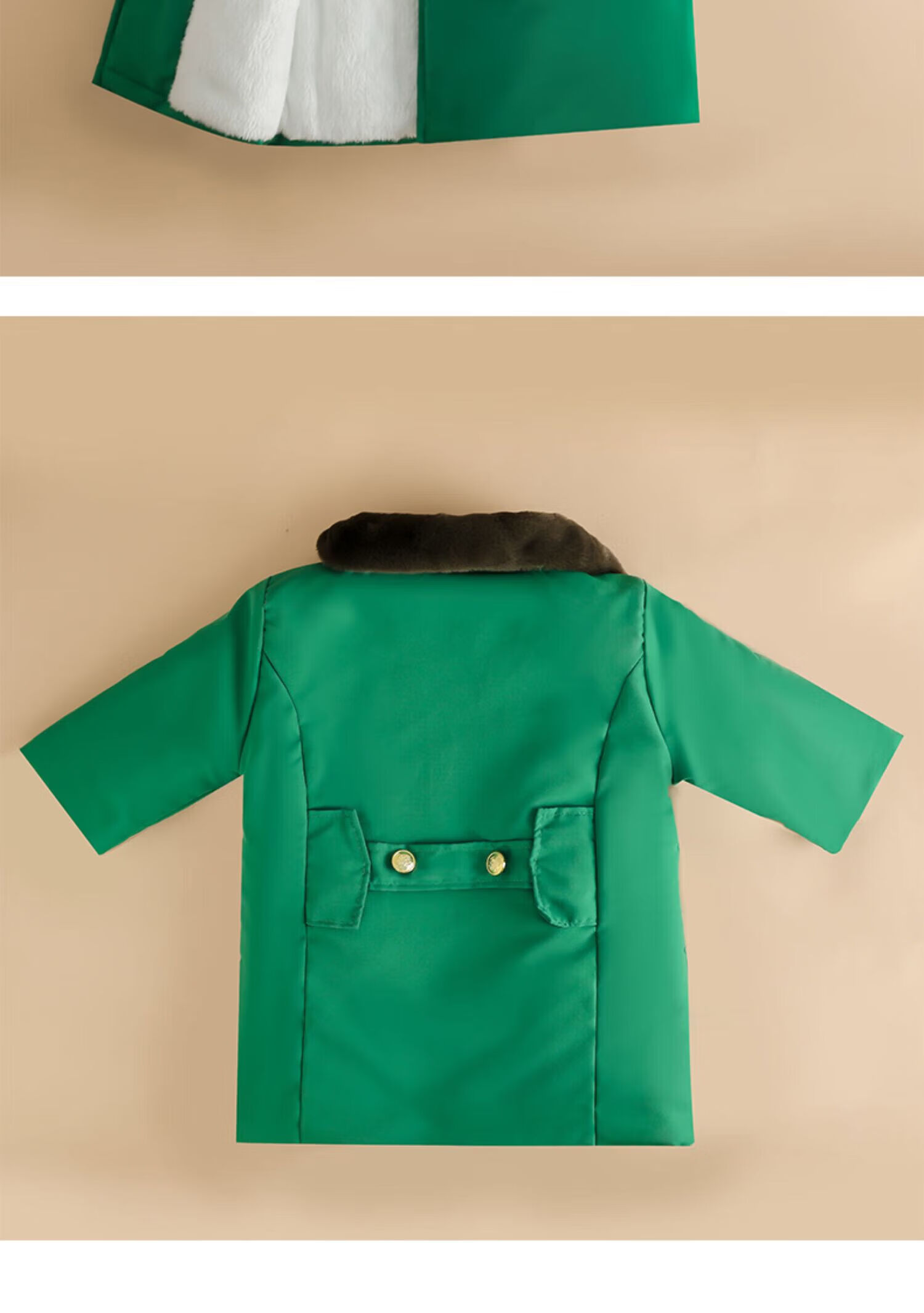 Burwilde international brand children's green military coat cotton thickened mid-length coat children's winter clothing thickened warm baby green single-piece military coat 140 cm