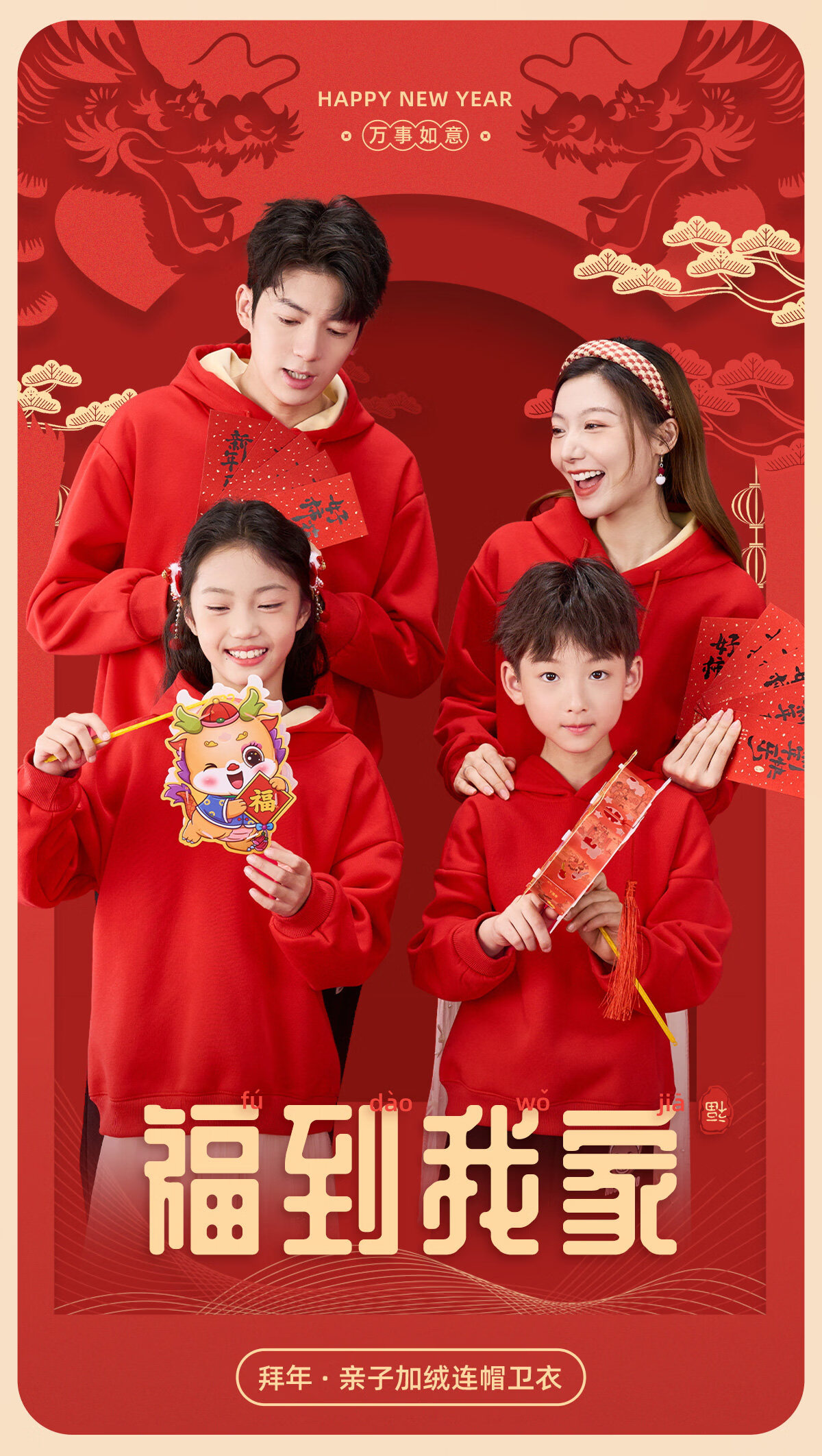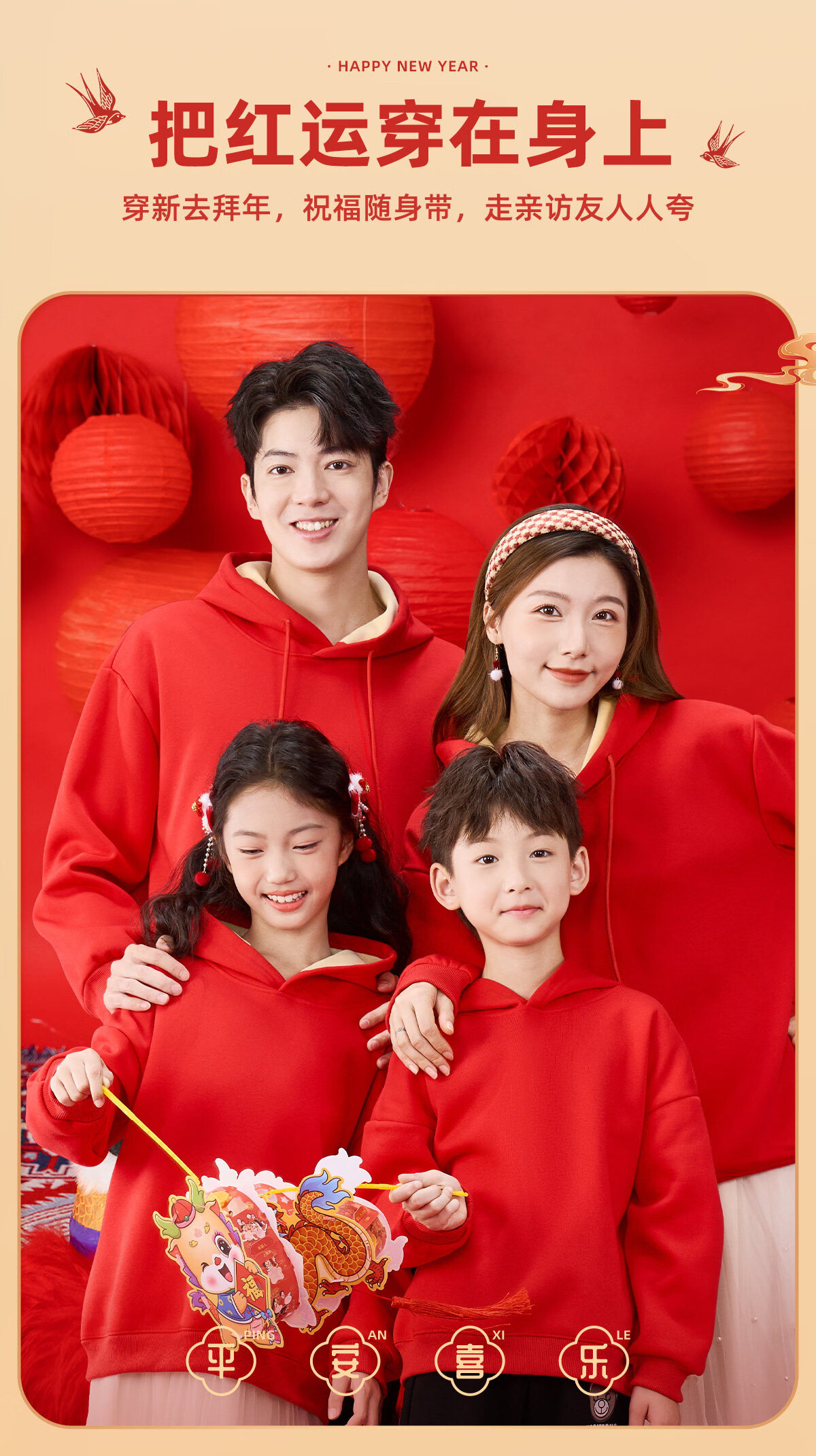 Jeanswest New Year's style parent-child clothing for a family of three winter Year of the Horse mother-daughter style red festive style hooded sweatshirt New Year's style velvet sweatshirt 07 165 S Recommended weight 100-110Jin Jin equals 0.5 kg
