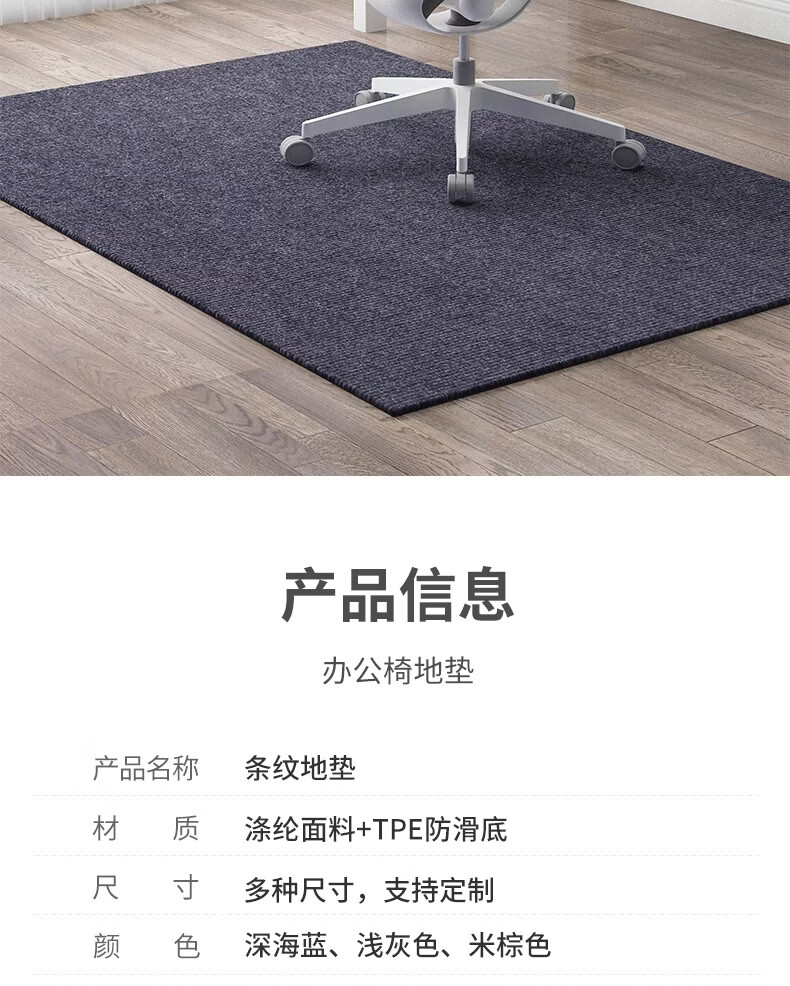Fantasy modern simple resizable computer chair non-slip floor mat computer desk swivel chair special carpet for study office light smoke gray TP single stripe often 6mm 200x300CM