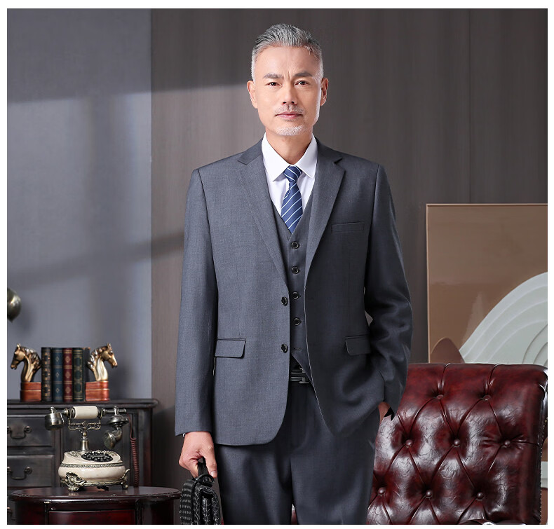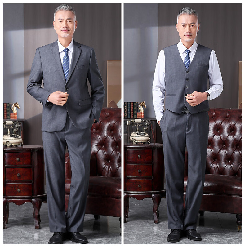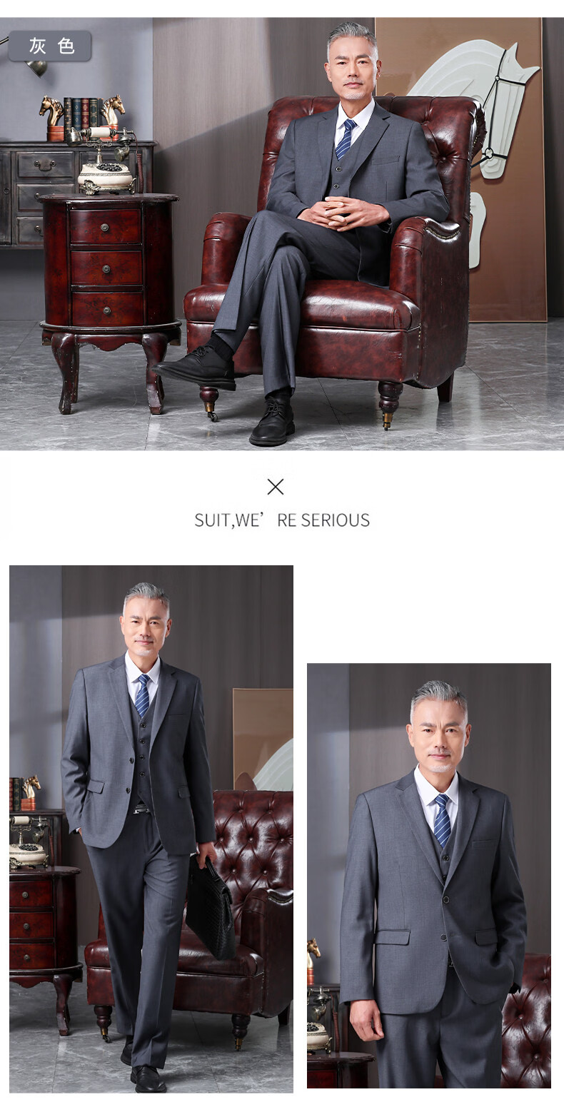 Luo Meng 2026 Happy Father-in-law middle-aged suit suit men's wedding dress loose wedding banquet clothing 50-60 years old formal wear two-button gray suit + trousers free tie socks 2XL 180/96A