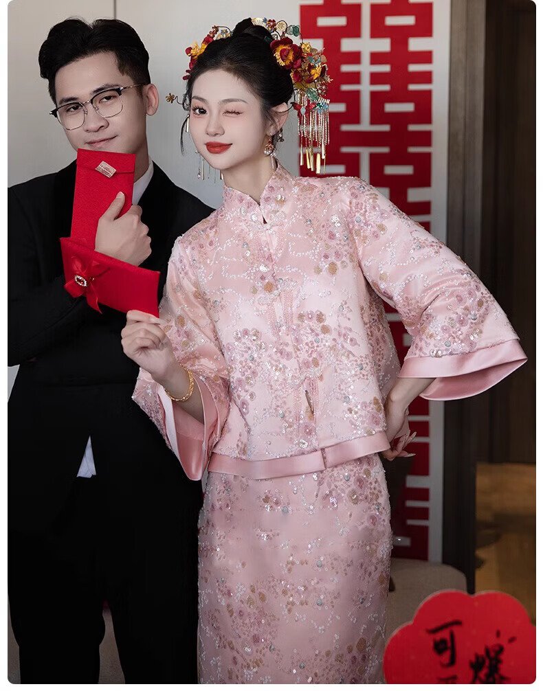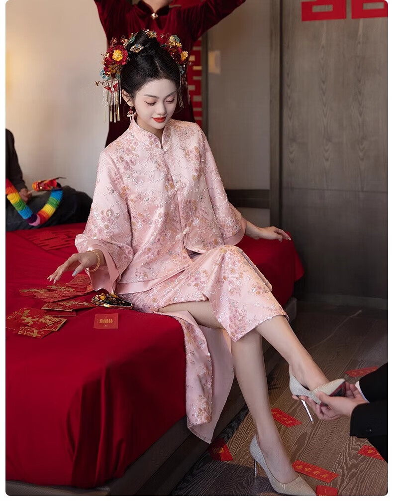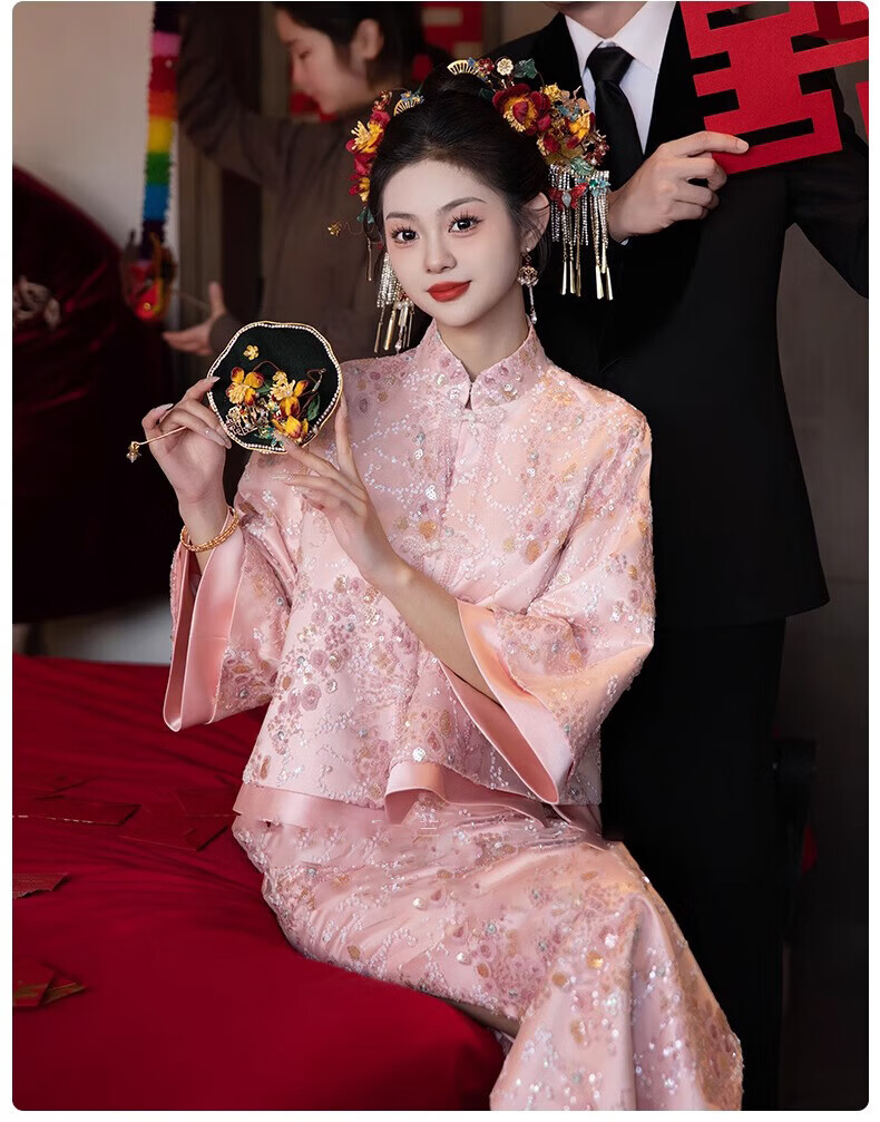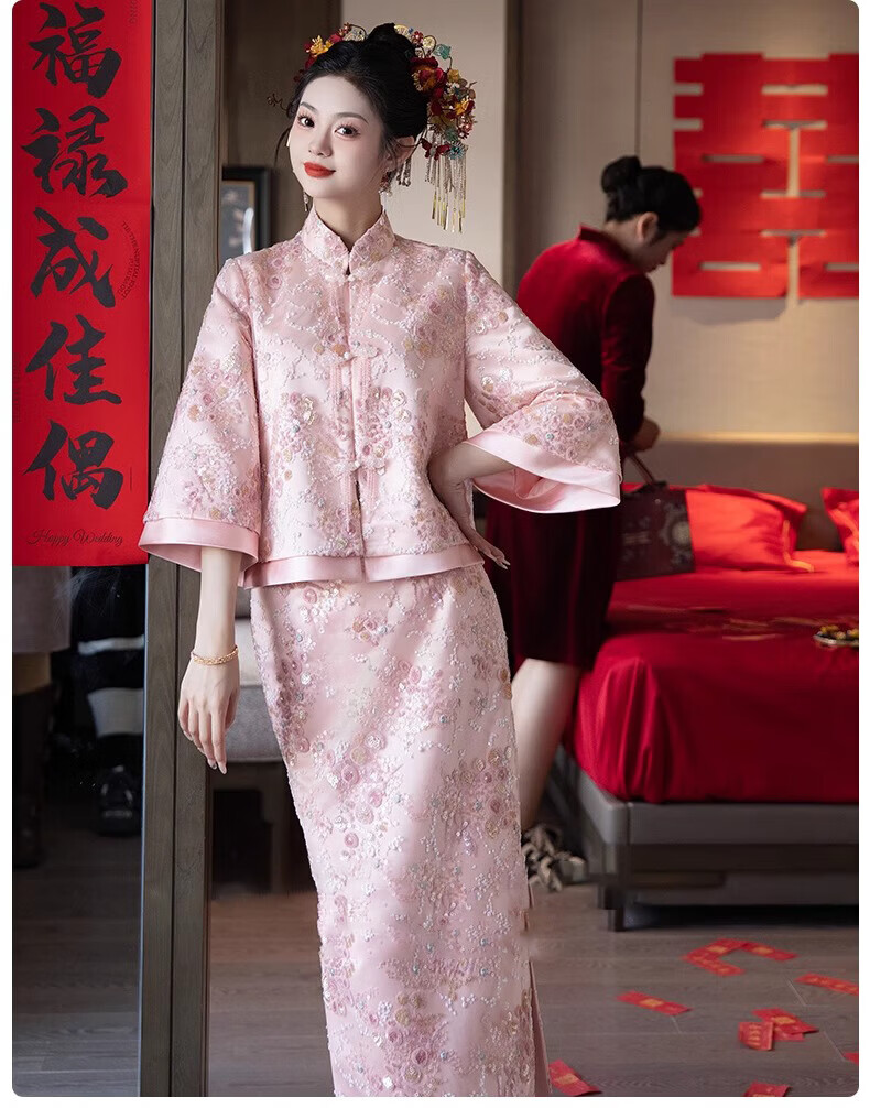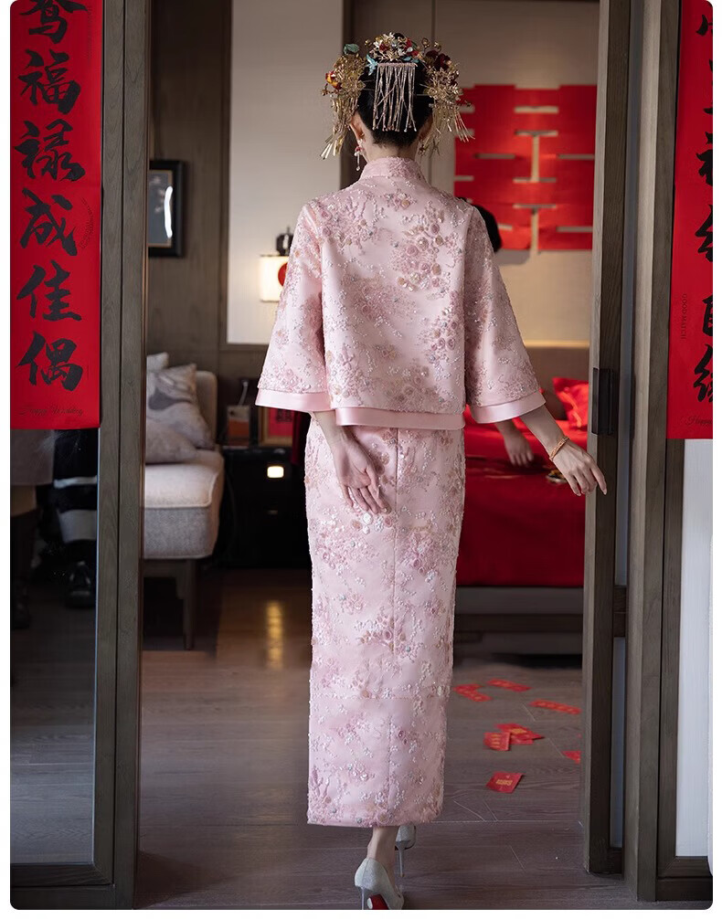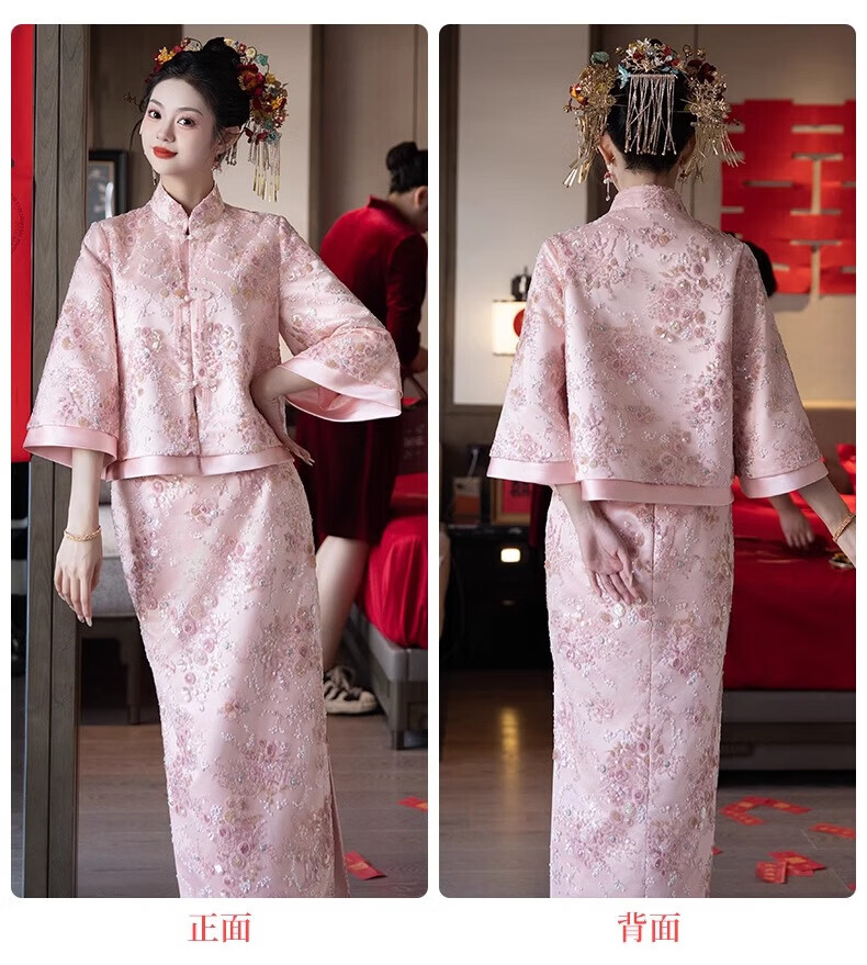 Wutuo Toast Wear Pink New Chinese Style Bride 2025 New Style Engagement Cheongsam Two-piece Suit Dress Skirt XL