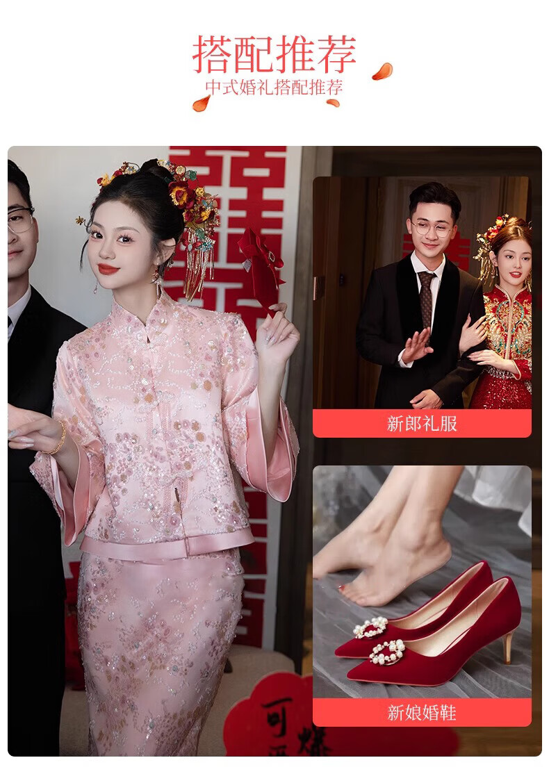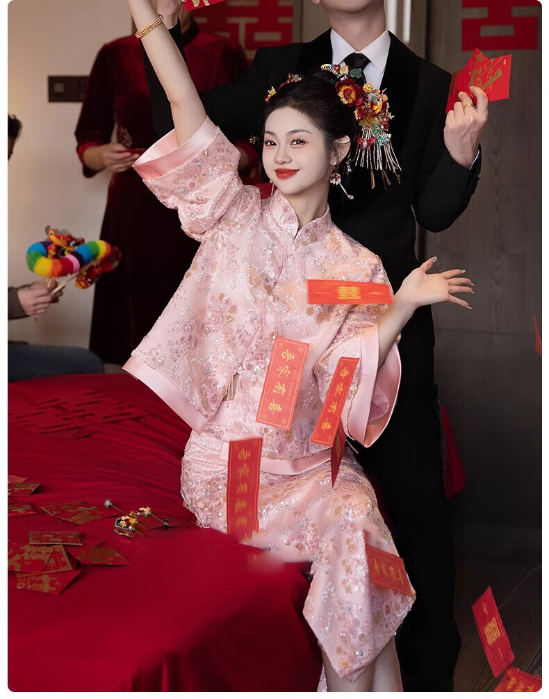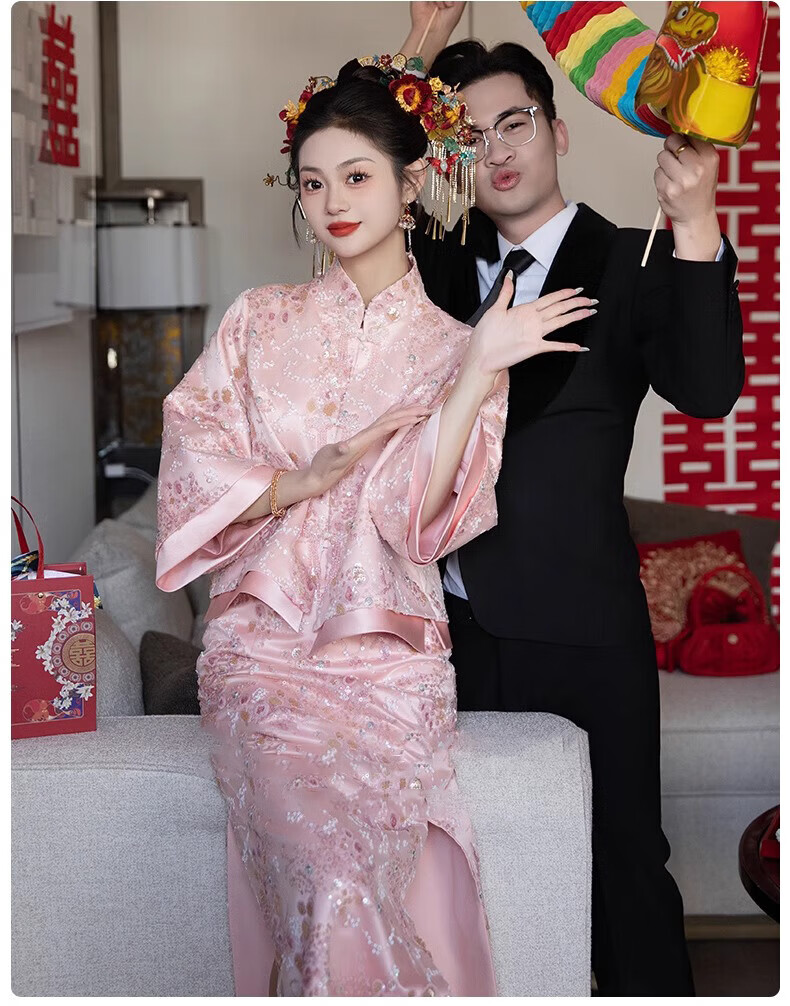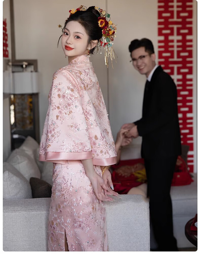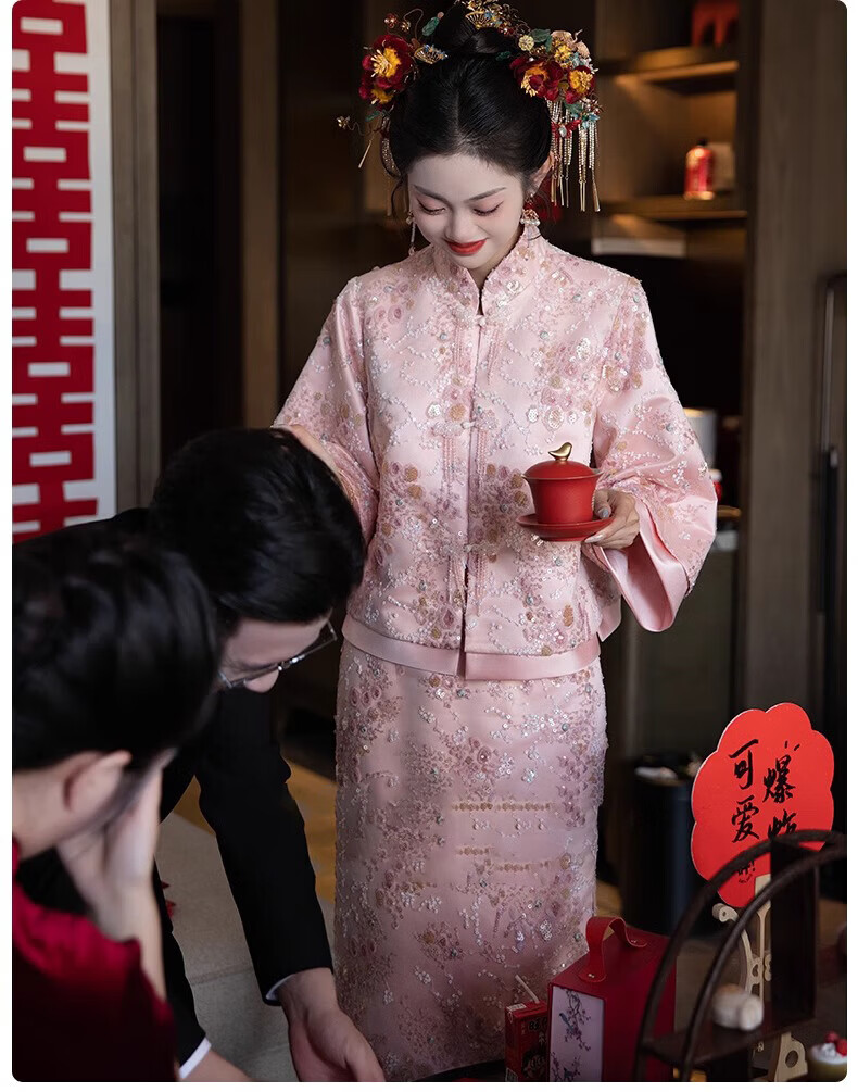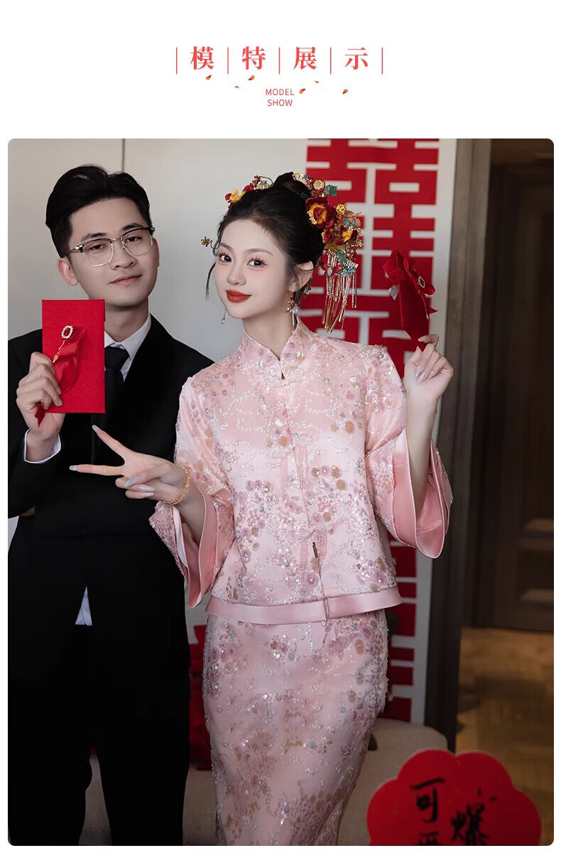 Wutuo Toast Wear Pink New Chinese Style Bride 2025 New Style Engagement Cheongsam Two-piece Suit Dress Skirt XL