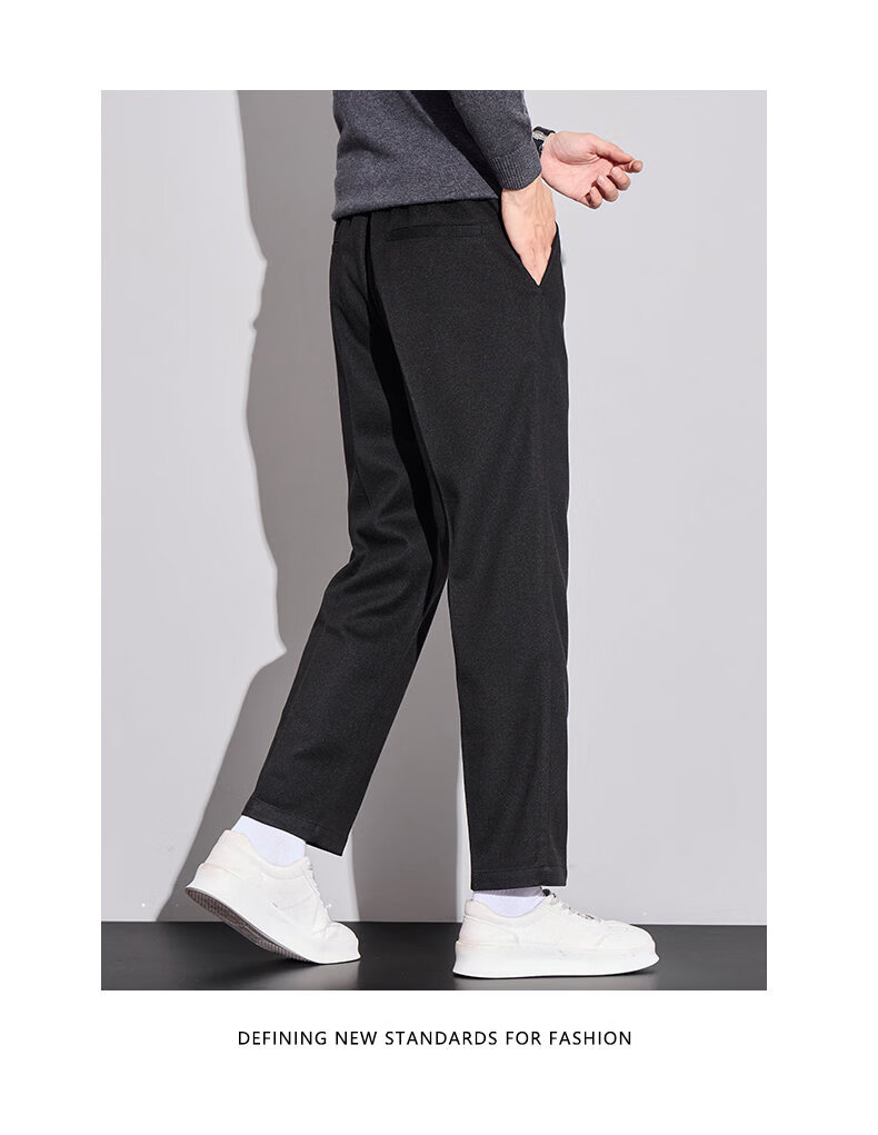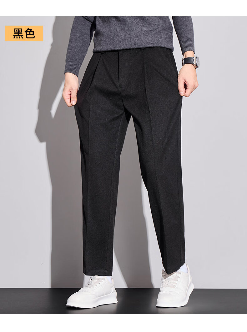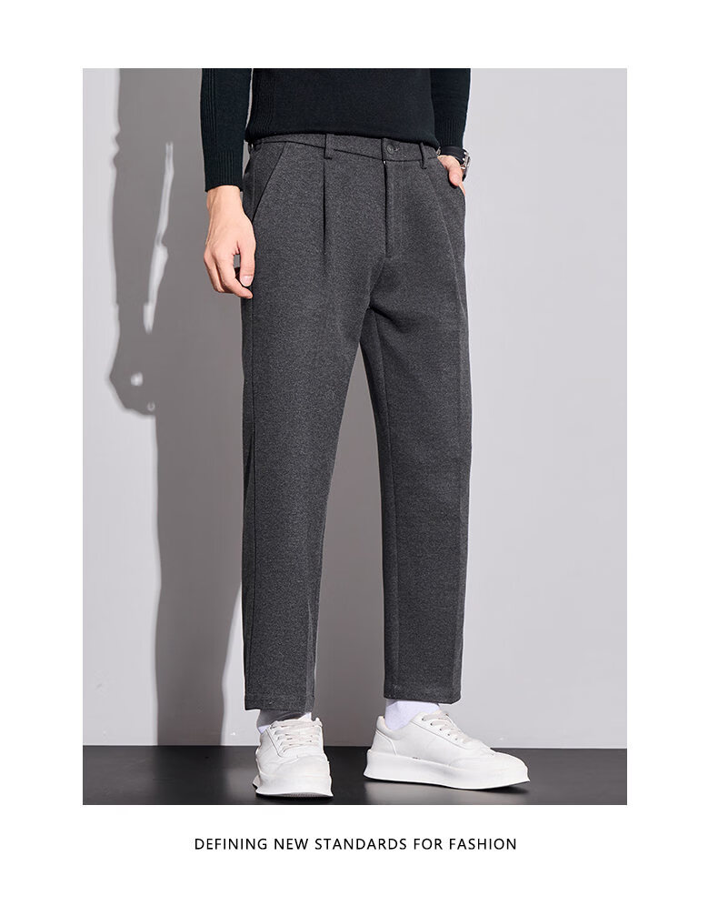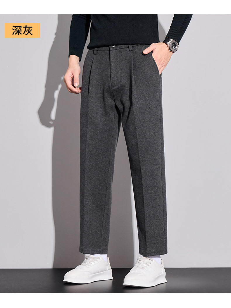 ROMON high-end woolen casual pants men's autumn new loose straight business trendy suit nine-minute long pants autumn and winter dark gray 32