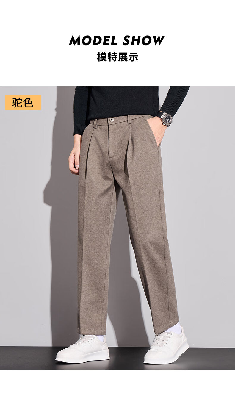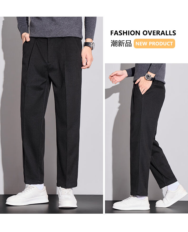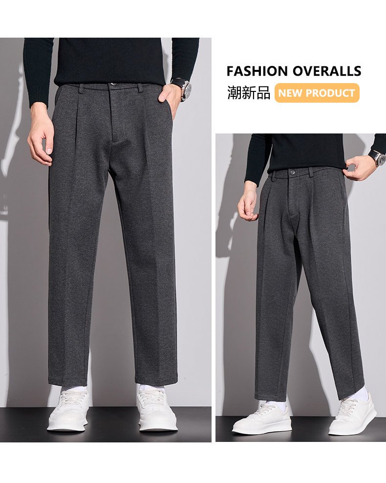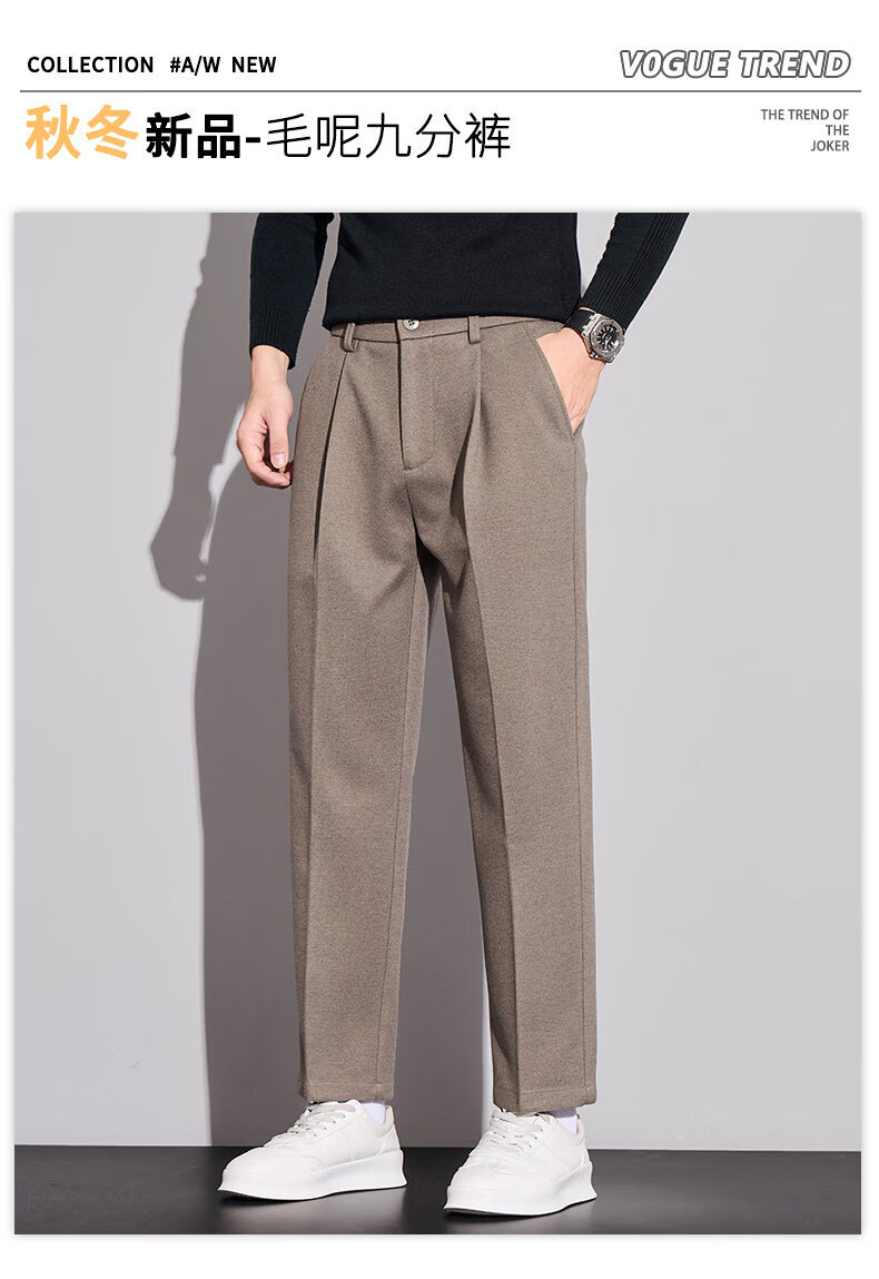 ROMON high-end woolen casual pants men's autumn new loose straight business trendy suit nine-minute long pants autumn and winter dark gray 32
