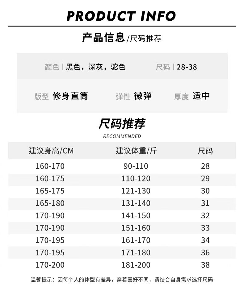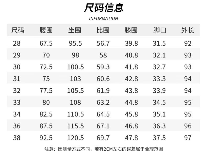 USA(inch) 28-30 30-32 32-34 34-38 38-42