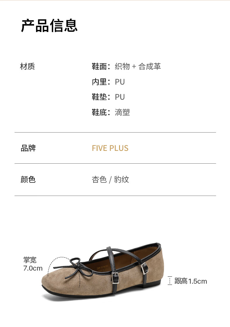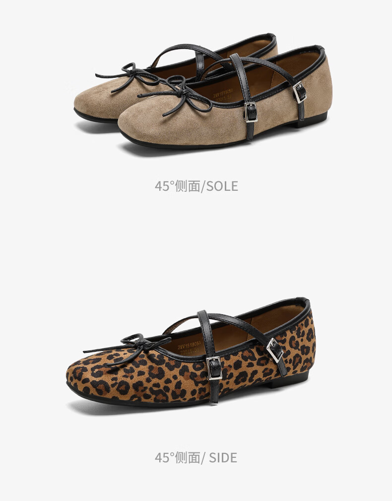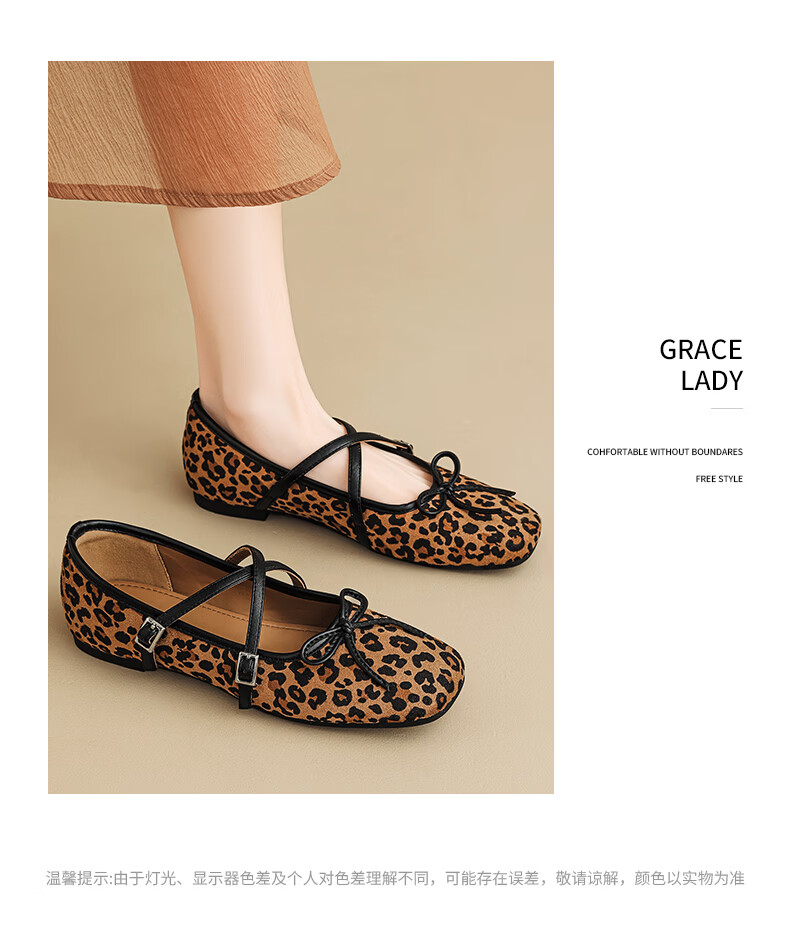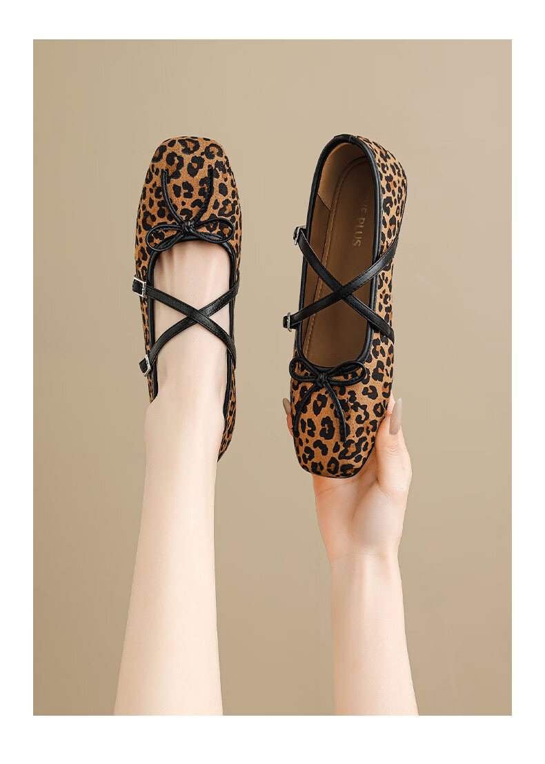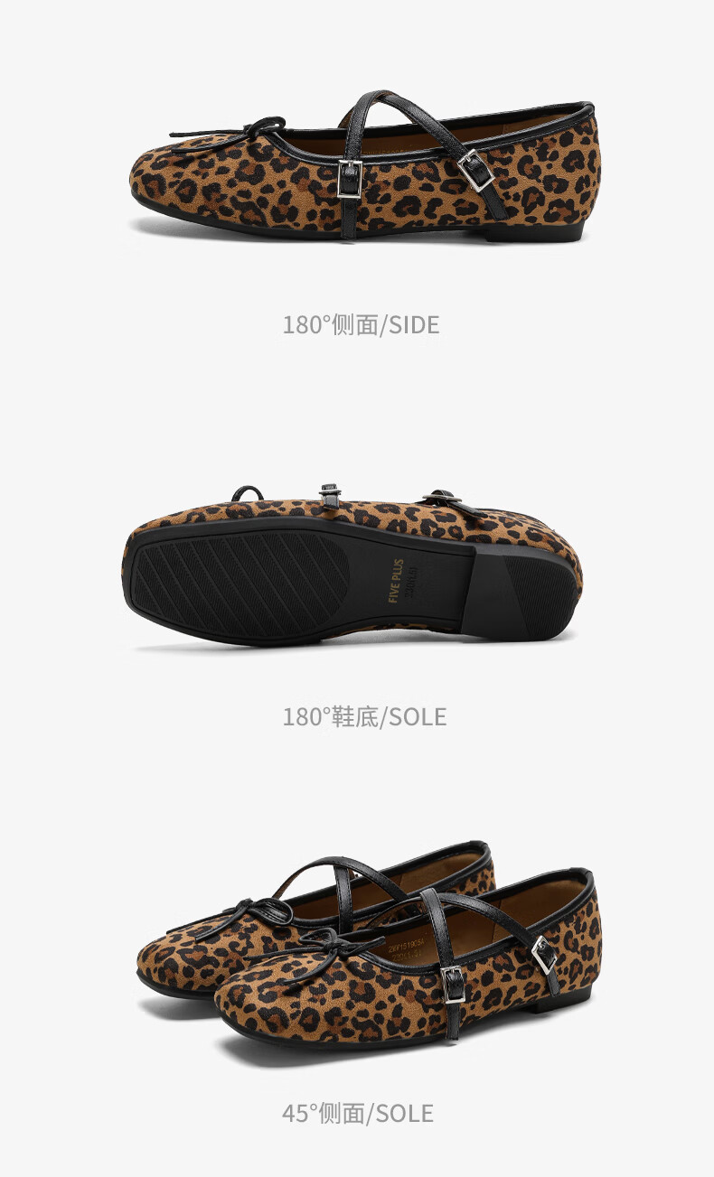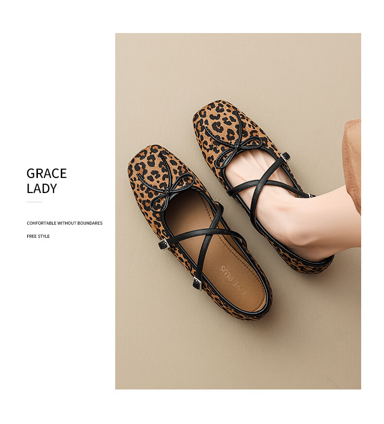 5+ (FivePlus) French style versatile cross-strap shallow-mouth single shoes for women 2026 spring and autumn new ballet fairy low-heeled Mary Jane shoes leopard color 38