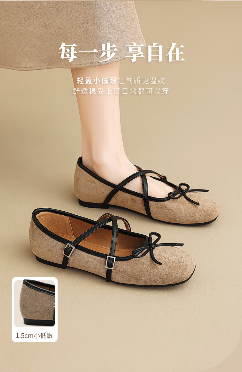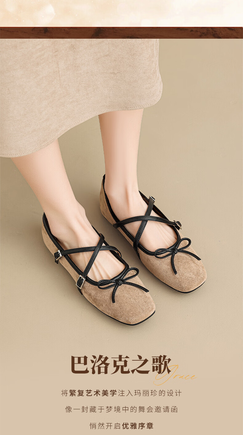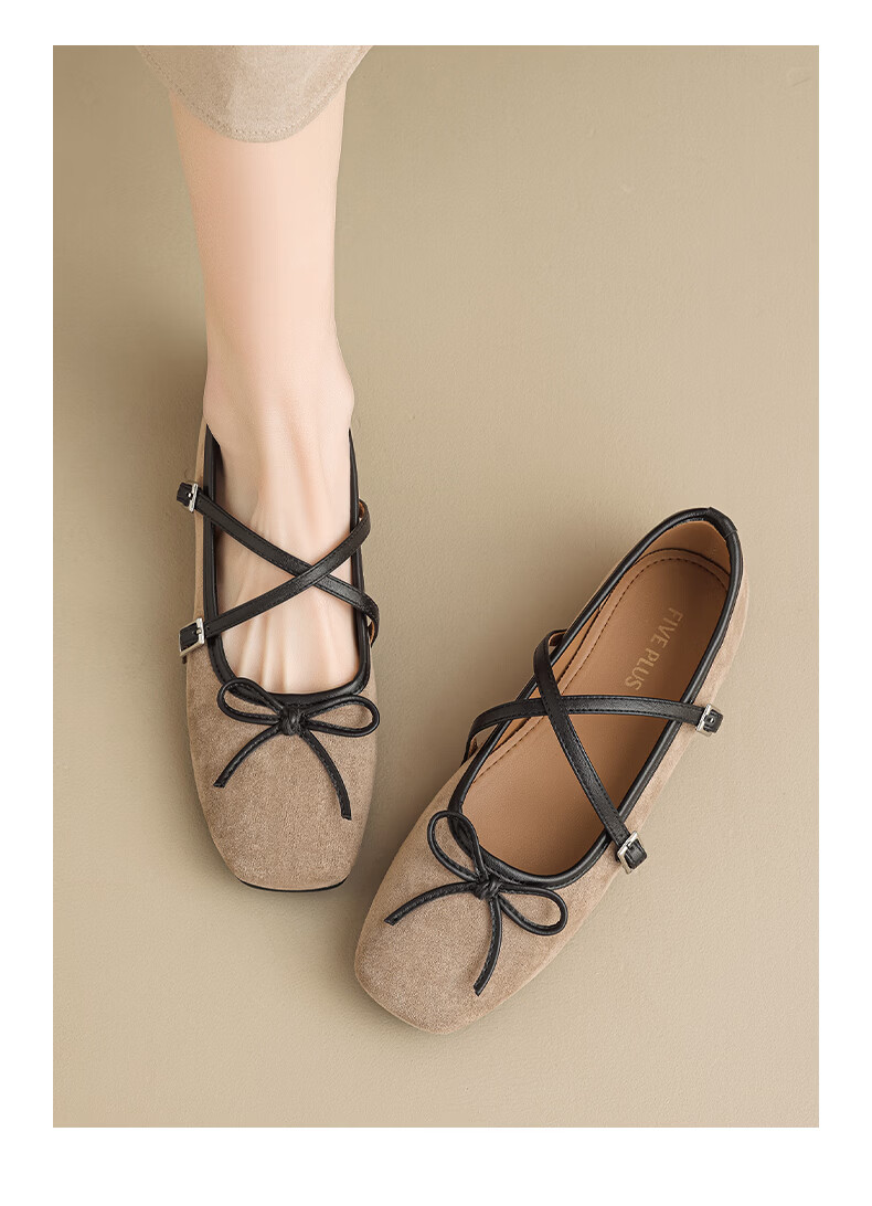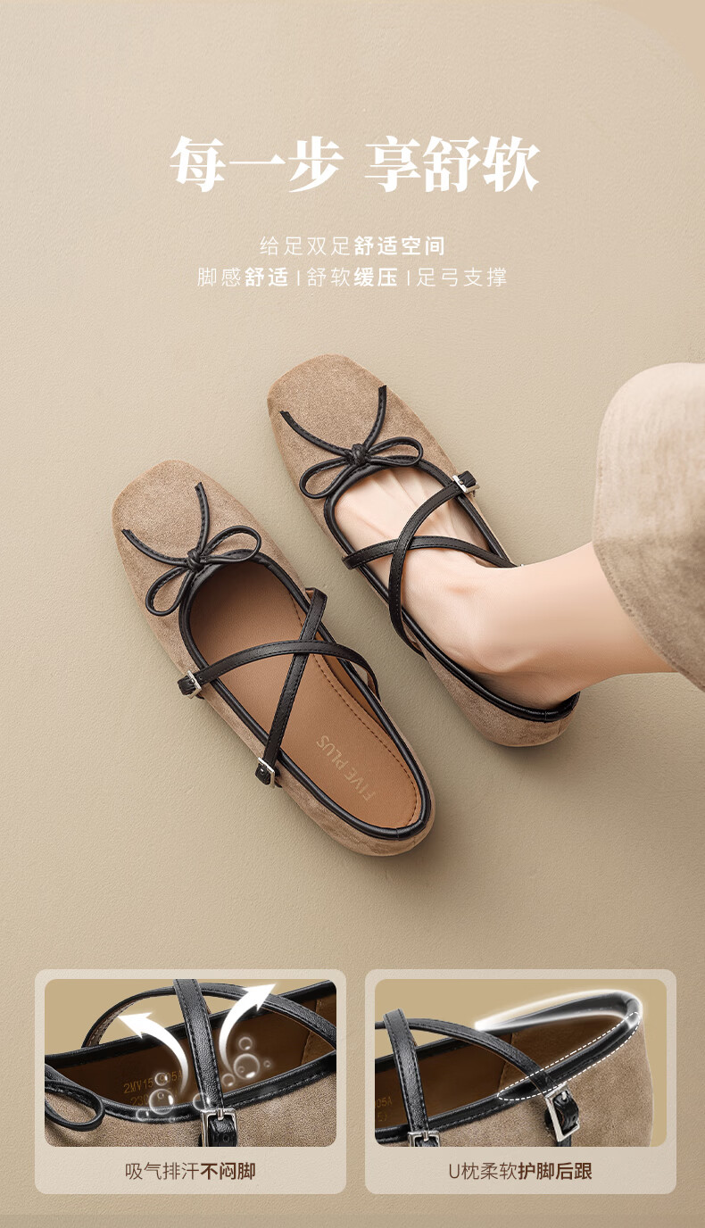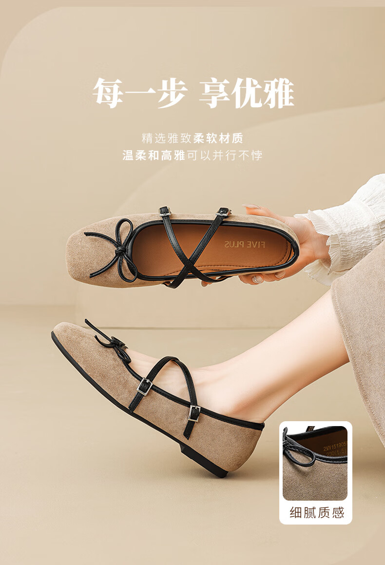 5+ (FivePlus) French style versatile cross-strap shallow-mouth single shoes for women 2026 spring and autumn new ballet fairy low-heeled Mary Jane shoes leopard color 38