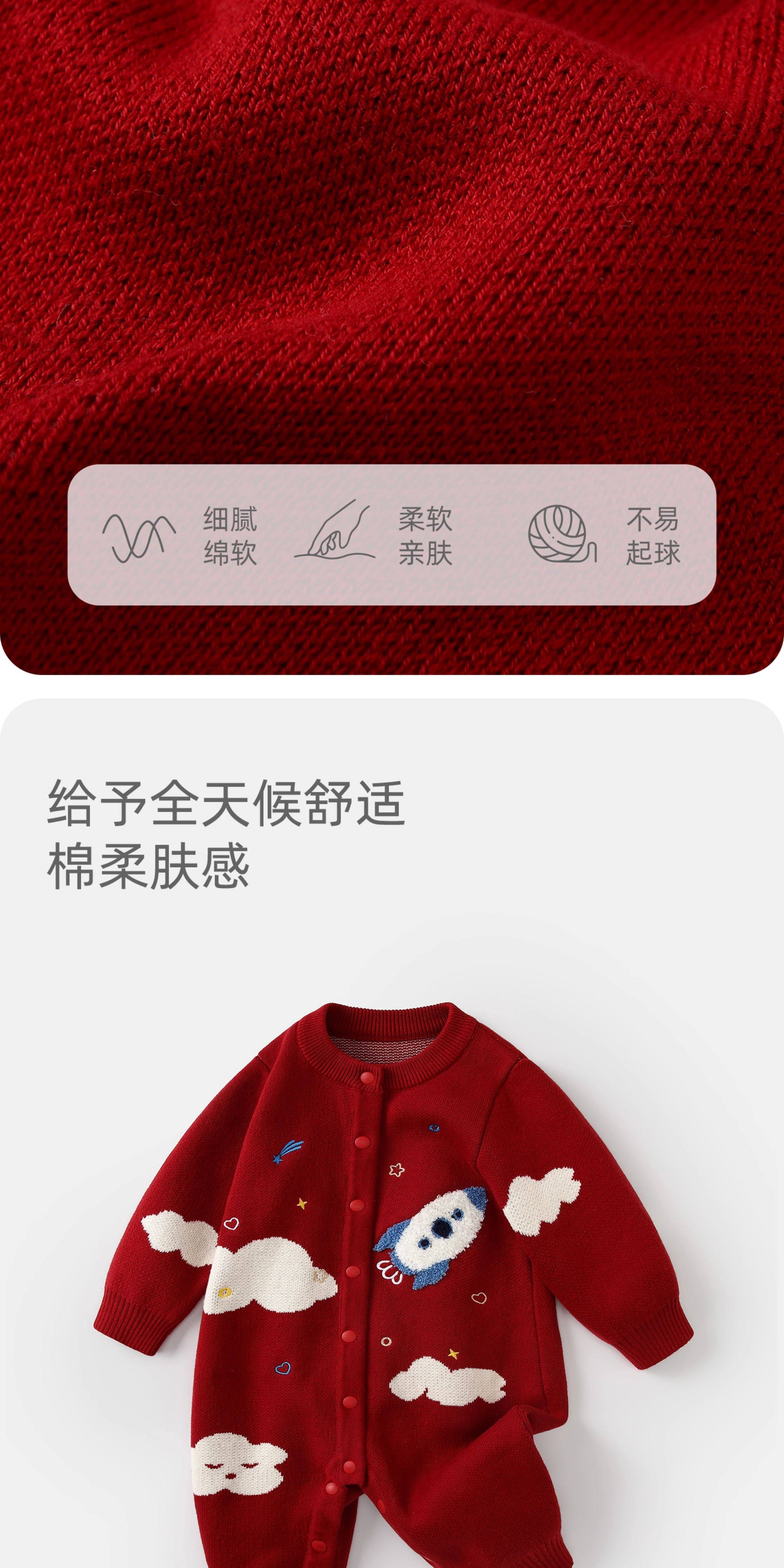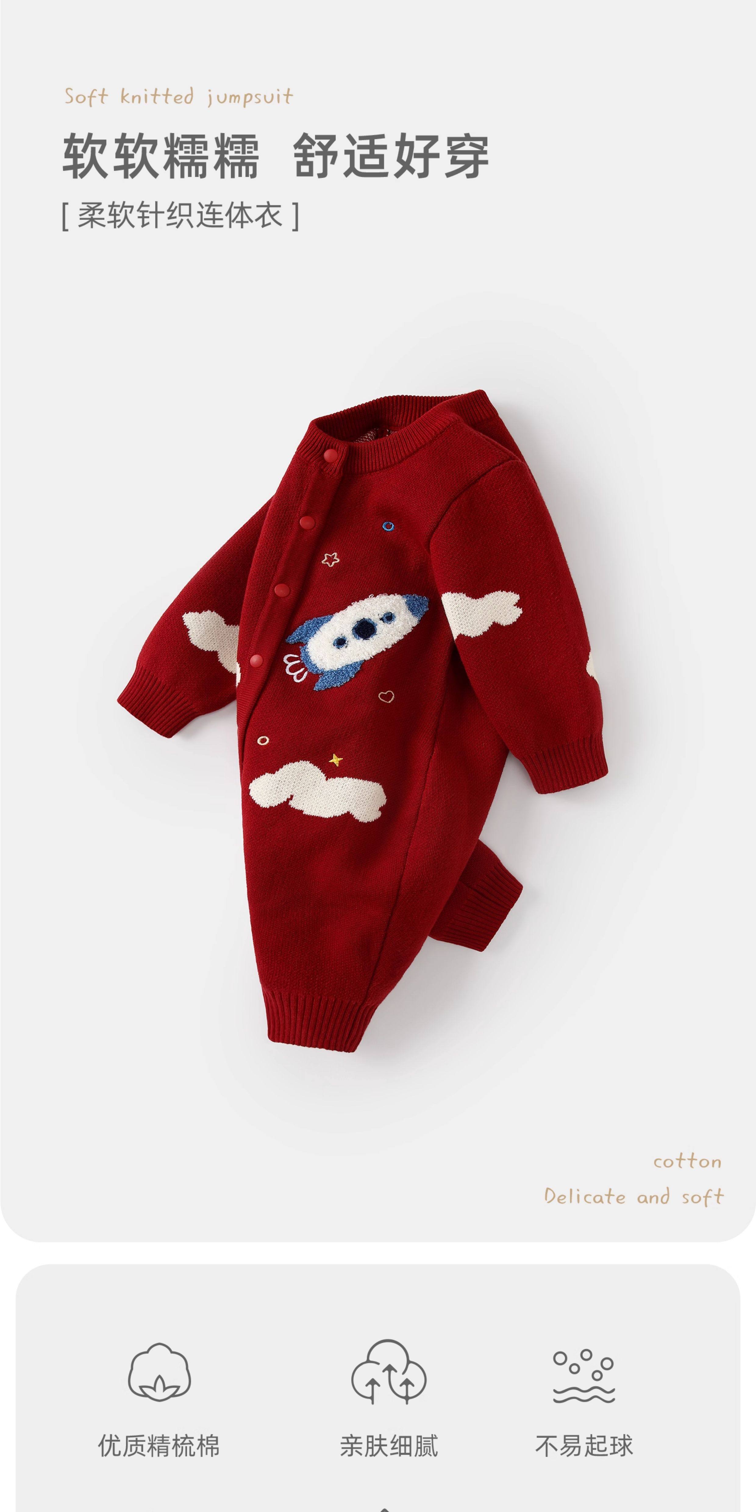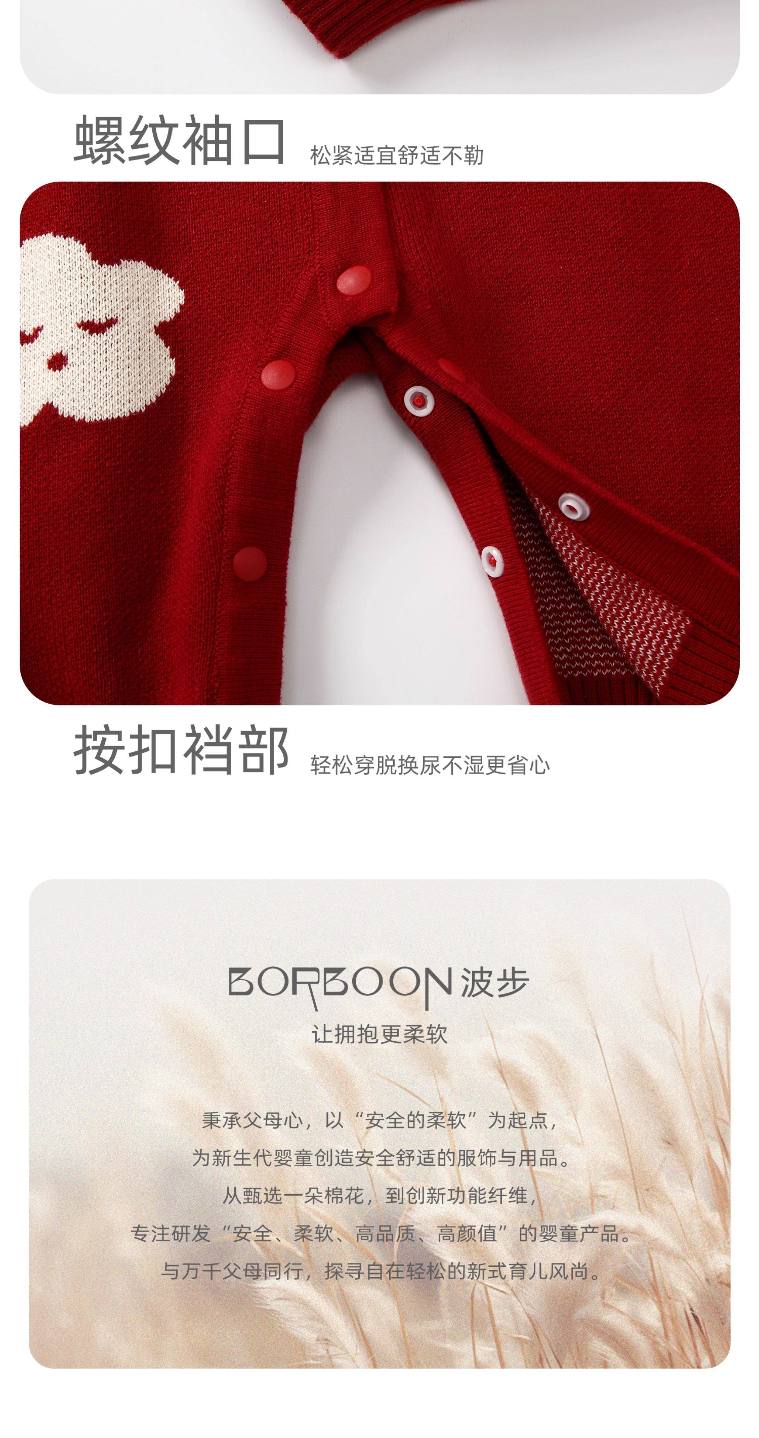 BORBOON B BORBOON B baby New Year's greetings winter jumpsuit male baby red festive New Year's clothing plus velvet thickened winter clothing plus velvet 7670 three-piece set 66cm