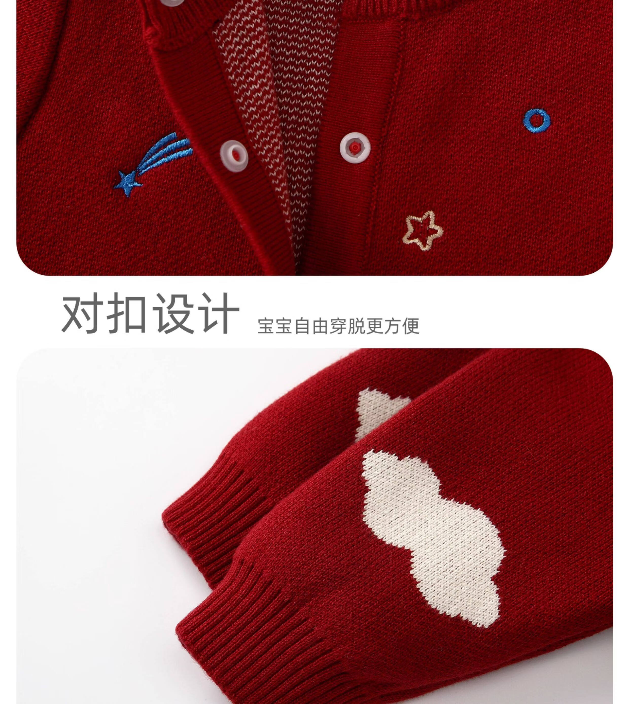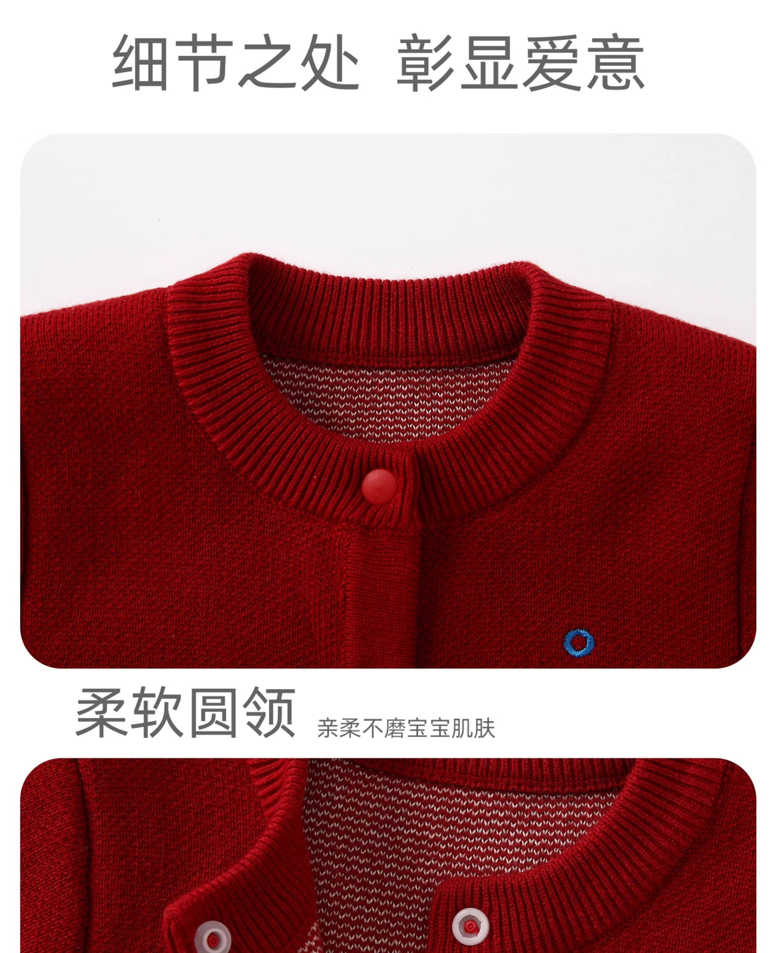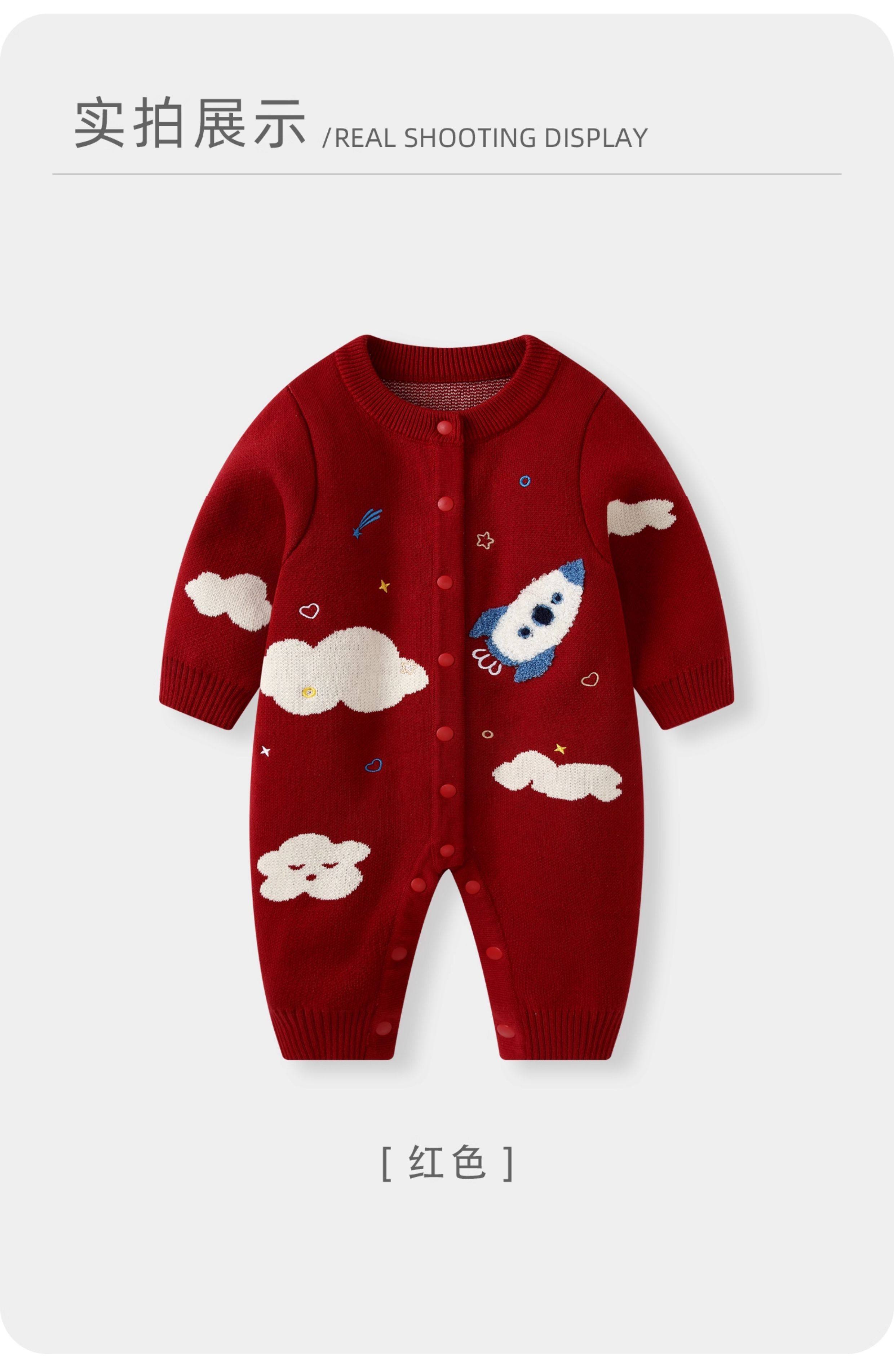 BORBOON B BORBOON B baby New Year's greetings winter jumpsuit male baby red festive New Year's clothing plus velvet thickened winter clothing plus velvet 7670 three-piece set 66cm