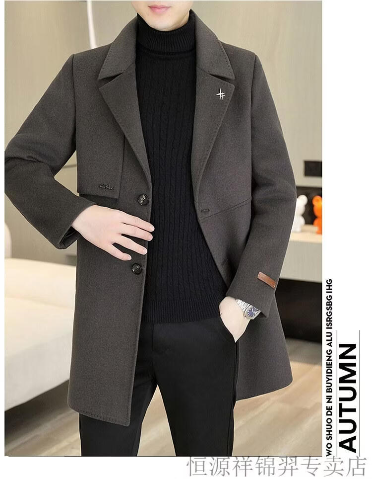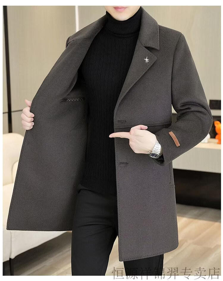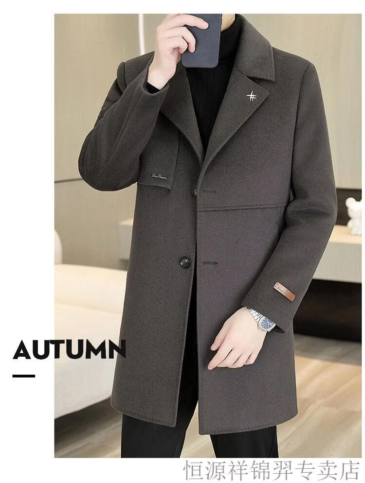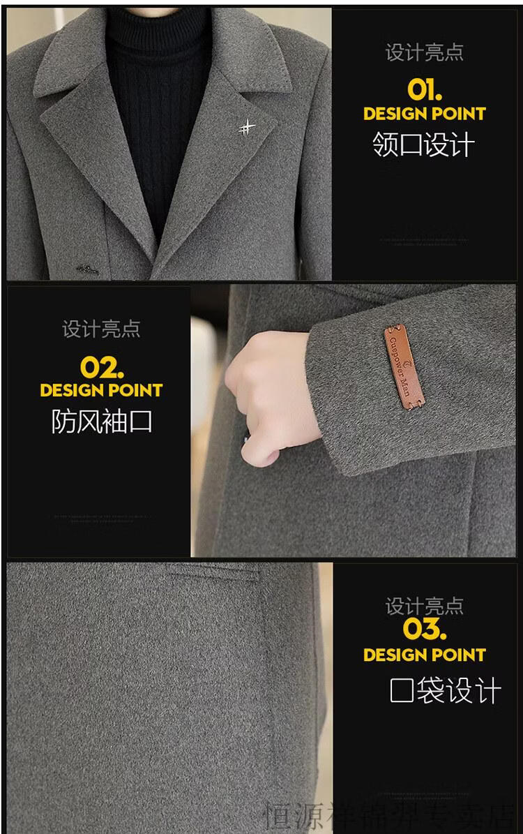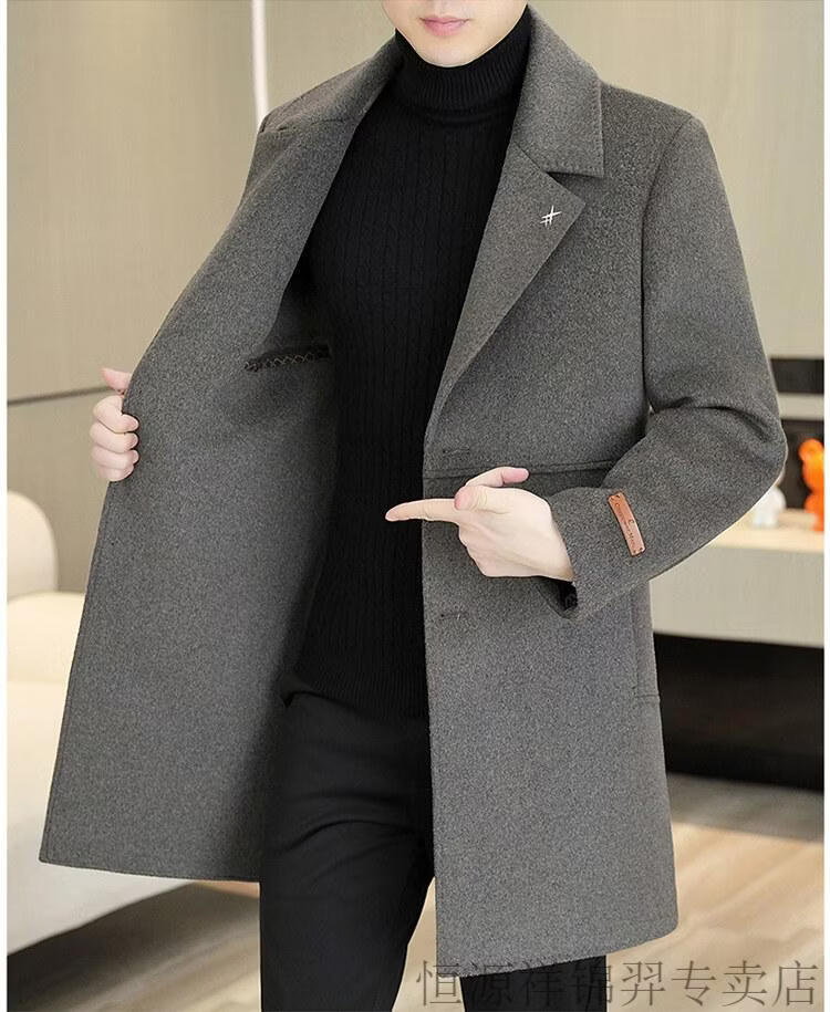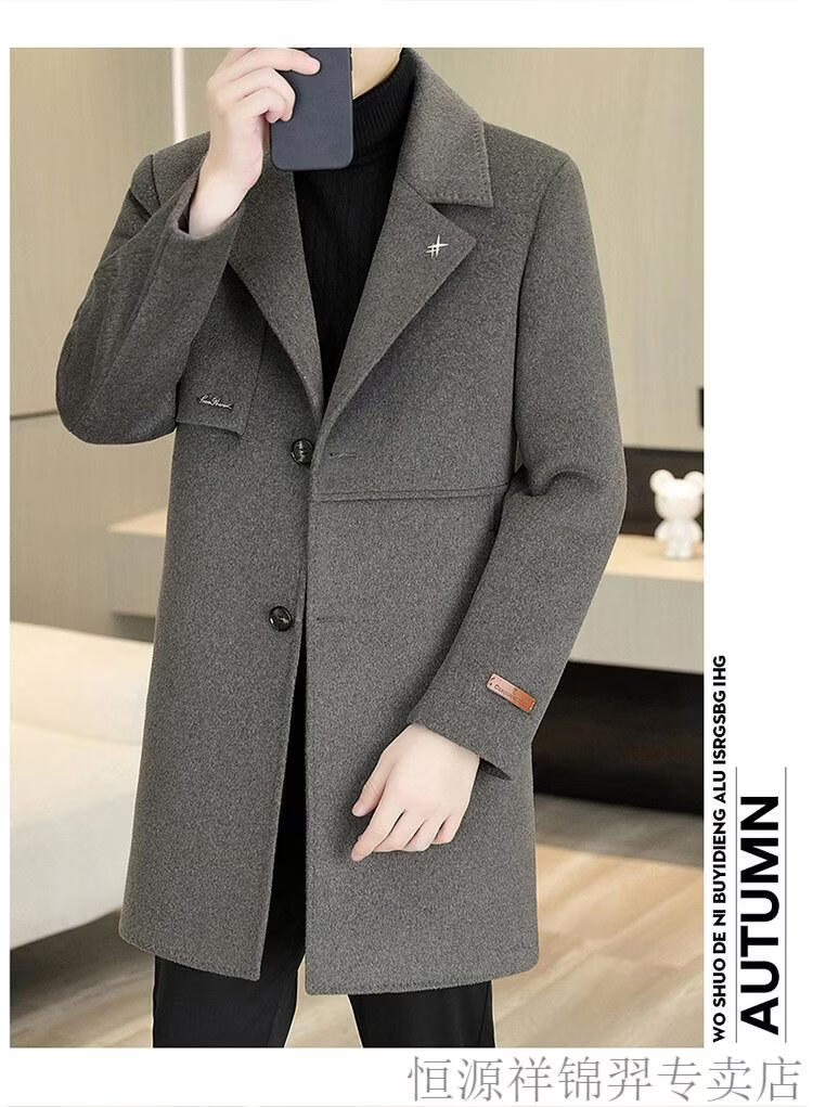 Hengyuanxiang high-end double-sided woolen woolen coat men's mid-length windbreaker autumn and winter new trendy casual thickened coat gray double-sided woolen woolen coat M 170 weight 90-115Jin Jin equals 0.5 kg