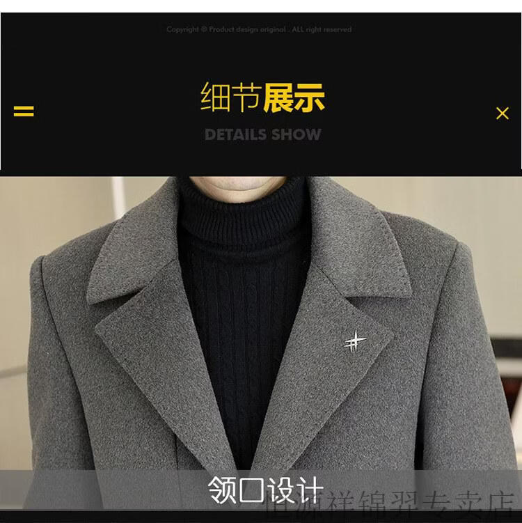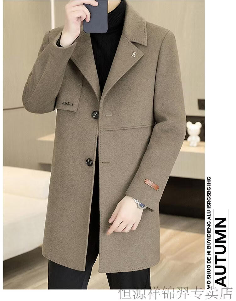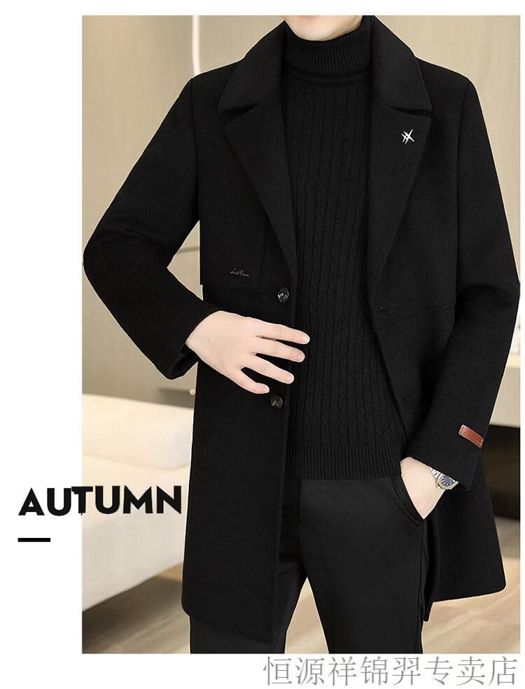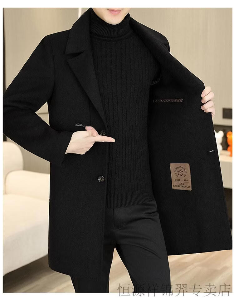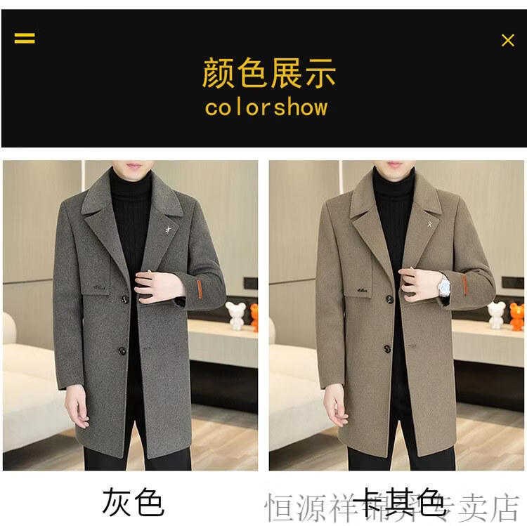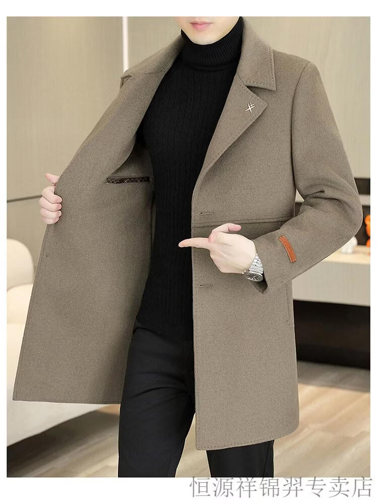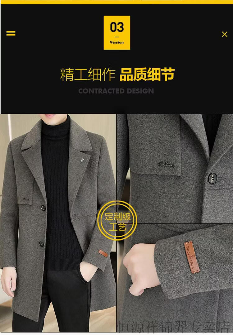 Hengyuanxiang high-end double-sided woolen woolen coat men's mid-length windbreaker autumn and winter new trendy casual thickened coat gray double-sided woolen woolen coat M 170 weight 90-115Jin Jin equals 0.5 kg