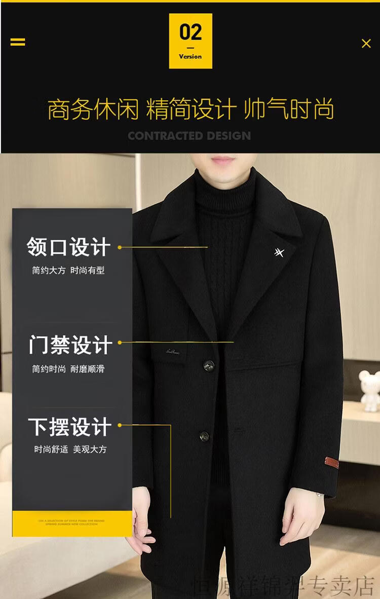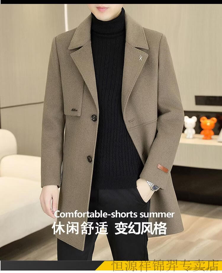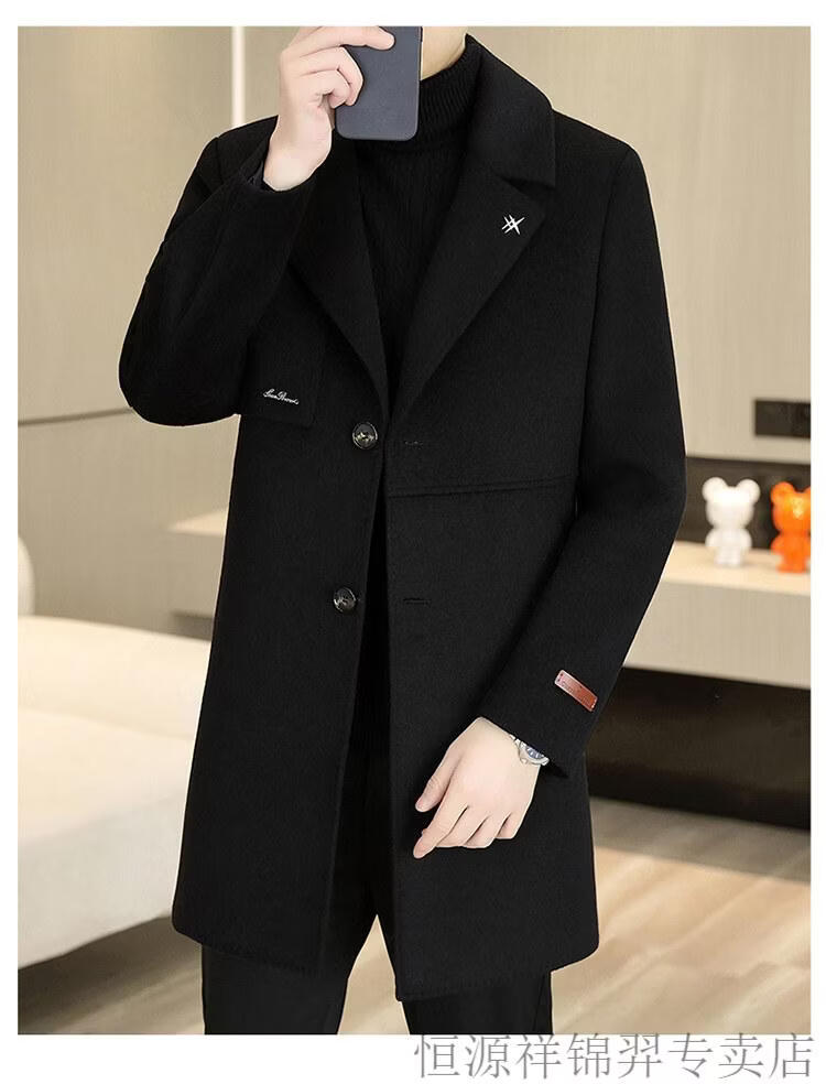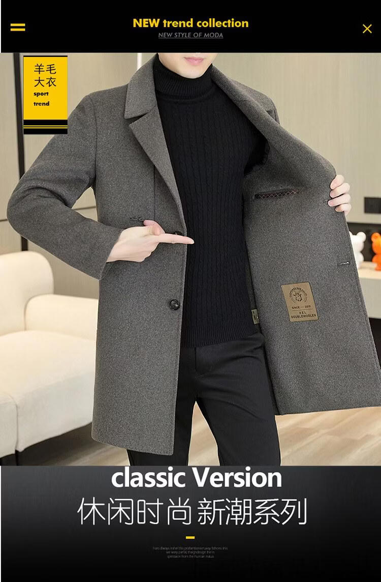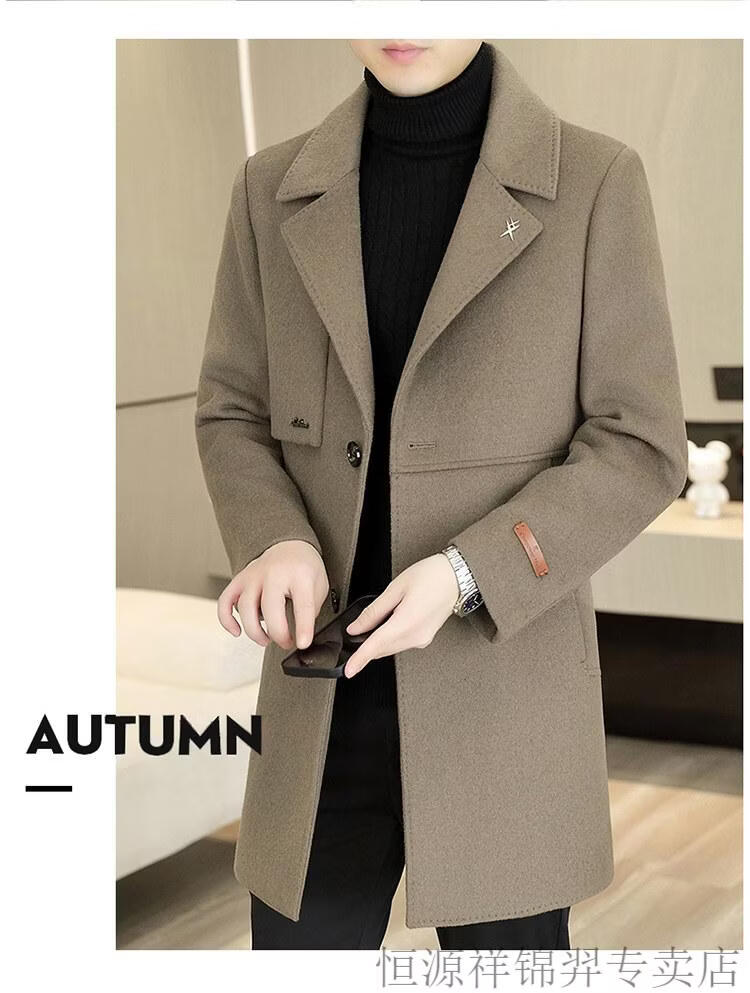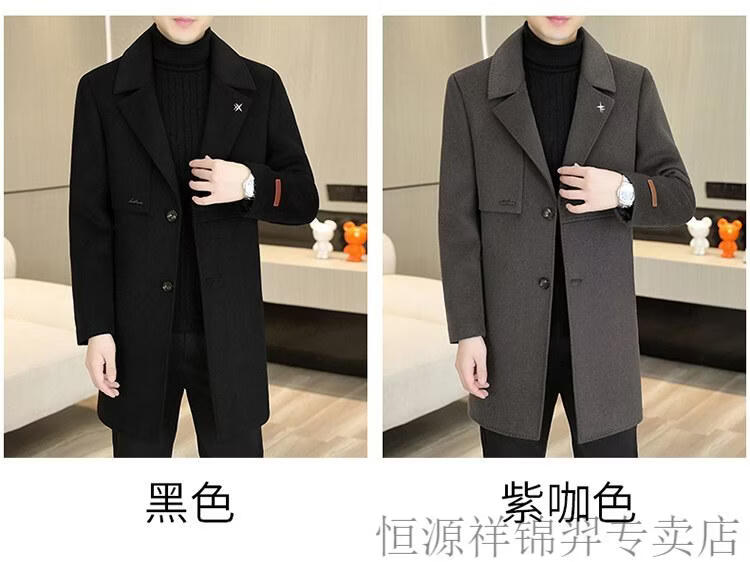 Hengyuanxiang high-end double-sided woolen woolen coat men's mid-length windbreaker autumn and winter new trendy casual thickened coat gray double-sided woolen woolen coat M 170 weight 90-115Jin Jin equals 0.5 kg
