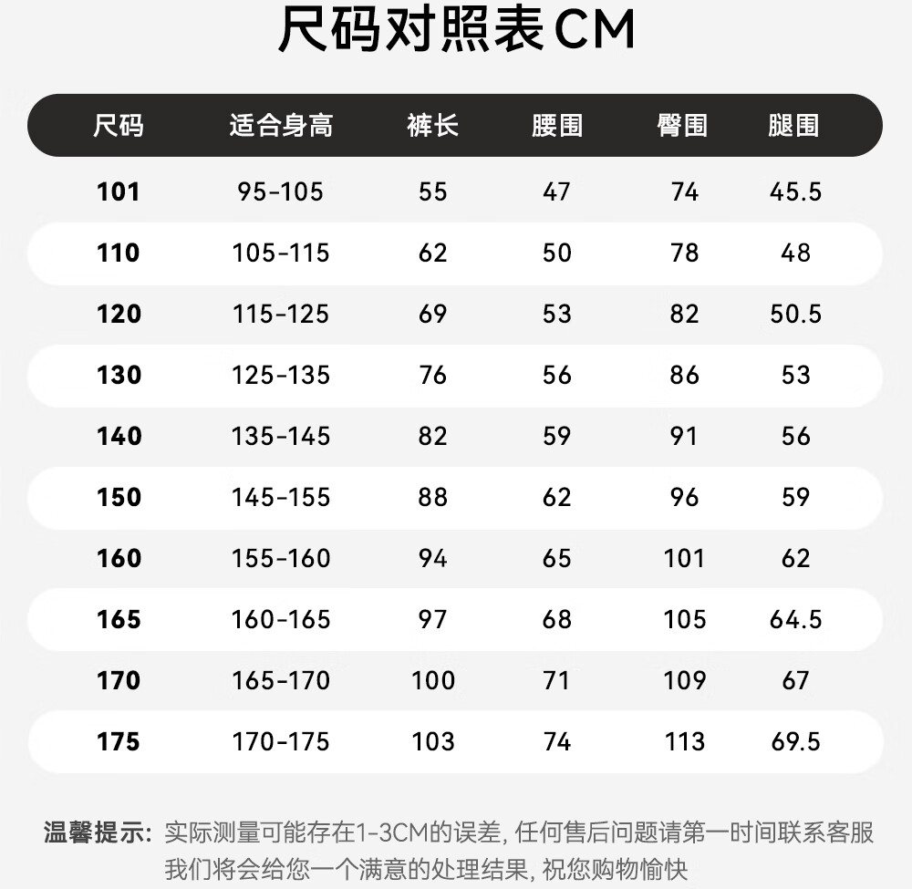 Outseam (cm) 99 cm 101.5 cm 104 cm 106.5 cm 109 cm