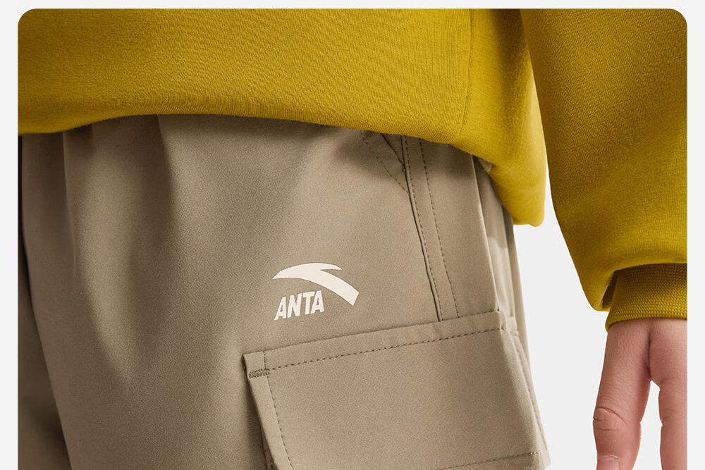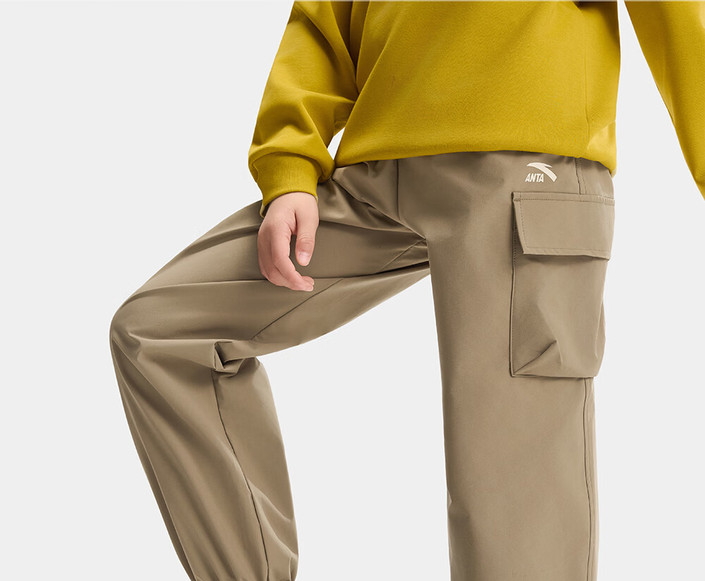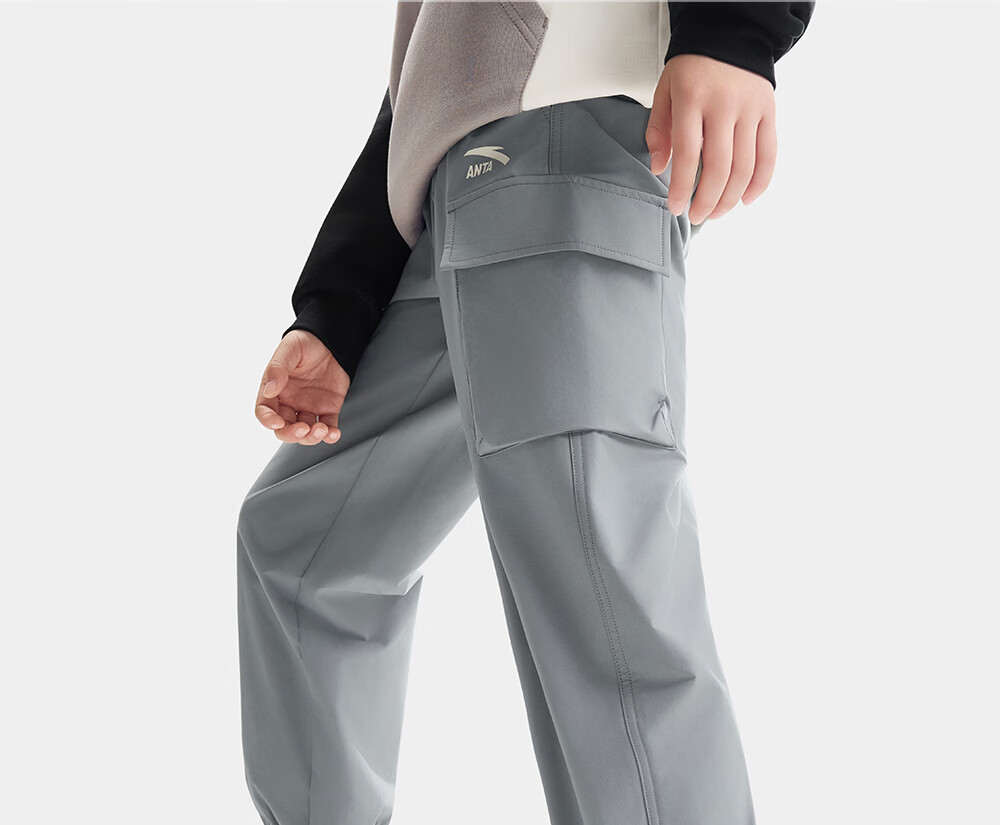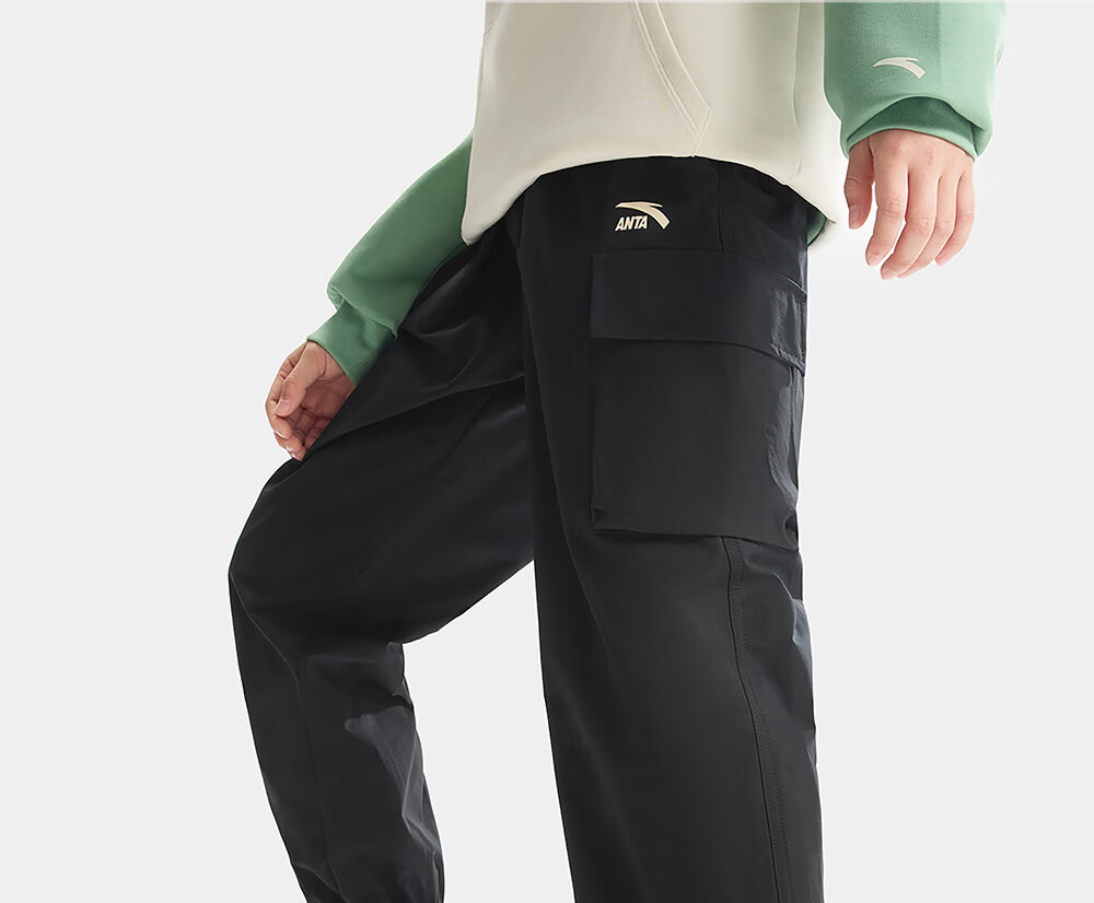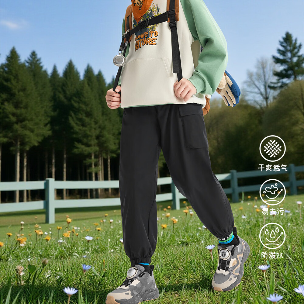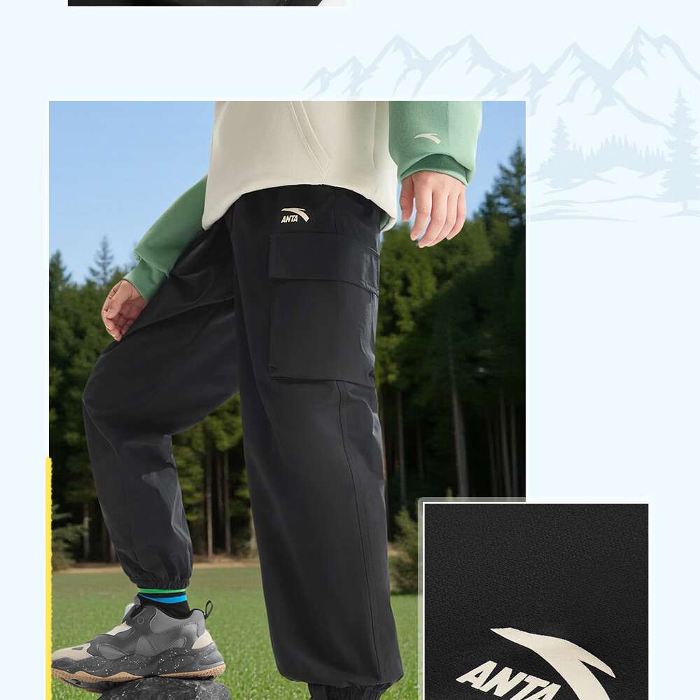 ANTA (ANTA) children's pants boys' sports trousers 26 spring outdoor bio-based water-repellent large pocket overalls basic black-4 120